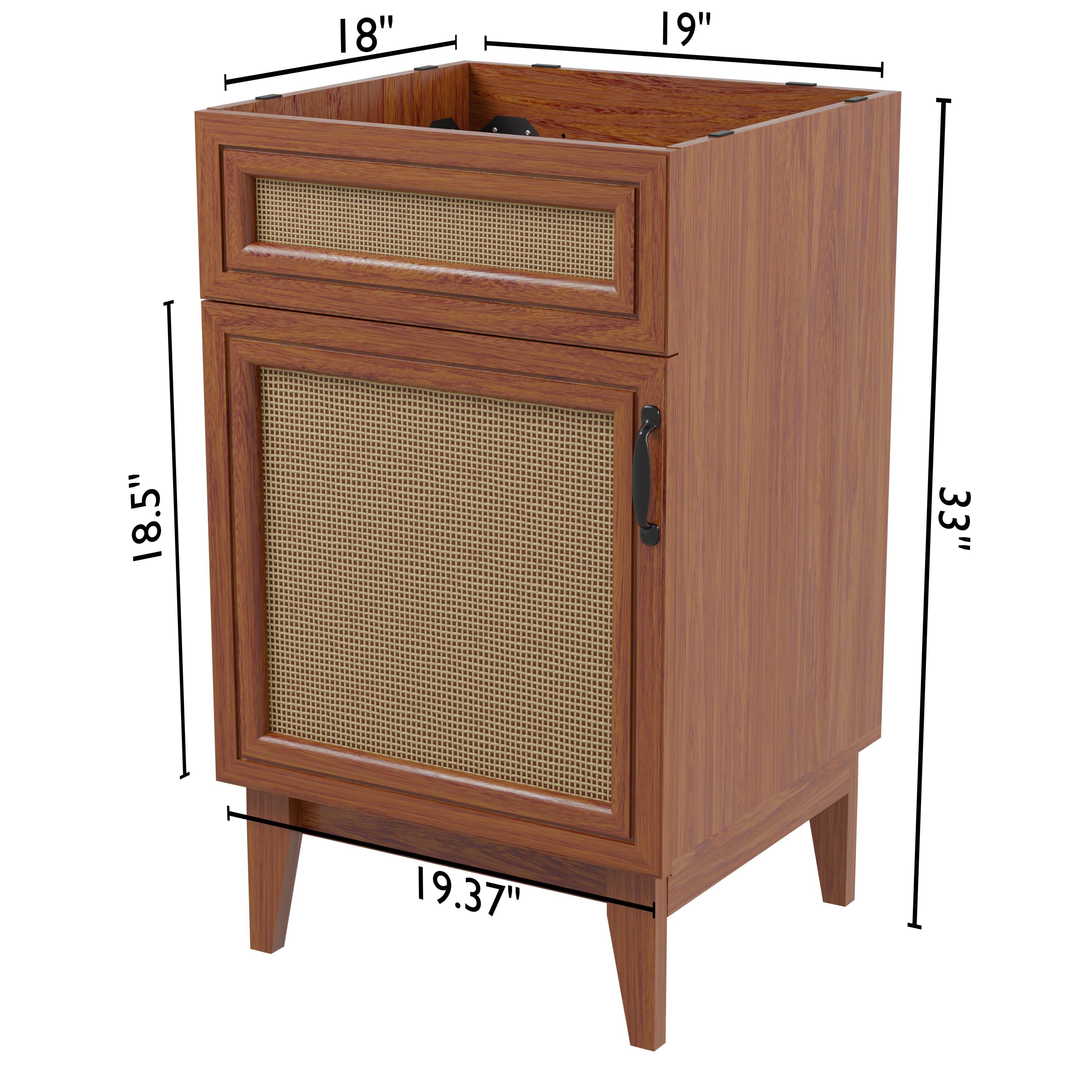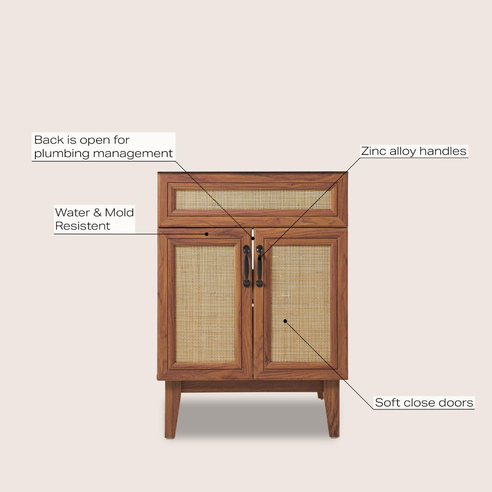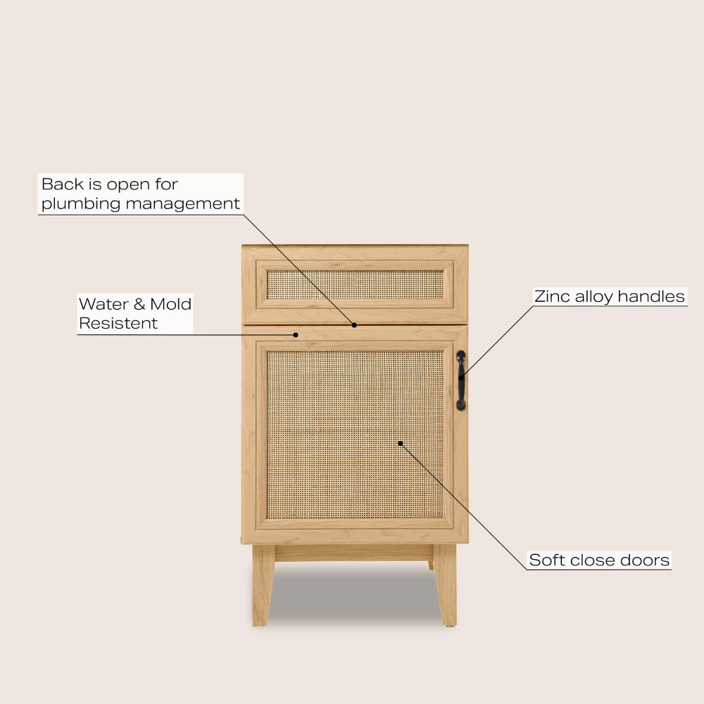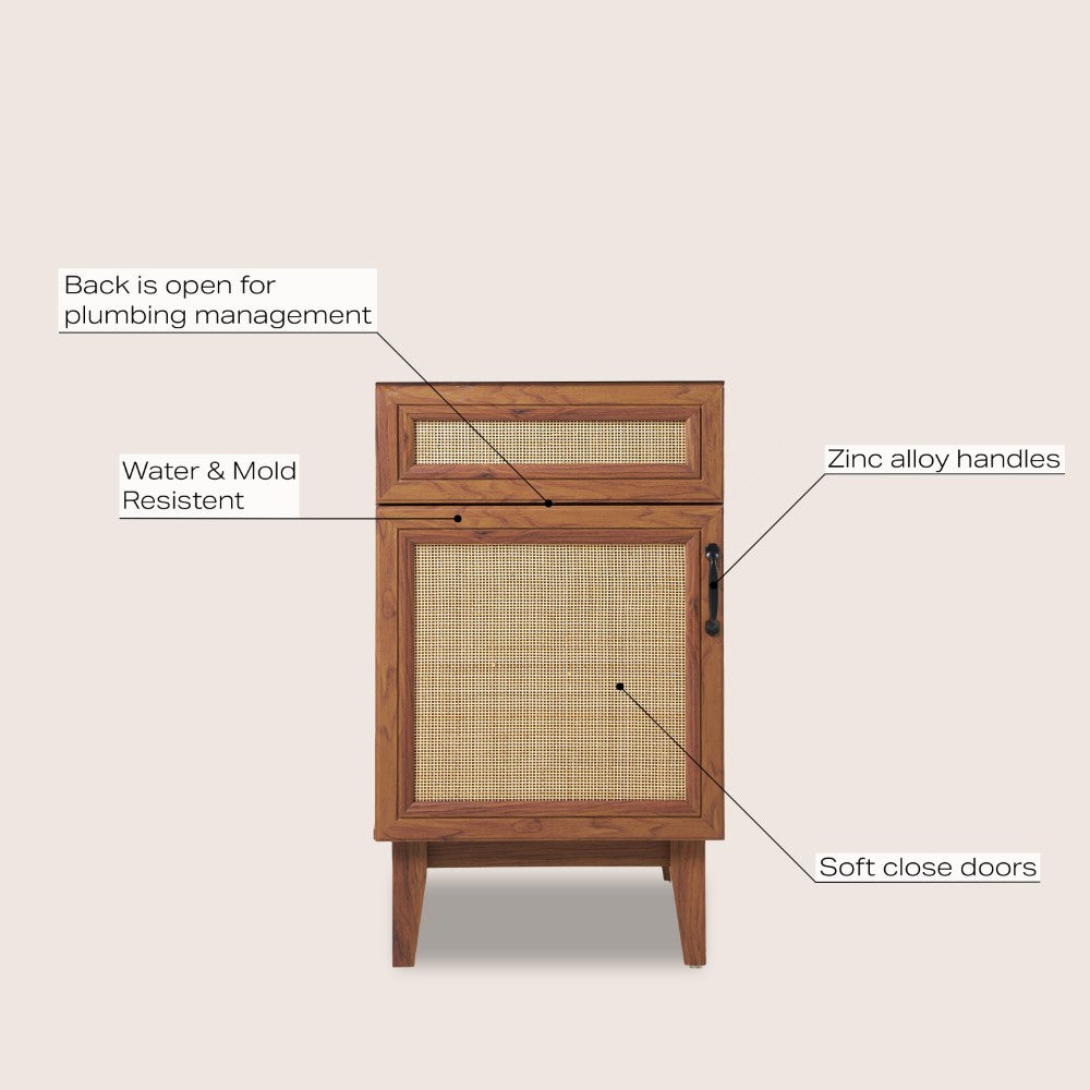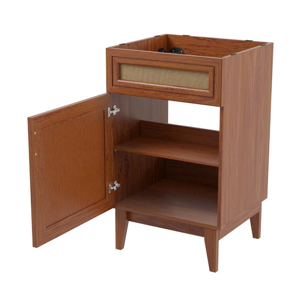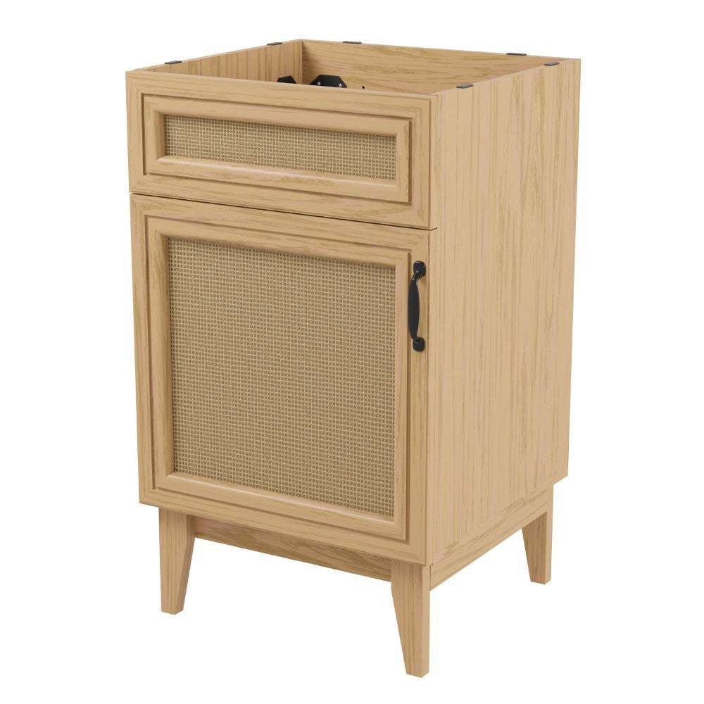 Elevate any 20" sink basin (sold separately) with this bohemian cabinet. With a single door and caned paneling, this cabinet adds a touch of rustic or traditional decor to any bathroom. Whether used in your primary bathroom or powder room, this piece will bring the space together.