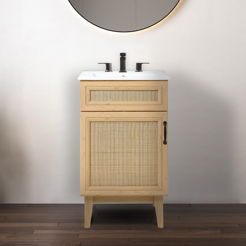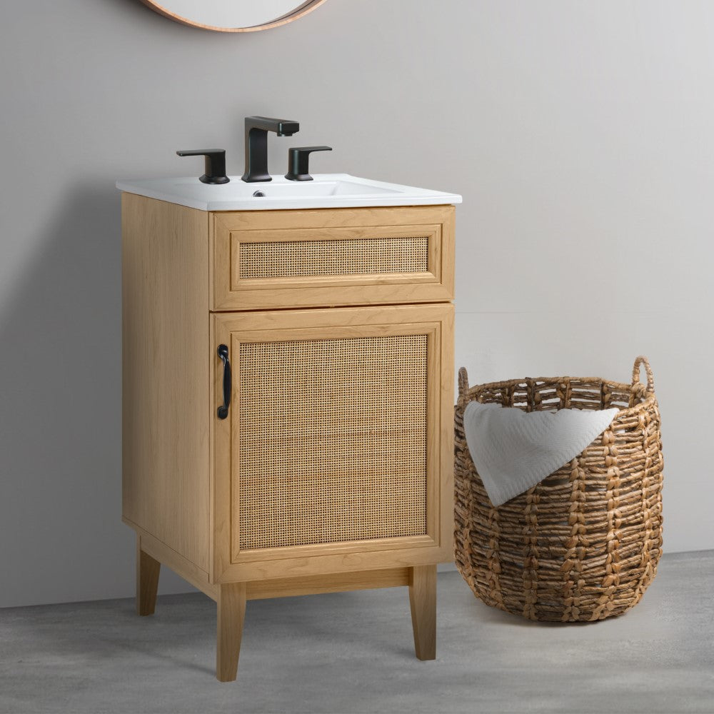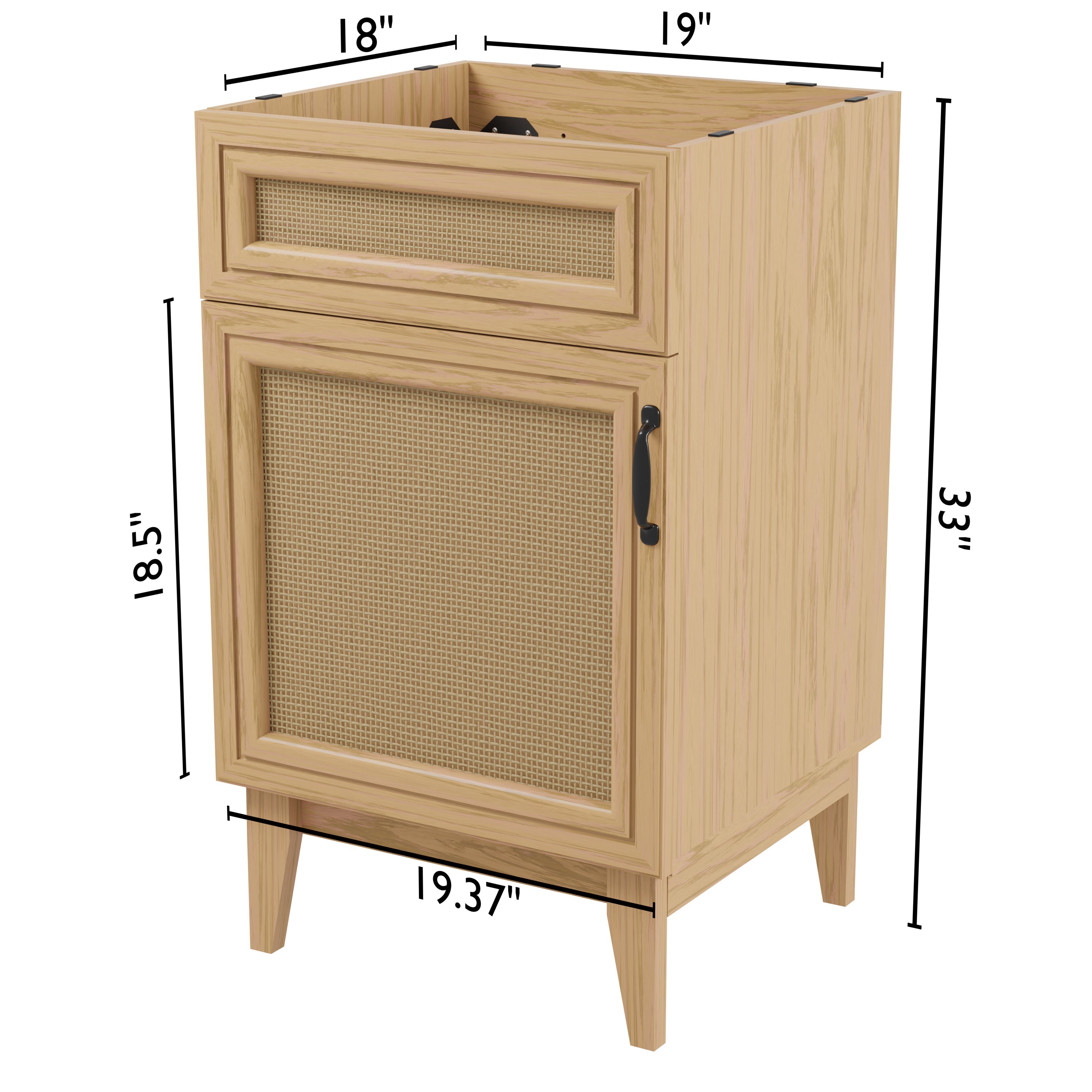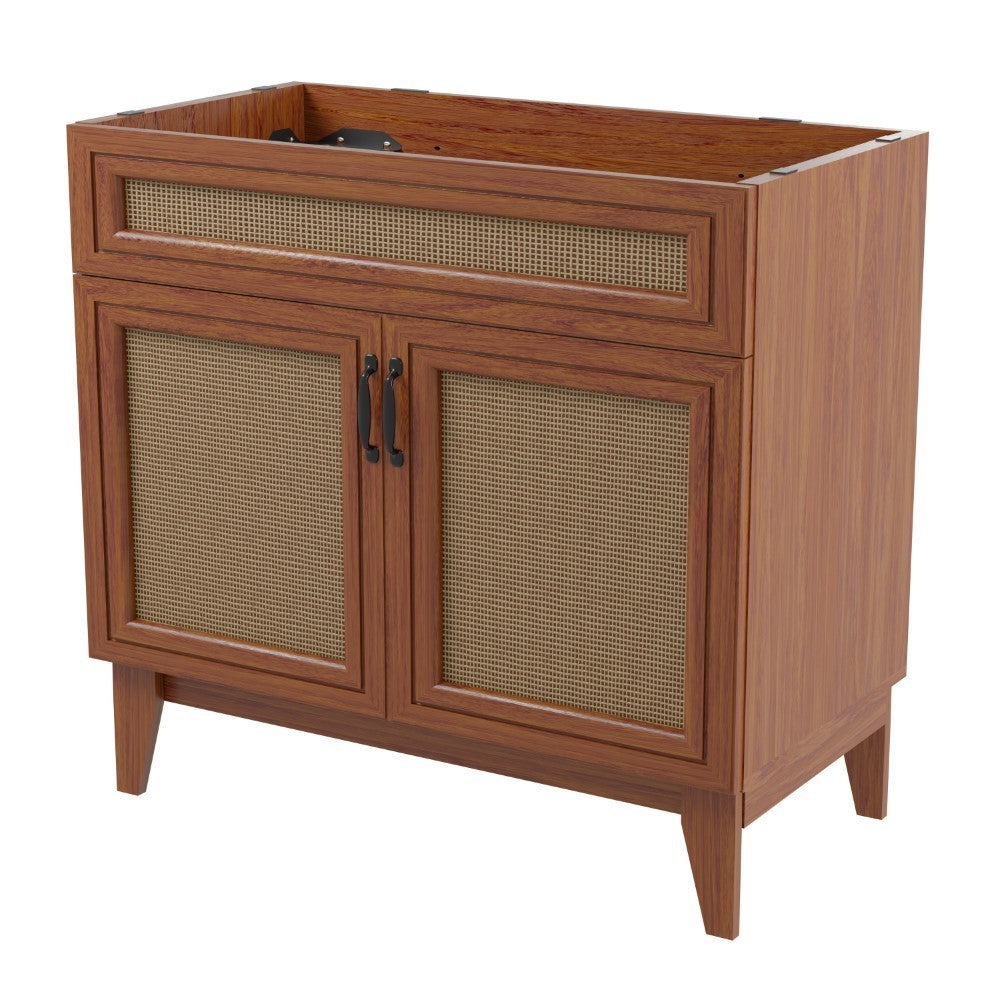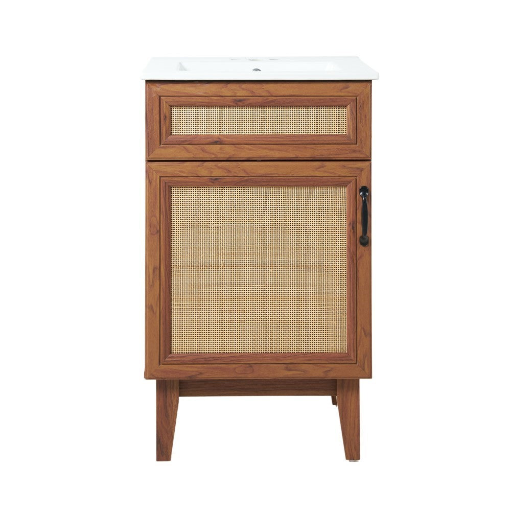 Elevate any 20" sink basin (sold separately) with this bohemian cabinet. With a single door and caned paneling, this cabinet adds a touch of rustic or traditional decor to any bathroom. Whether used in your primary bathroom or powder room, this piece will bring the space together.