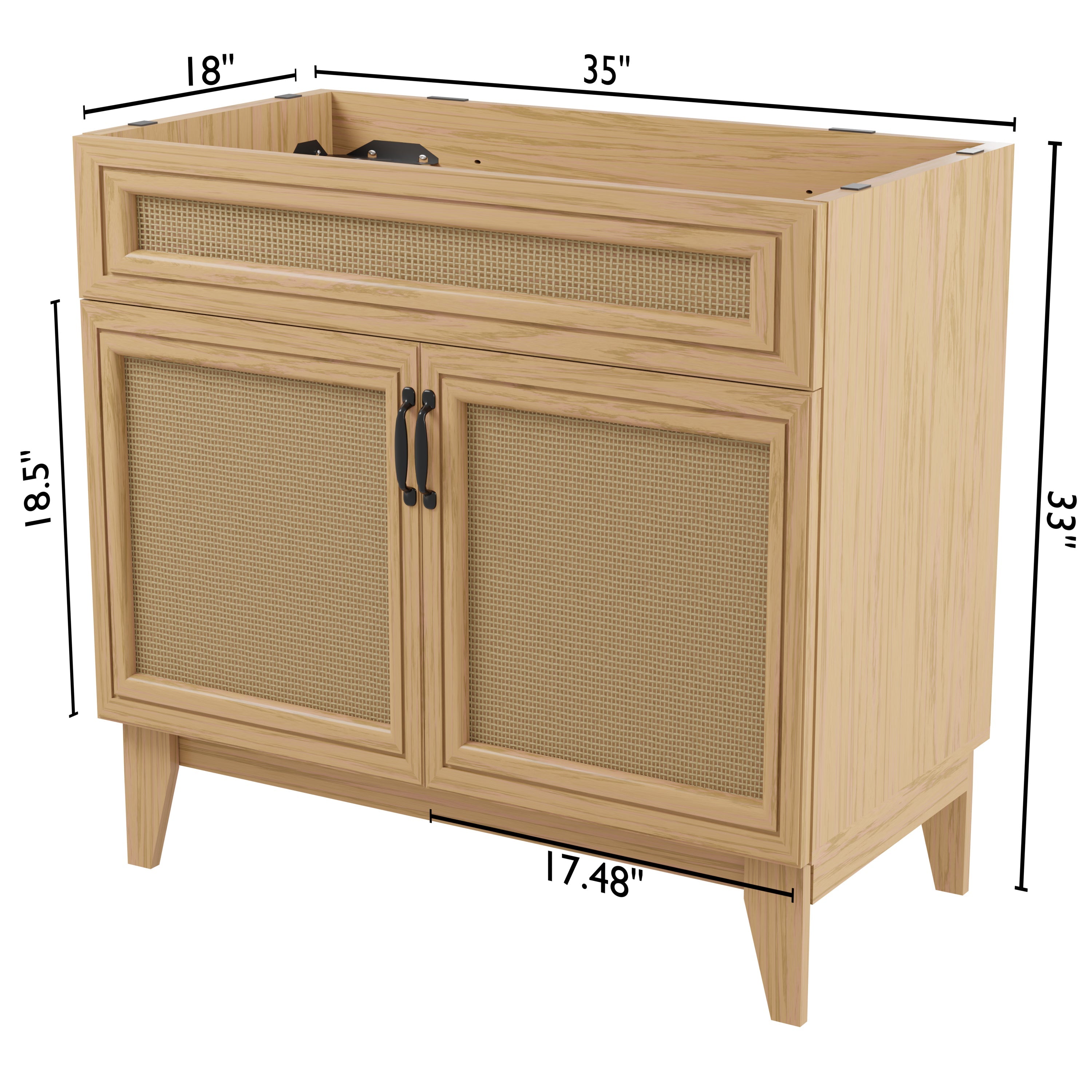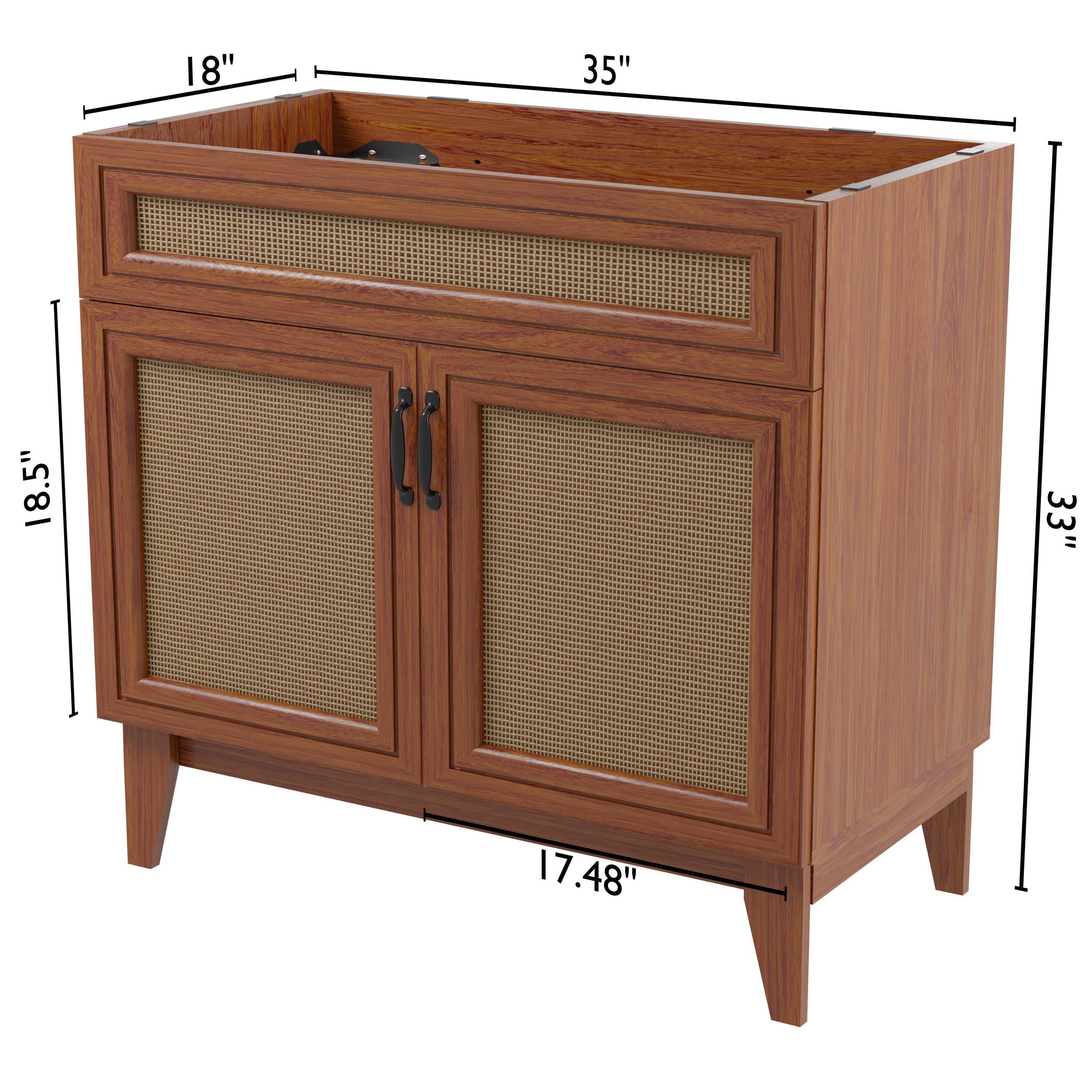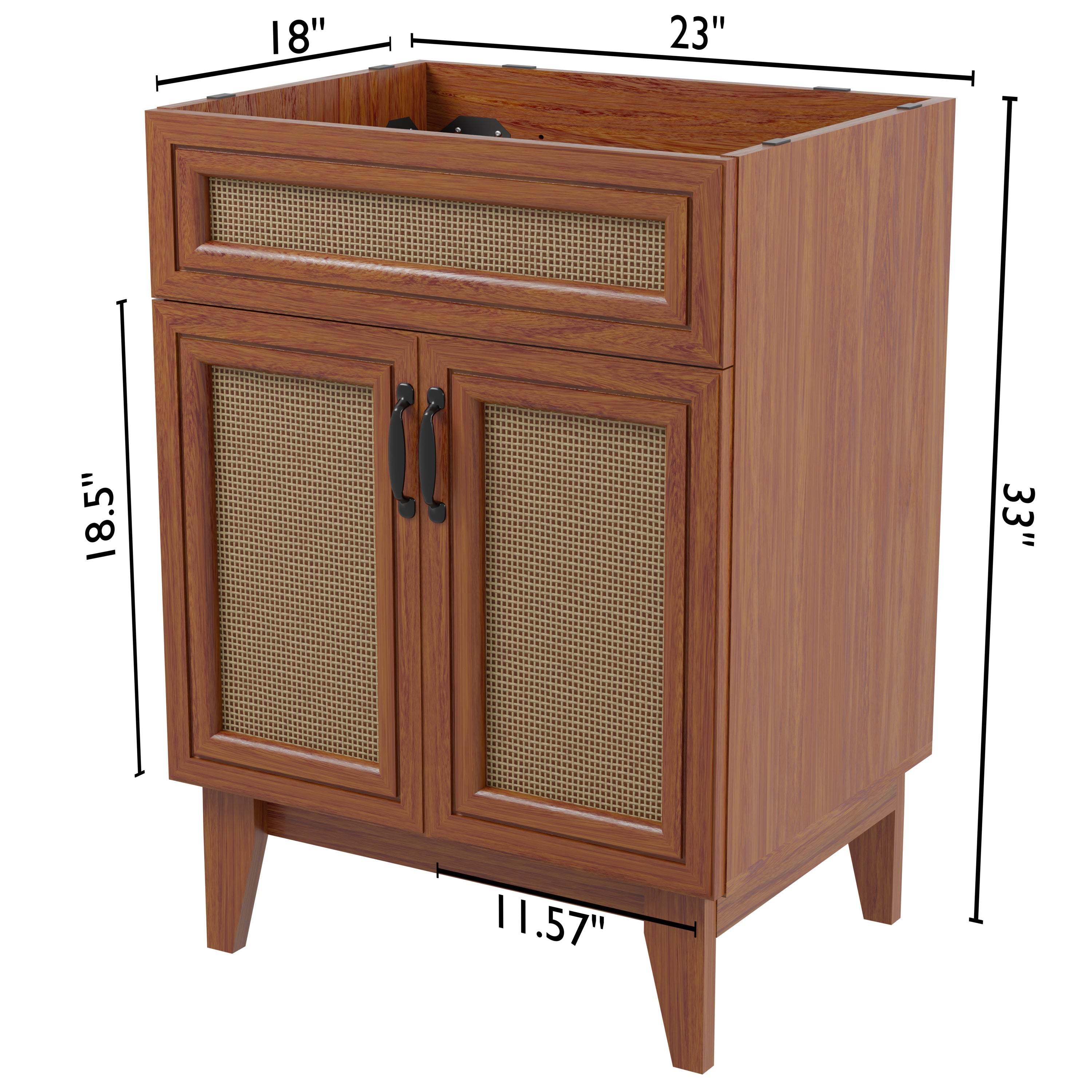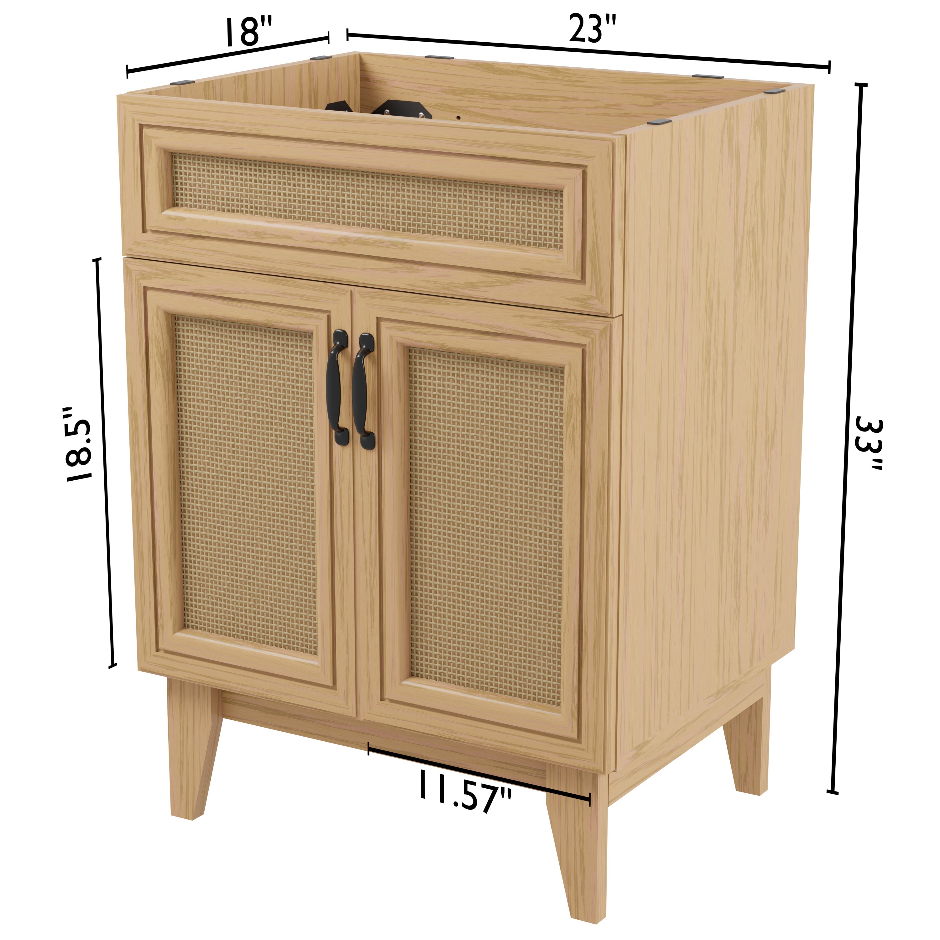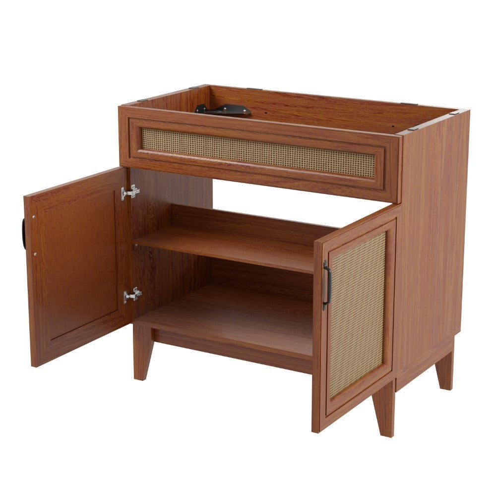 Elevate any 20" sink basin (sold separately) with this bohemian cabinet. With a single door and caned paneling, this cabinet adds a touch of rustic or traditional decor to any bathroom. Whether used in your primary bathroom or powder room, this piece will bring the space together.