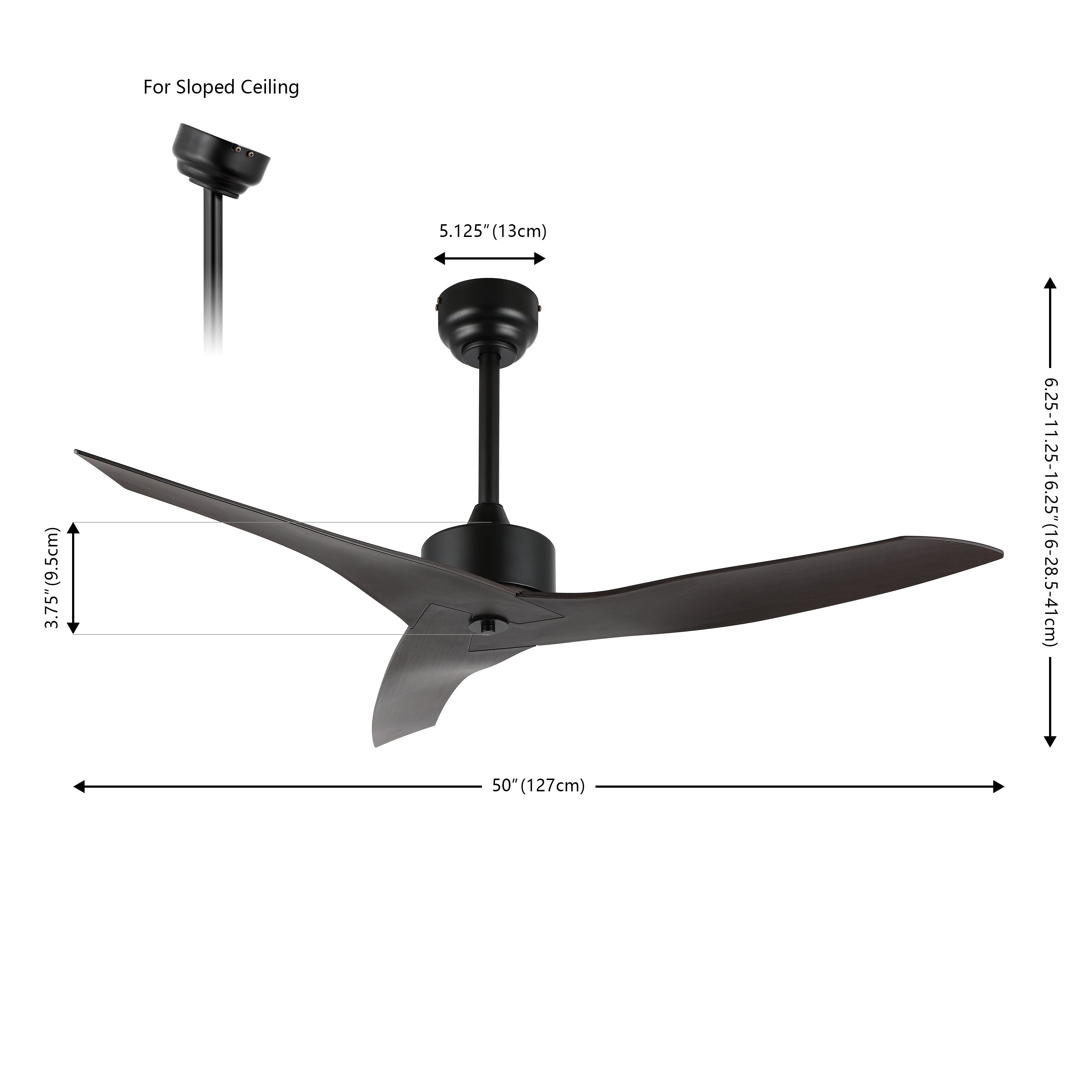 Roboto 50" Modern Minimalist Iron/Plastic Mobile-App/Remote-Controlled 6-Speed Razor Ceiling Fan