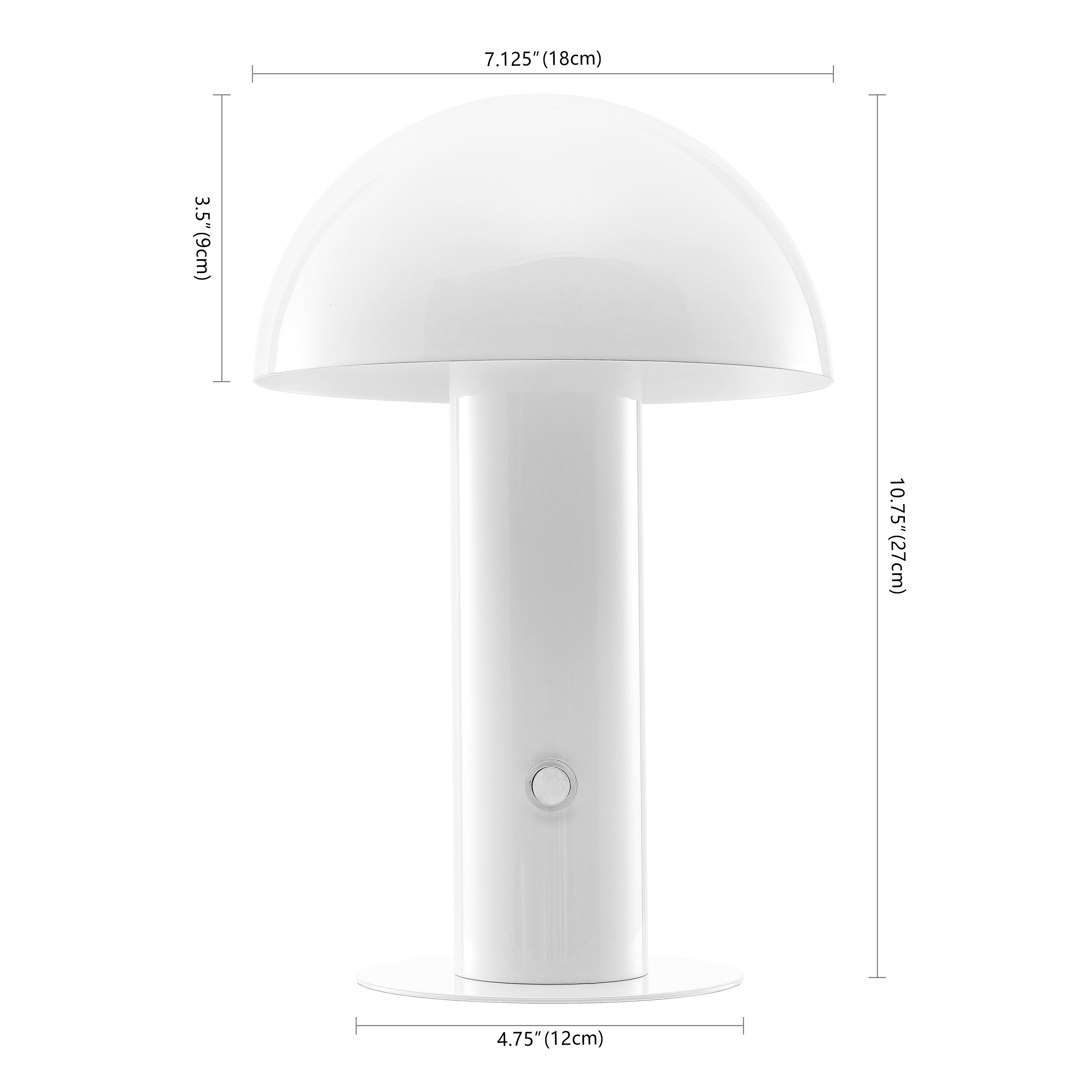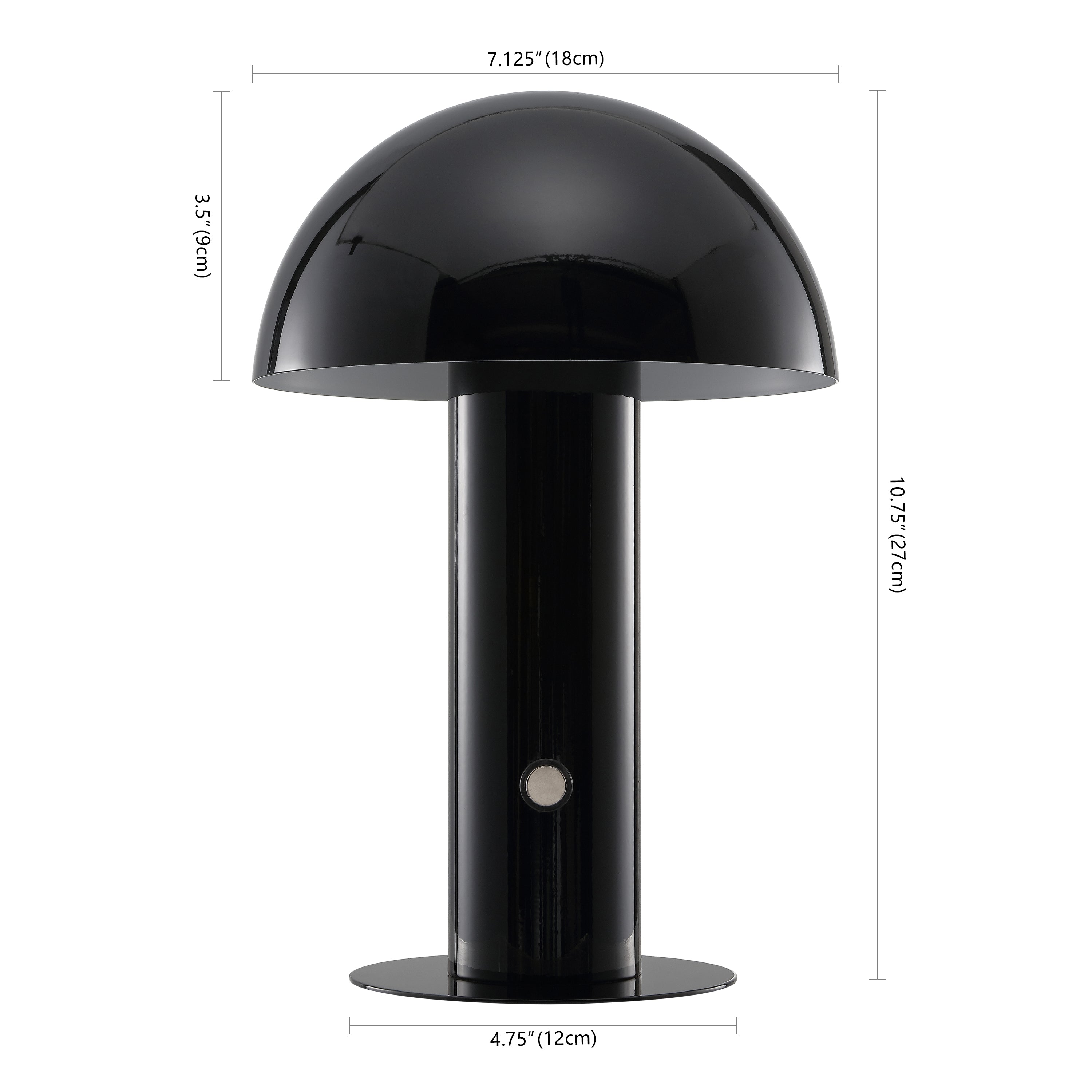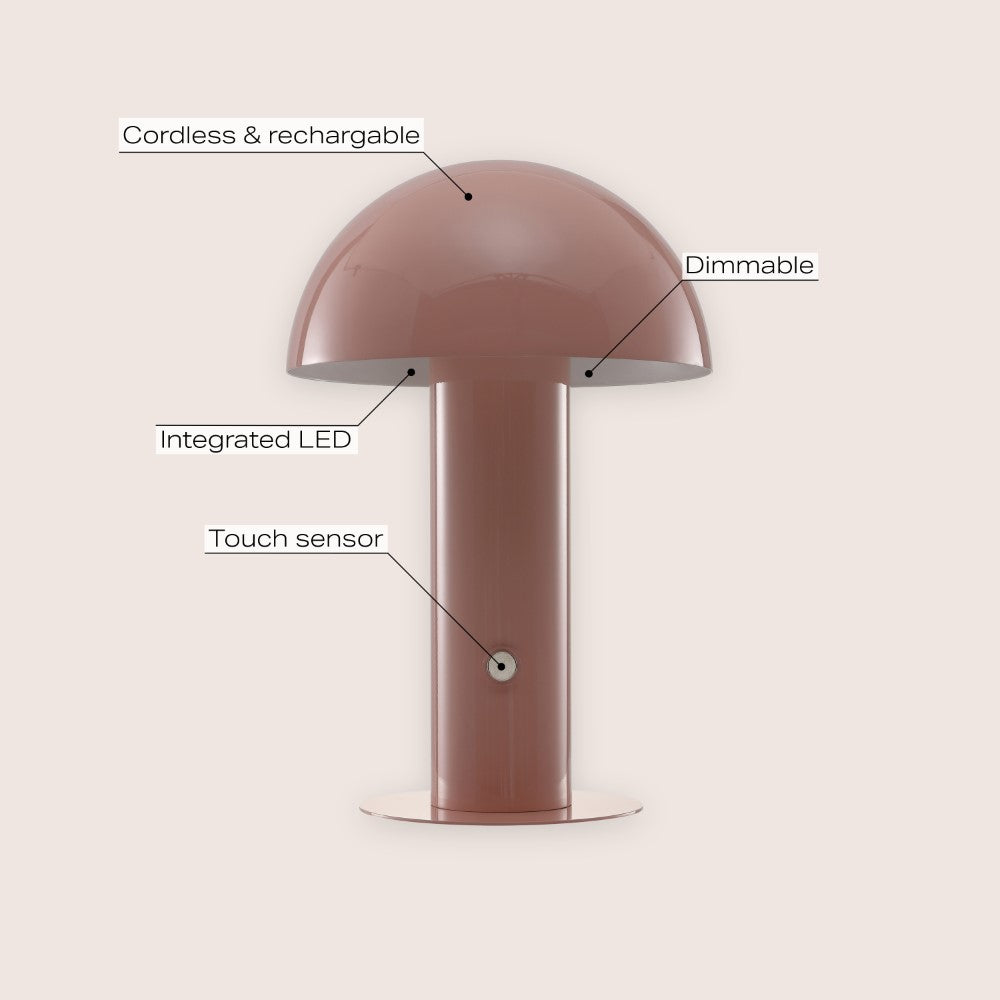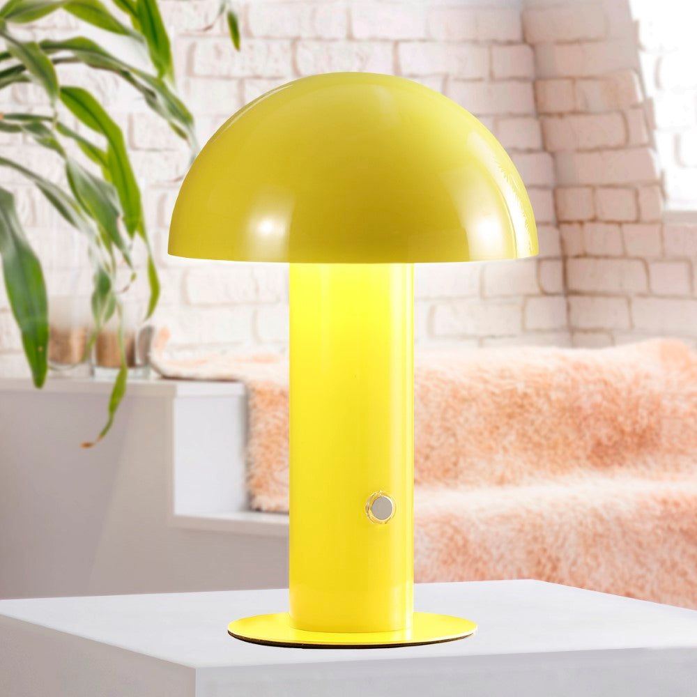 Our portable mushroom lamp's minimalist silhouette is the perfect modern accent for a desk, bar console or vanity. This cordless, rechargeable lamp provides dimmable mood lighting for your dining room, living room, bedroom, or entry. The durable metal design features integrated LED bulbs and a touch sensor to control the three brightness settings.