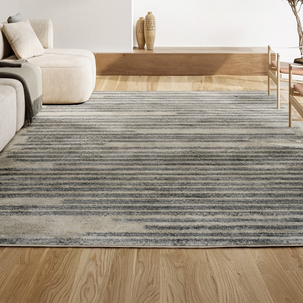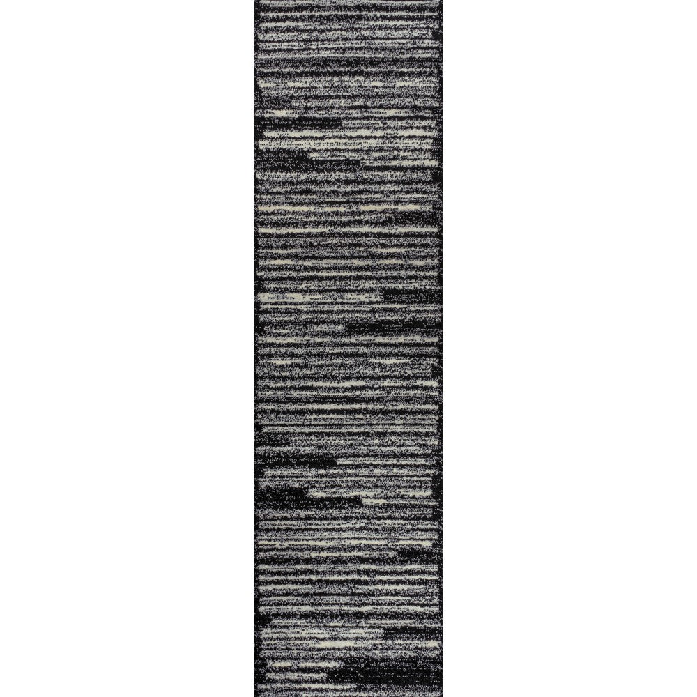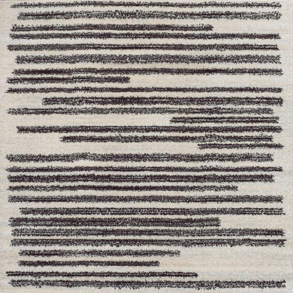 Inspired by vintage Moroccan rugs, our modern striped rug is power-loomed with a short pile. The offset stripe and bar pattern is woven in black on an ivory background; the mingled threads recall traditional handwoven rugs. Add some mid-century style to your home with this easy-care rug.