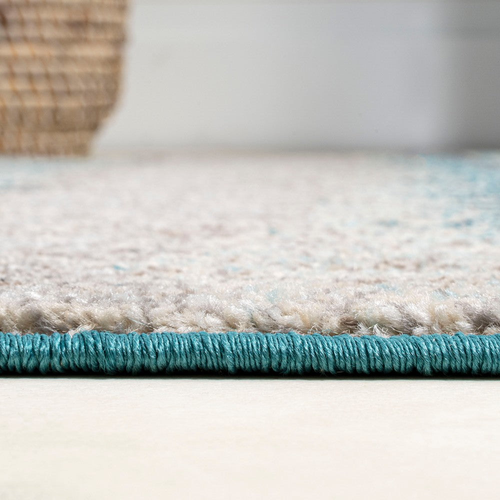 • Combining tones of blue, aqua, beige, green, and gray, this rug is a versatile addition to any color scheme