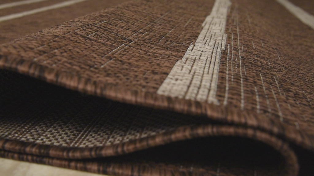 - The woven beige and brown color scheme brings a modern touch to this timeless rug
