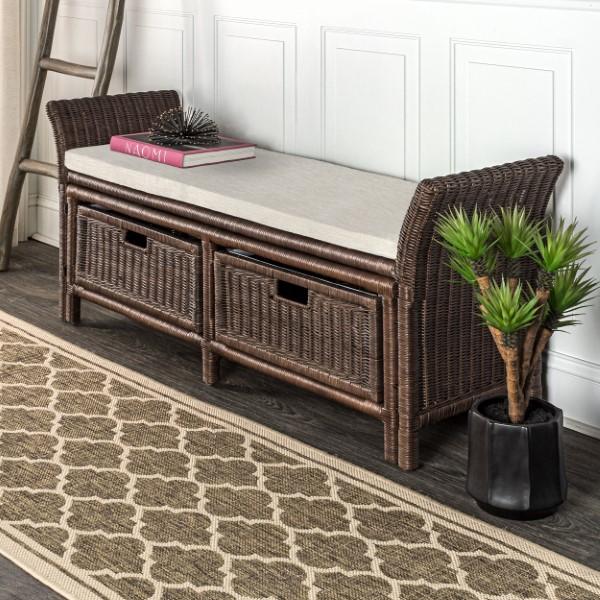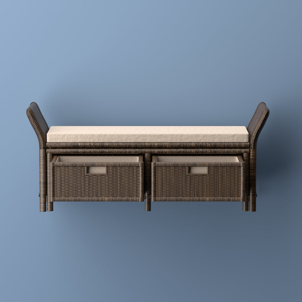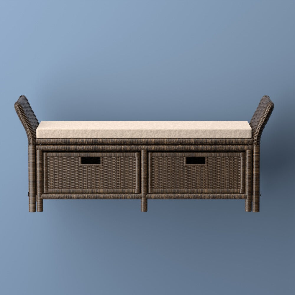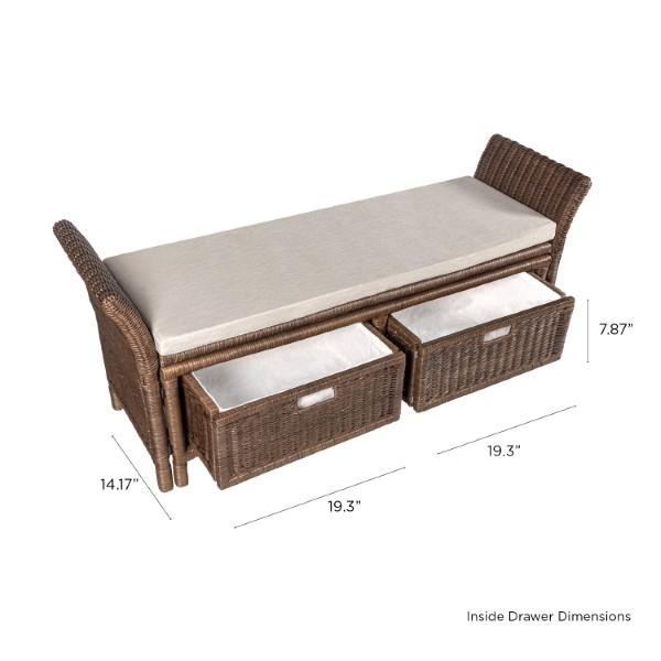 Tropic 52" 2 Drawer Wicker Storage Bench wih Linen Cushion