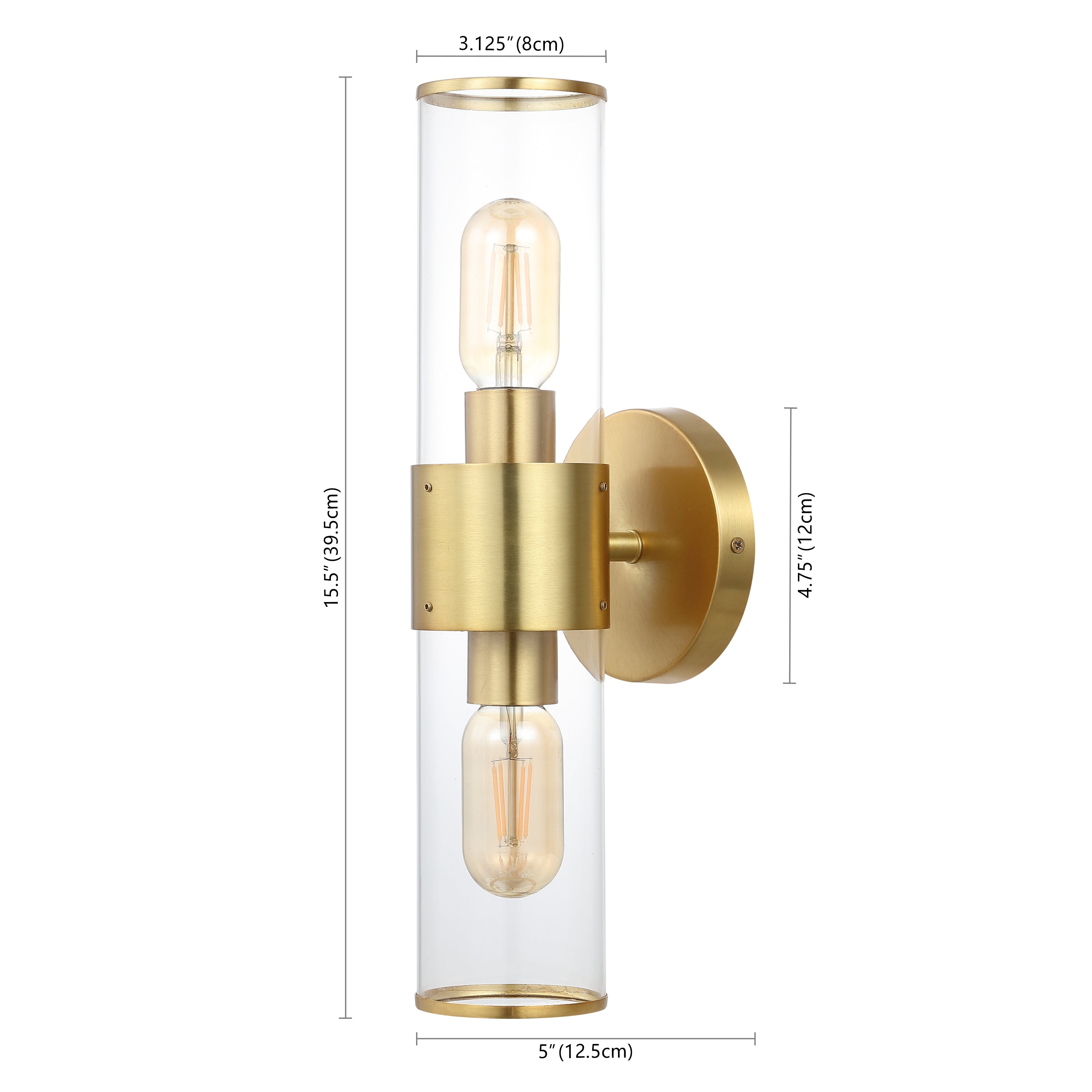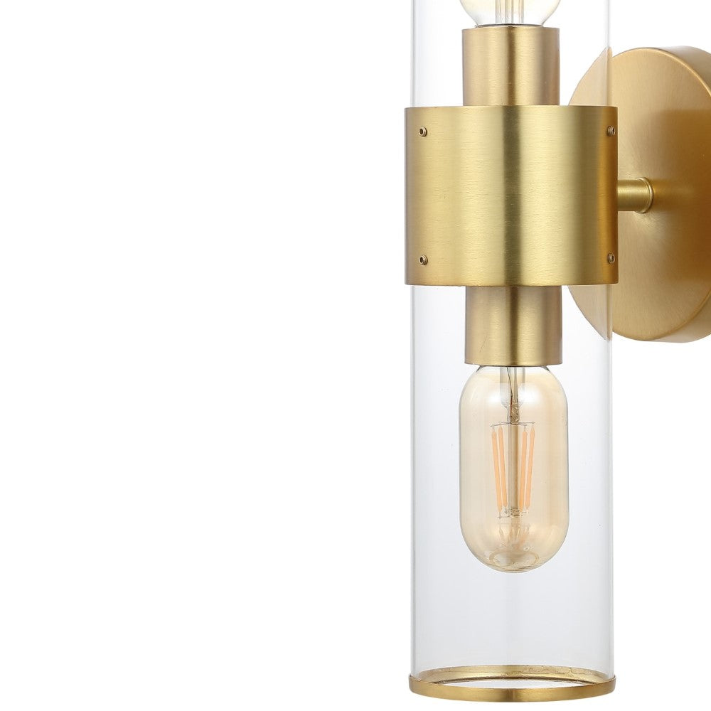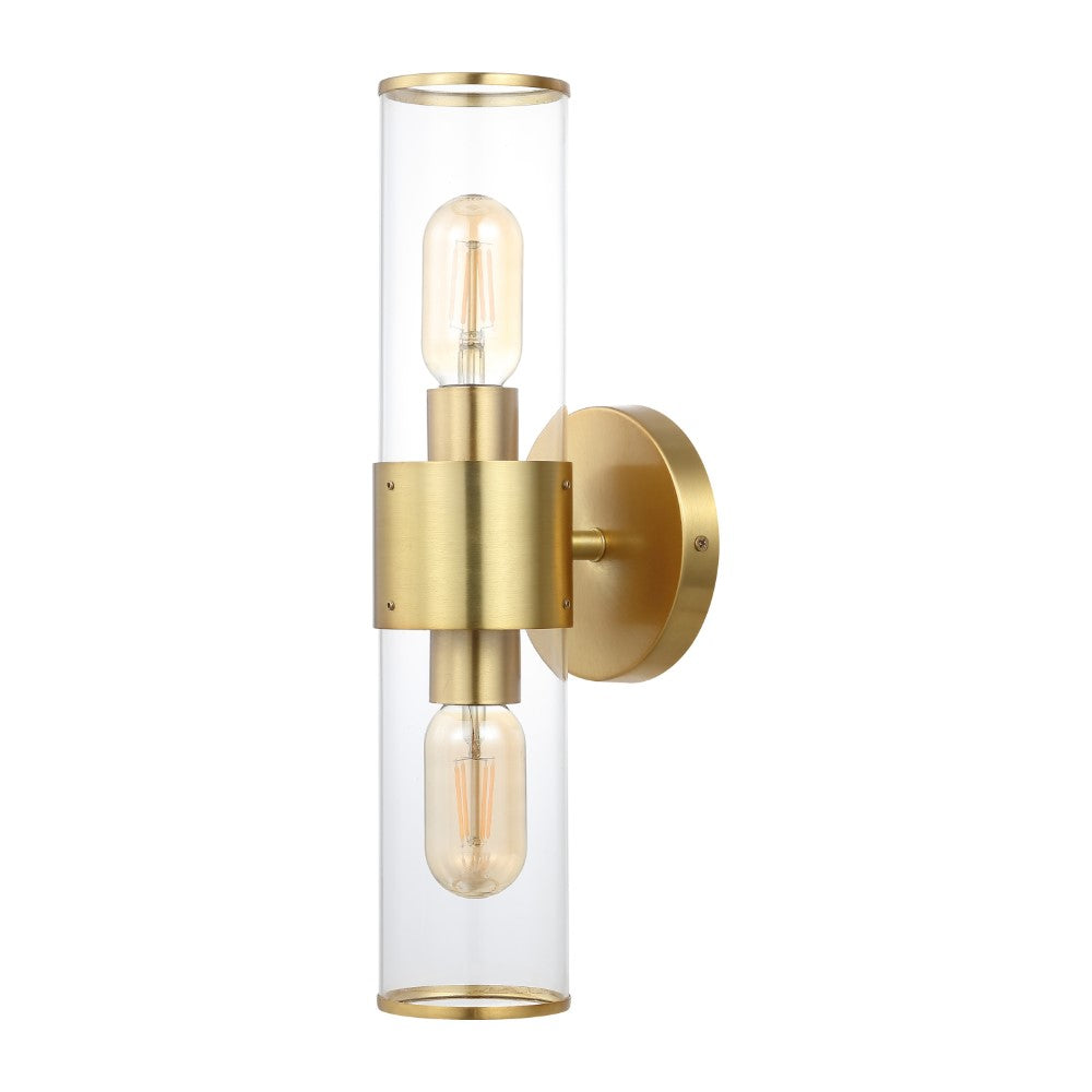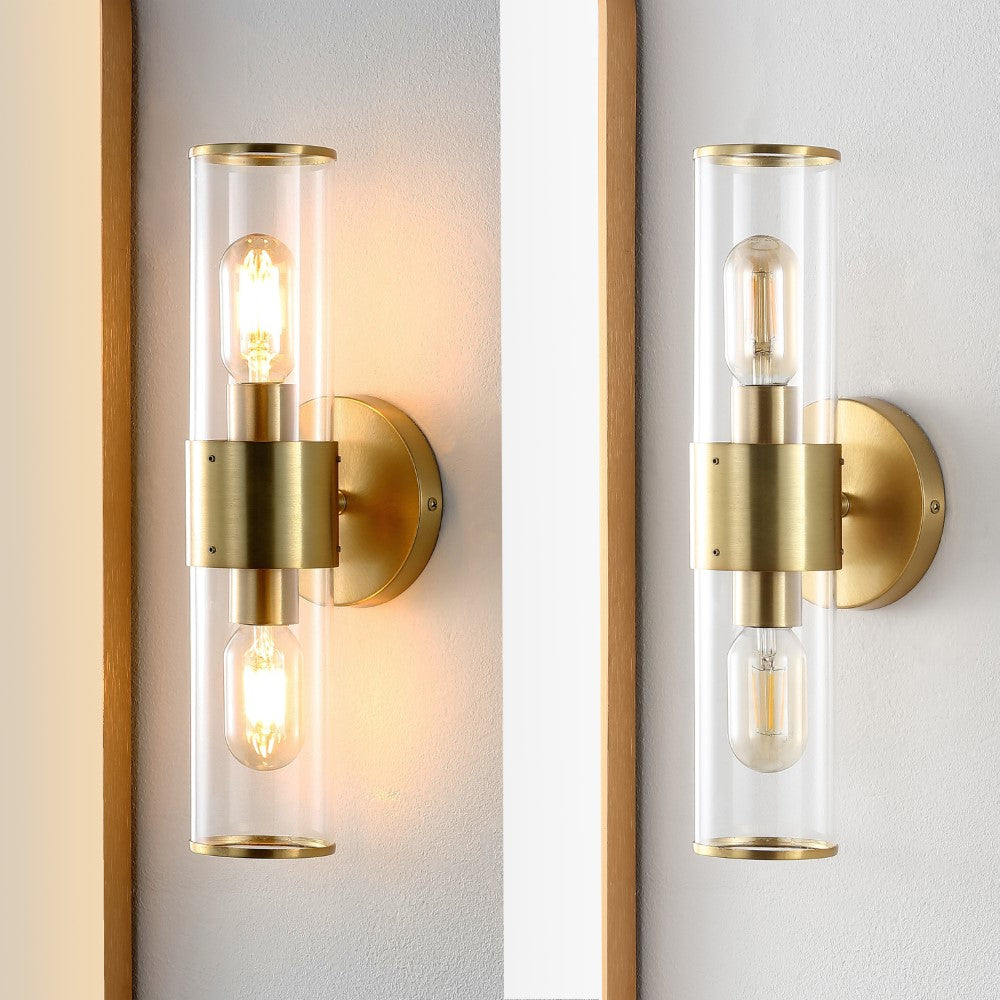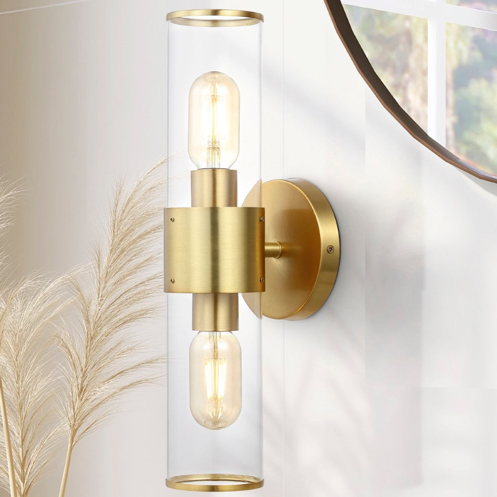 With a brass-gold finish and clear glass cylinders, this wall light expresses classic vintage style