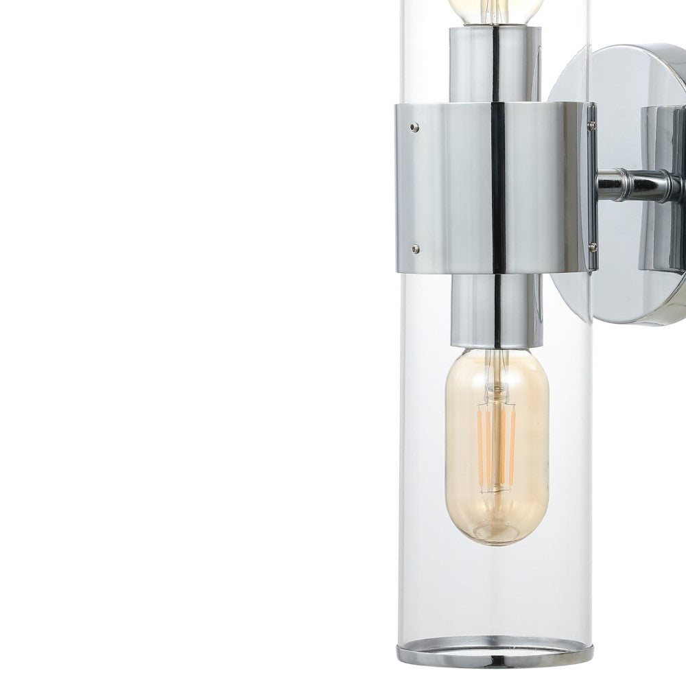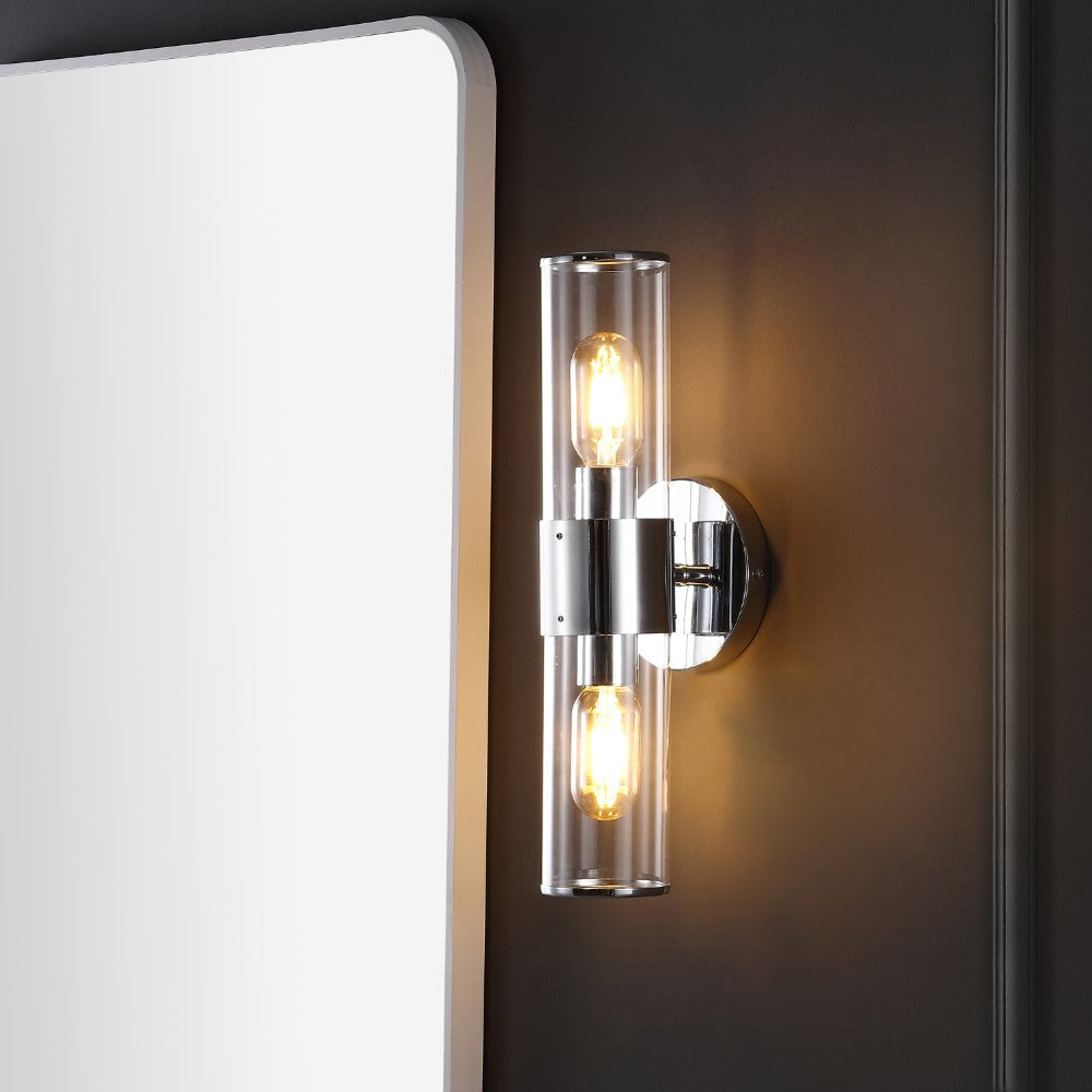 Add mid-century style to your modern bath vanity with our double-cylinder minimalist wall lights. The sleek finish accentuates the fixture's clean lines, while the clear glass cylinders let the Edison-style LED bulb shine. These versatile lights are perfect for mid-century modern or contemporary spaces, adding a touch of sparkle to your bath vanity, kitchen, hallway or entry.