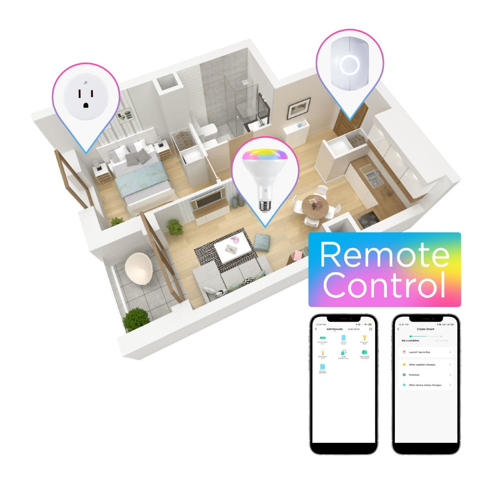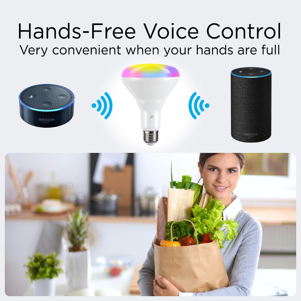 Update your recessed ceiling lights! Add Smart Home technology with our 2-Pack of LED Smart Indoor Flood Bulbs. Dimmable, color-changing LEDs let you choose from millions of custom colors, or bright white light. Just put them in a standard light fixture, download the App from the App Store, and connect through your existing WiFi. Using your phone as a remote control, you can light up a party with custom colors, automate your lighting for home security, or turn lights on and off from anywhere in the world.