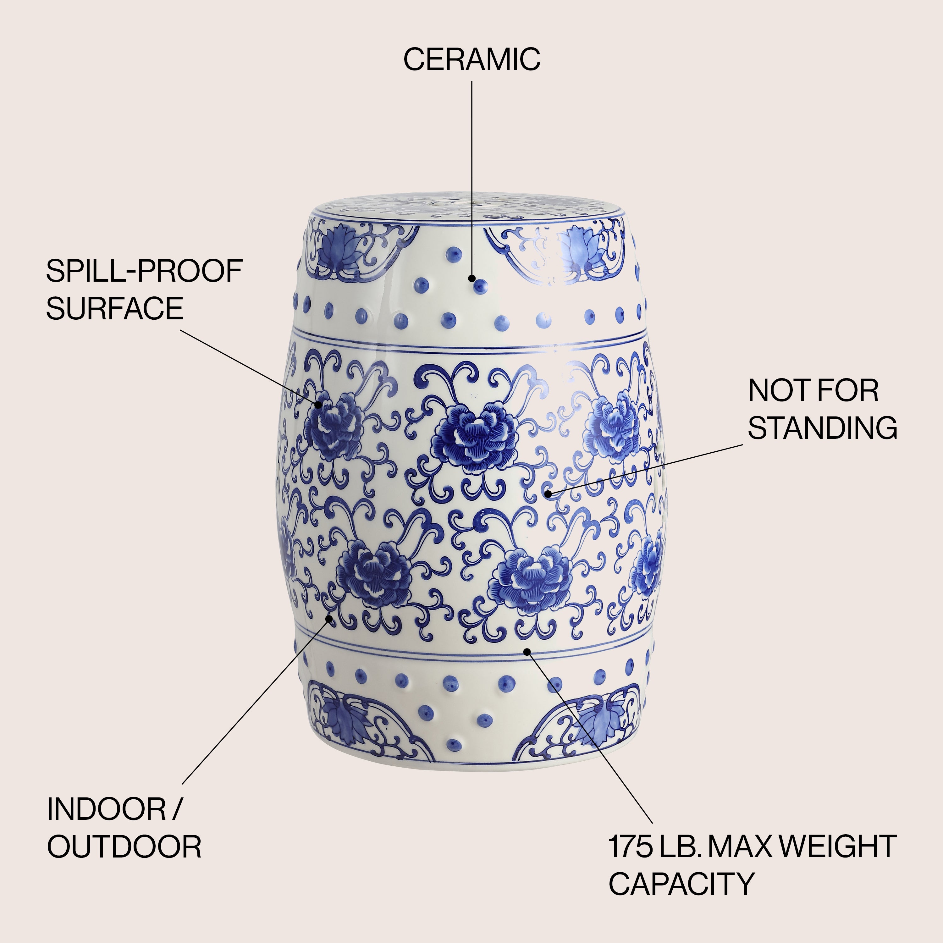 Aotus Flower 17.8" Chinoiserie Ceramic Drum Garden Stool