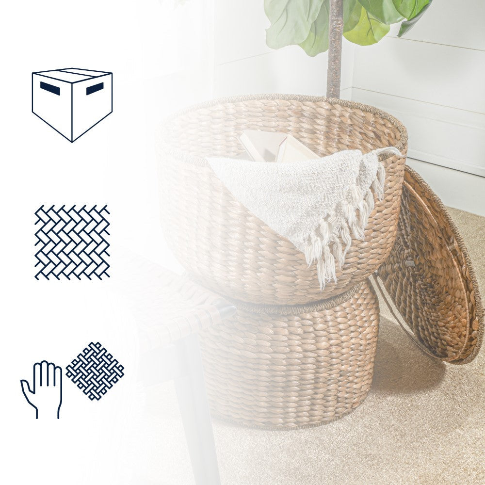 This accent table doubles as a storage bin and fits perfectly in any bohemian or coastal home. Made of handwoven hyacinth, the curves of our accent table add a rustic flair to any space it's in. Arriving in a neatly packed nested shipment, it's a totally easy assembly!