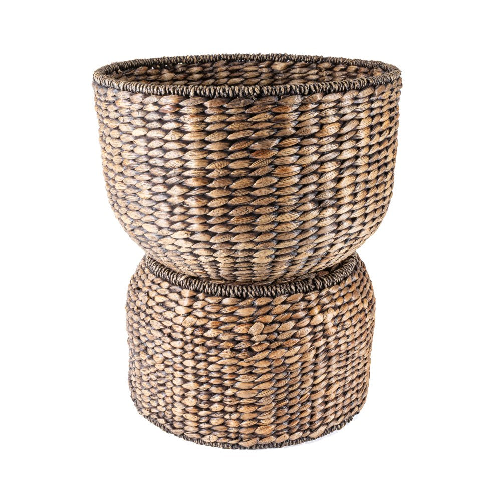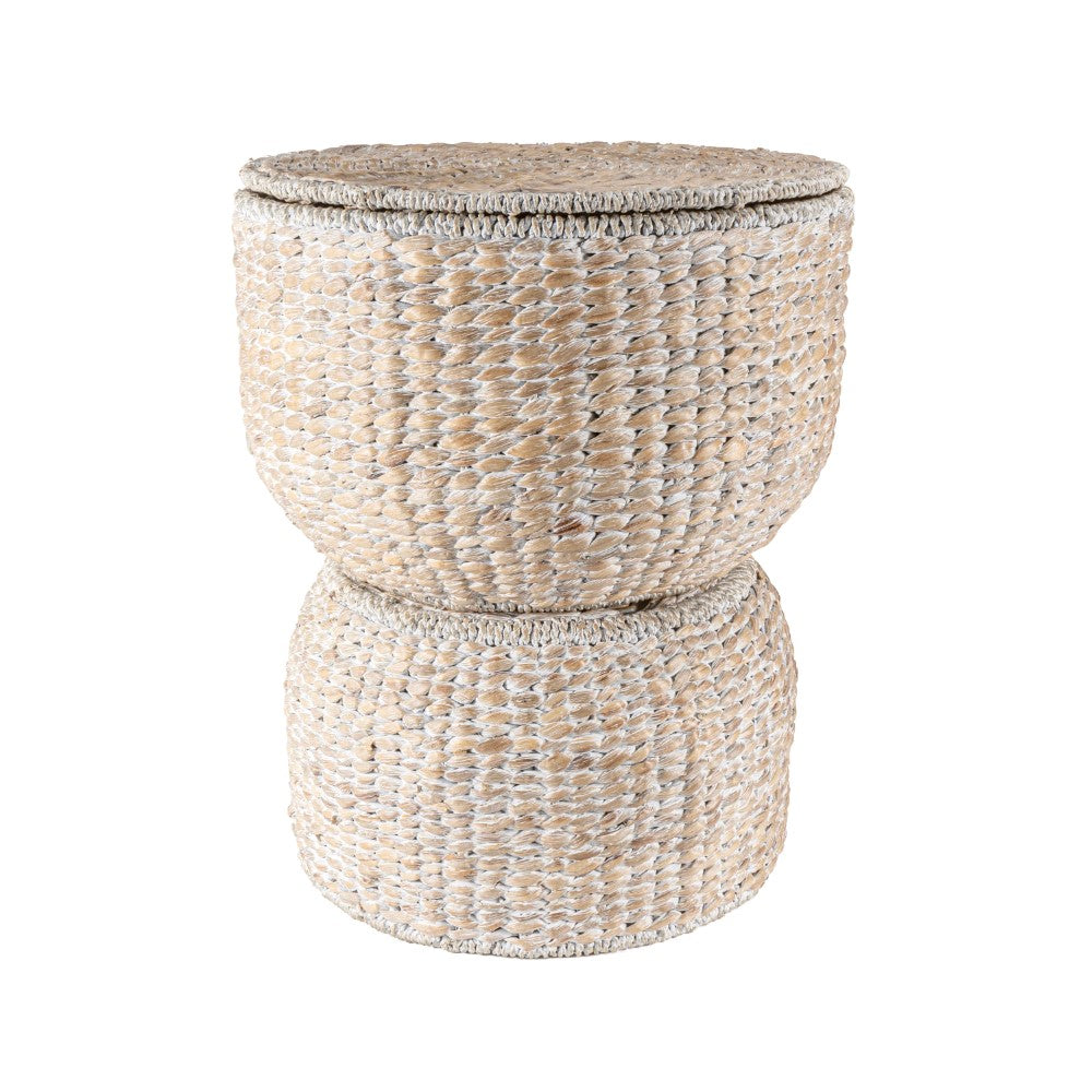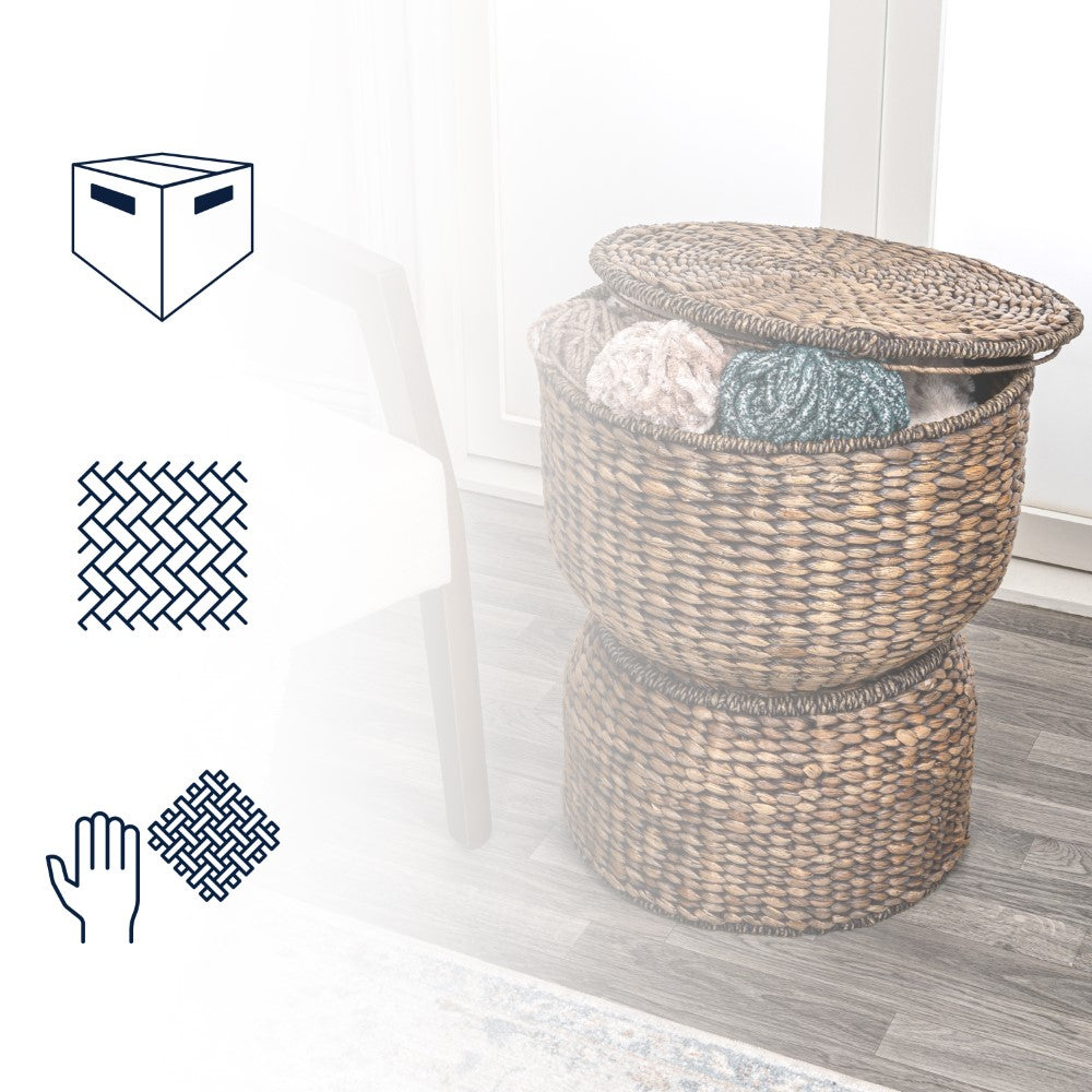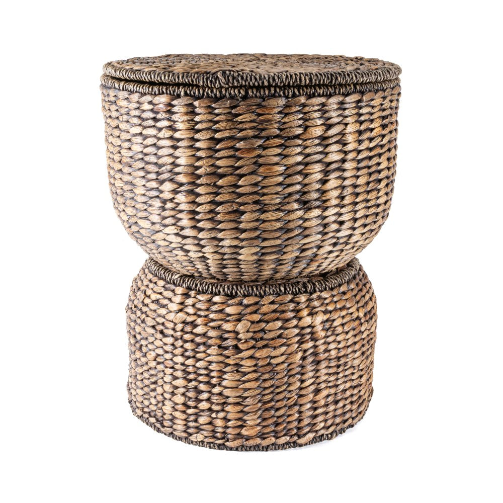 Bhola 18" Hourglass Handwoven Hyacinth Storage Accent Table with Lid