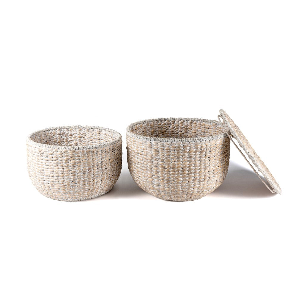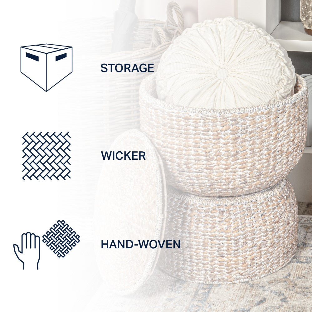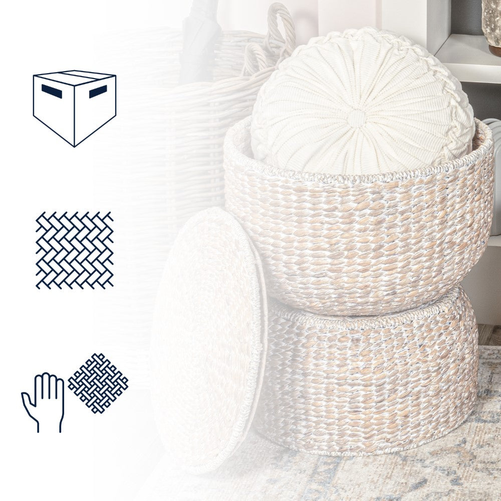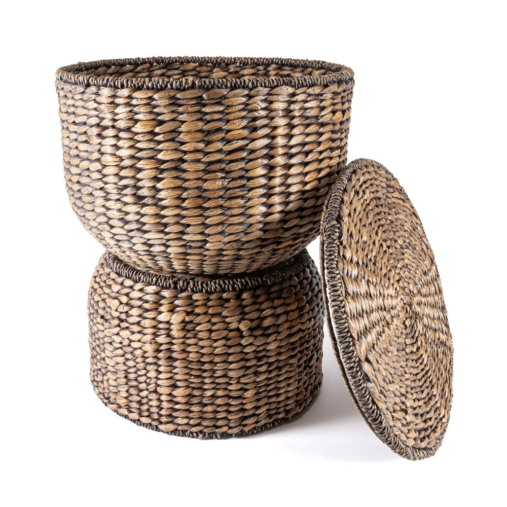 Bhola 18" Hourglass Handwoven Hyacinth Storage Accent Table with Lid