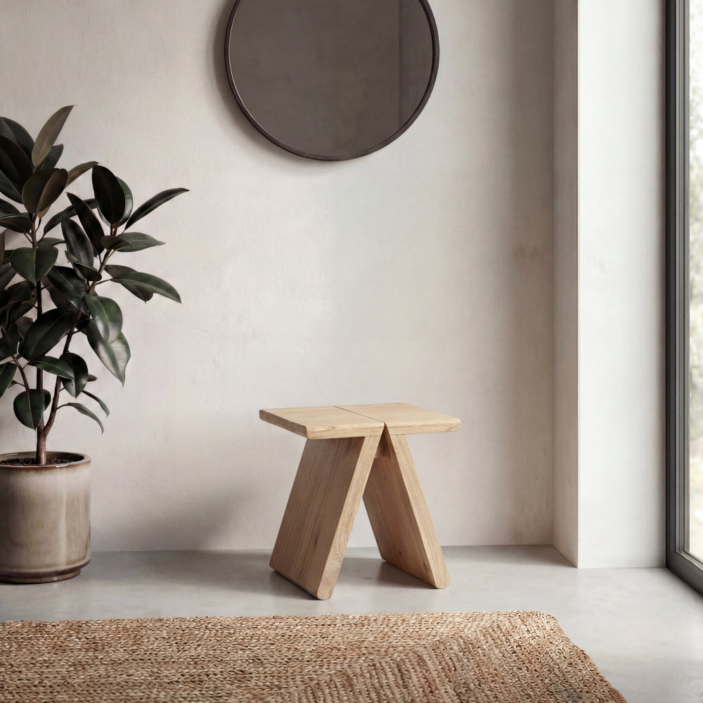 Handcrafted from solid Mindi wood, this versatile stool brings warmth and character to any space. Its simple, backless design makes it perfect as extra seating, a convenient side table, or a charming accent piece. Enjoy its enduring beauty and robust construction, effortlessly enhancing your home's aesthetic with timeless appeal.