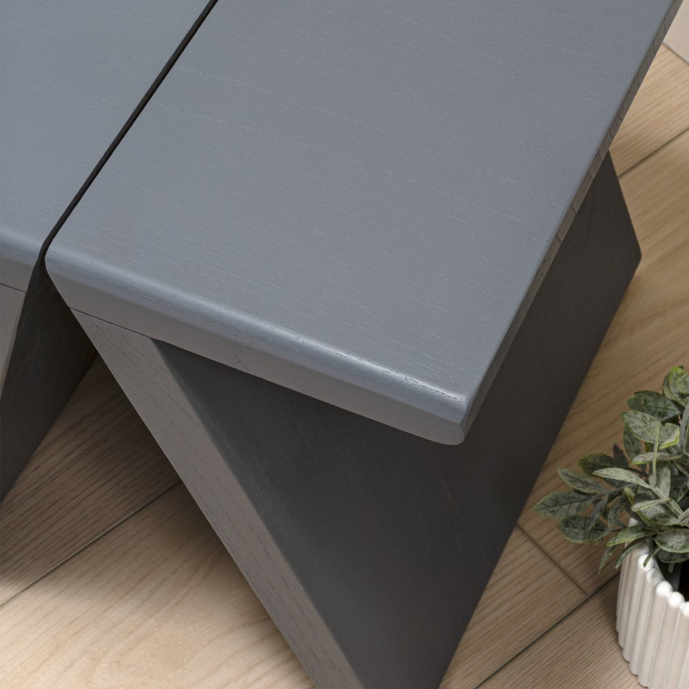 - Features a compact, geometric silhouette crafted from durable solid wood