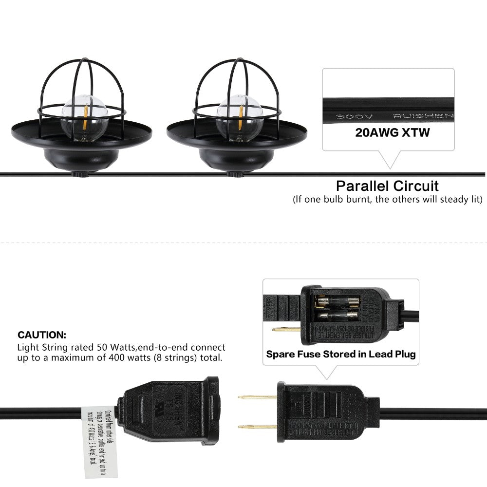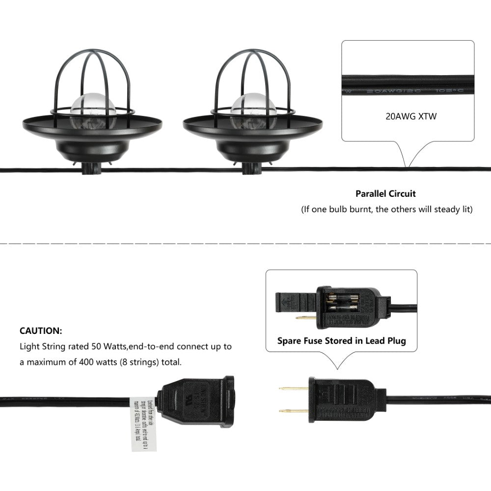 - Stay-Lit design keeps the party going! If one bulb goes out, the rest of the bulbs stay lit Energy-saving 5-watt glass bulbs are protected by a 4.25" wide shade; each strand has 10 bulbs