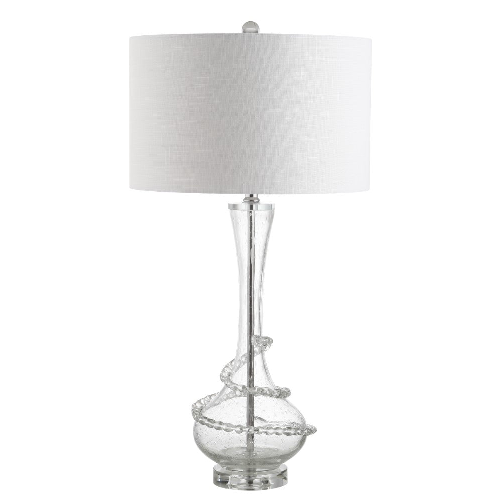 - Inspired by hand-blown glass, this lamp base has a hand-applied swirl detail