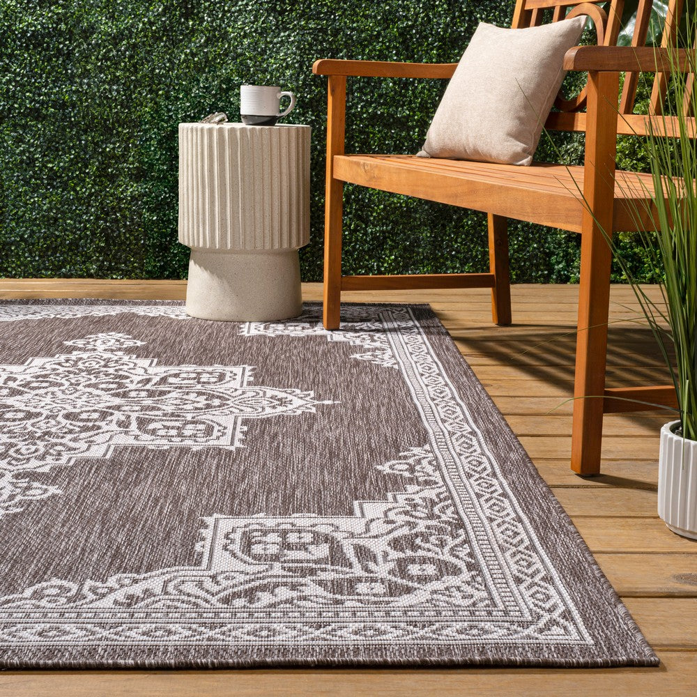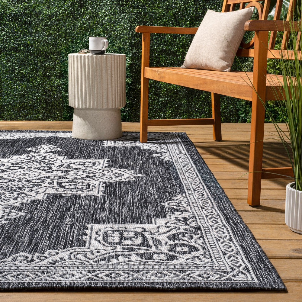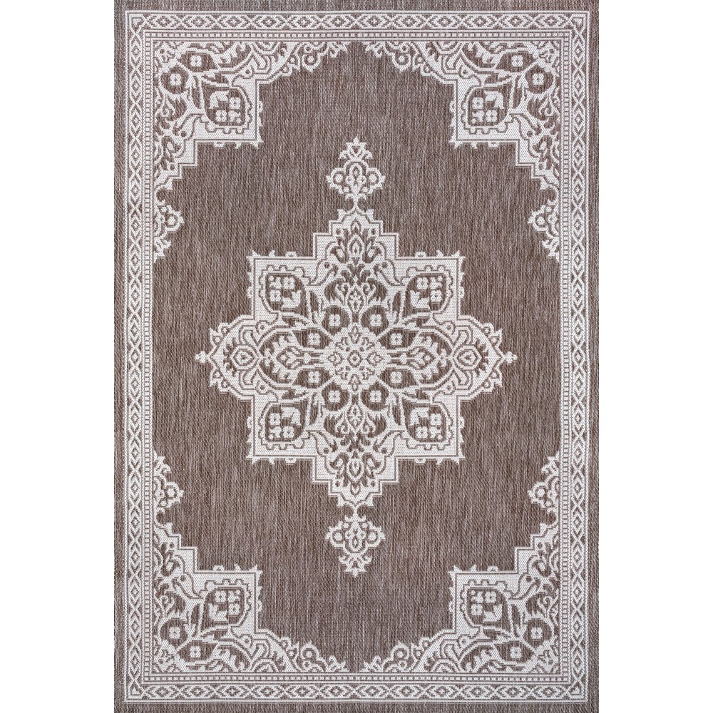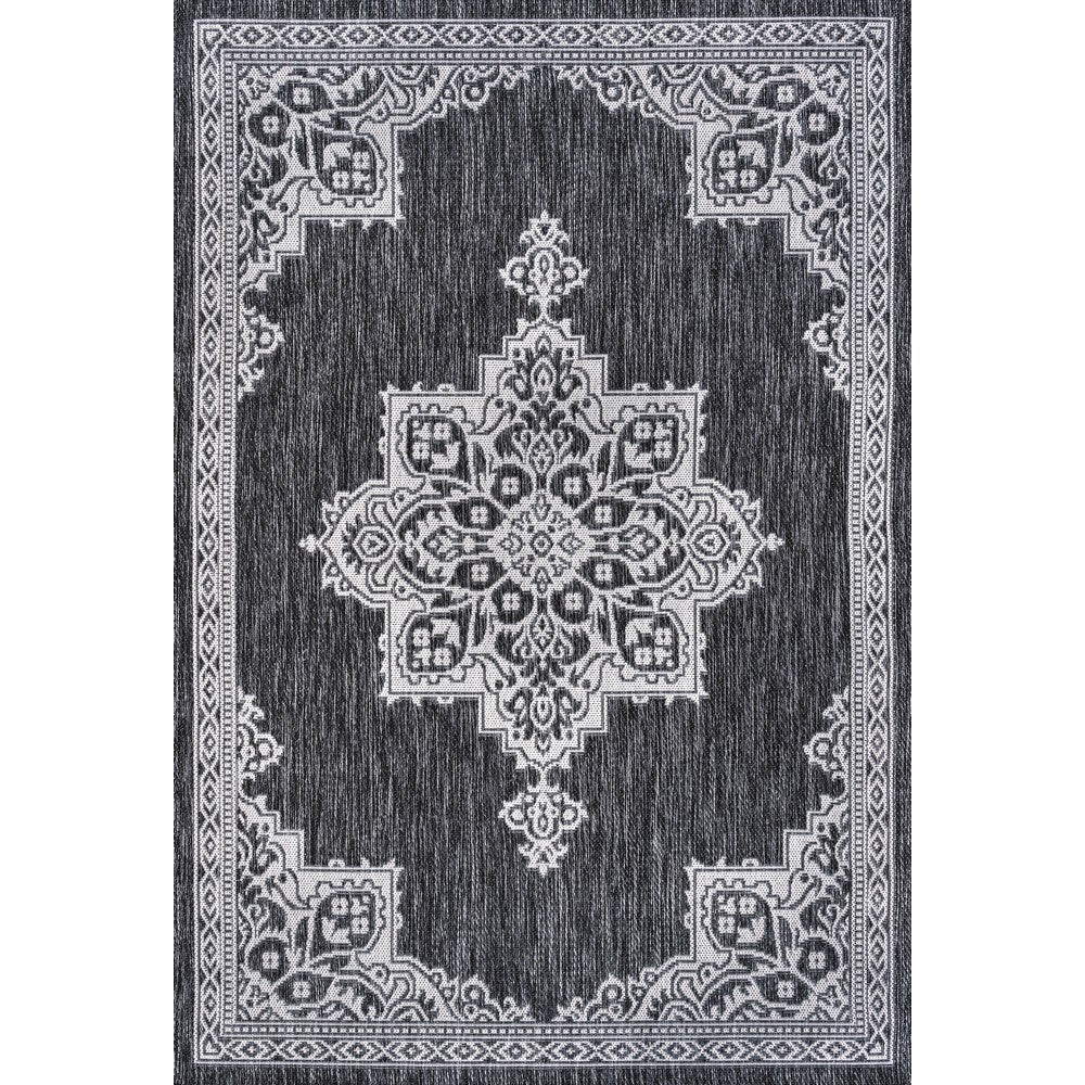With its vintage-inspired design this rug will add bold pattern to any porch or deck. The casual two-tone scheme updates the traditional medallion pattern. Family-friendly polypropylene is perfect for a dining room, living room, or entry too.