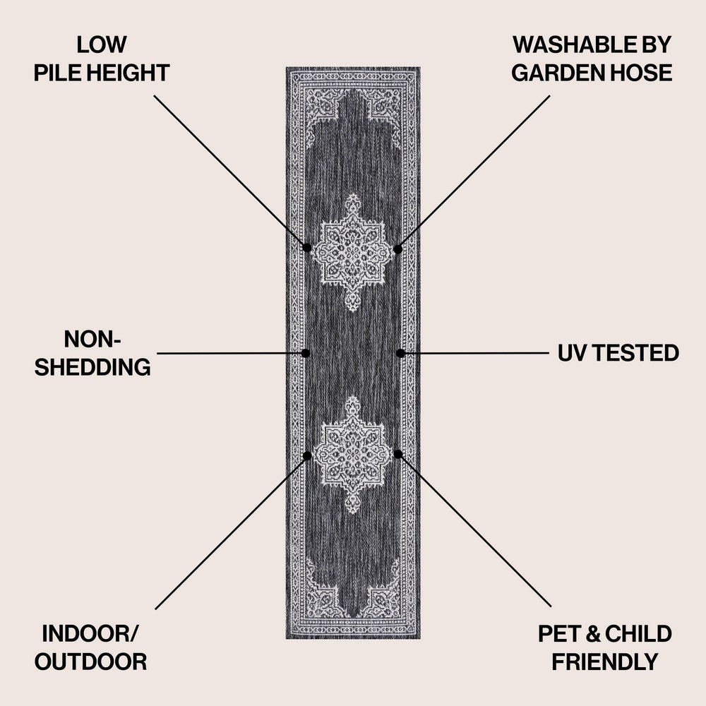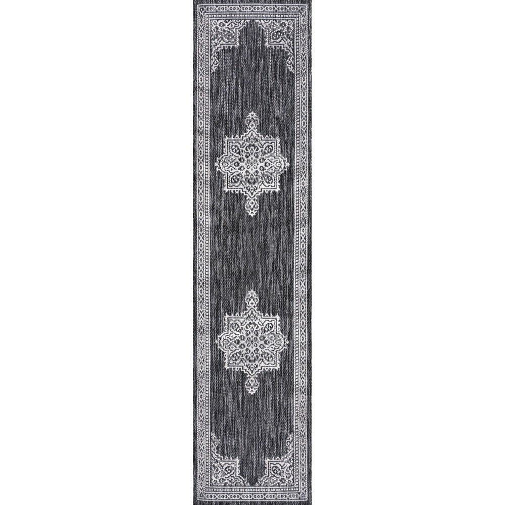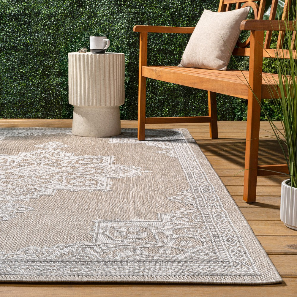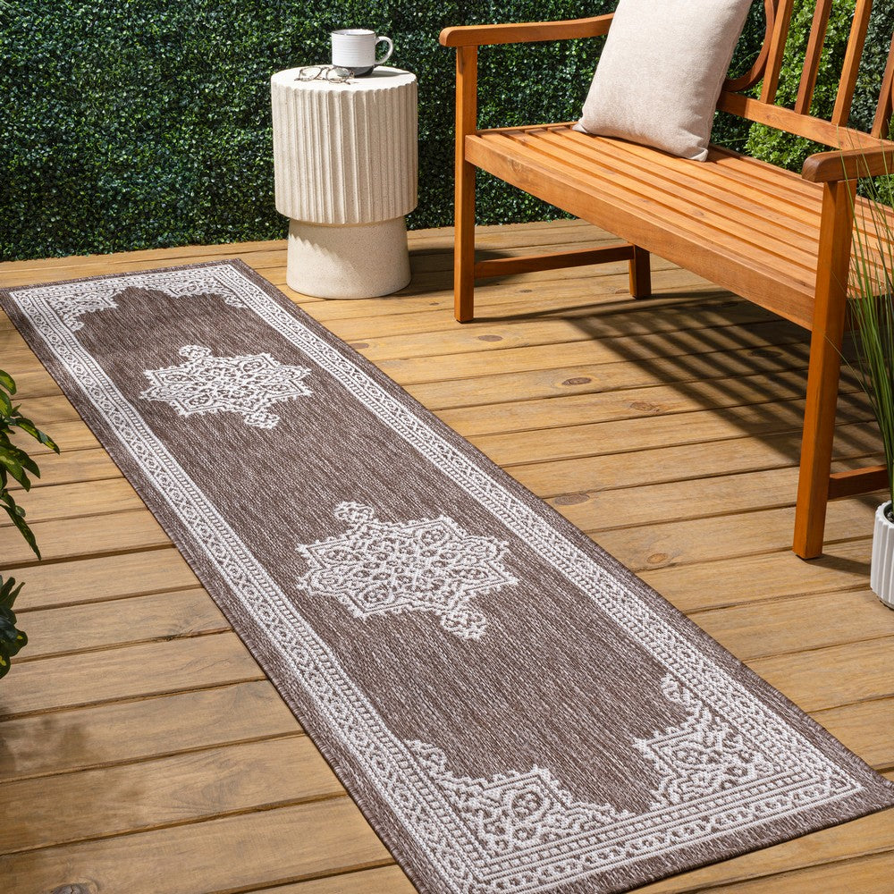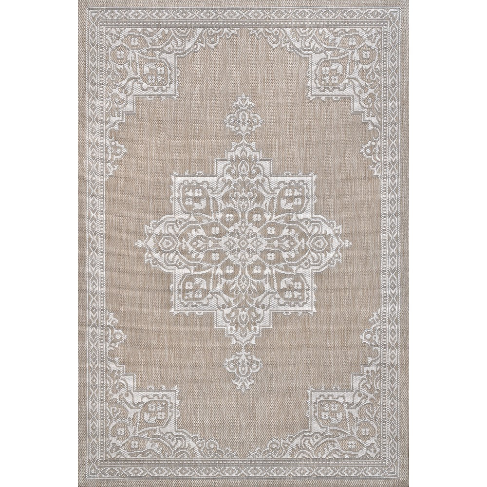 With its vintage-inspired design this rug will add bold pattern to any porch or deck. The casual two-tone scheme updates the traditional medallion pattern. Family-friendly polypropylene is perfect for a dining room, living room, or entry too.