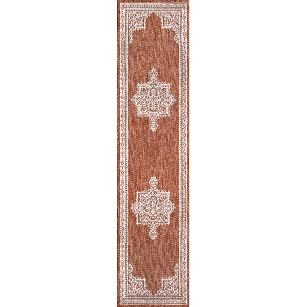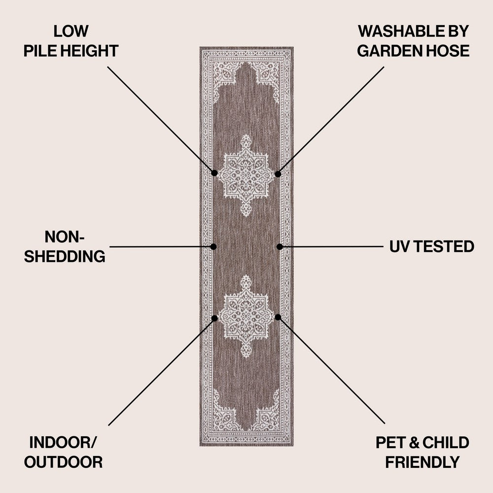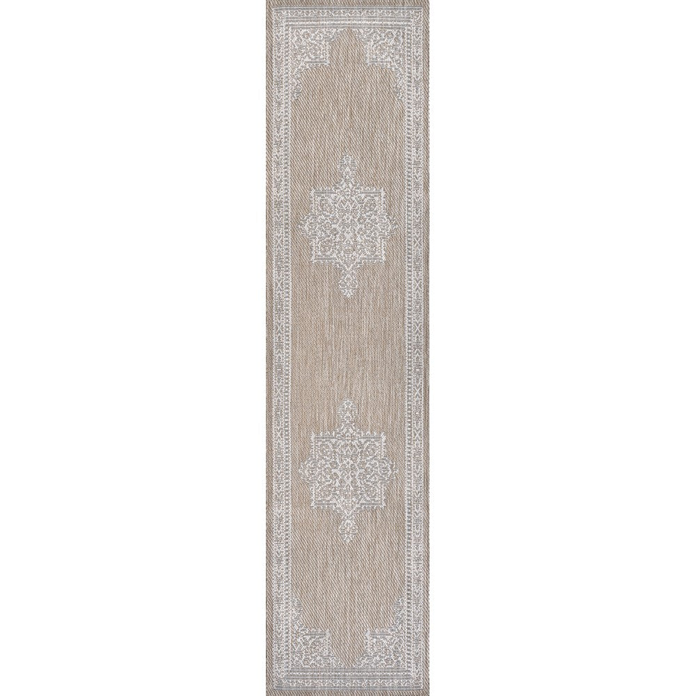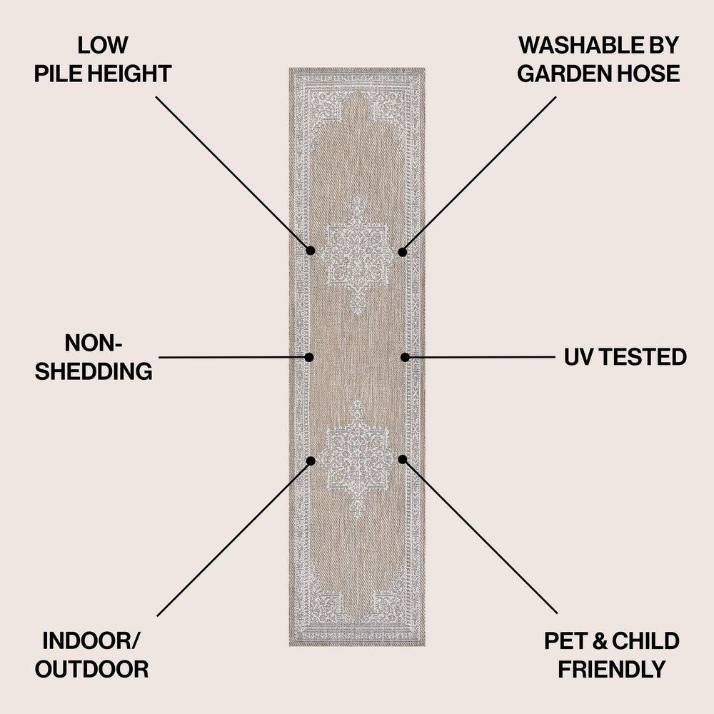 With its vintage-inspired design this rug will add bold pattern to any porch or deck. The casual two-tone scheme updates the traditional medallion pattern. Family-friendly polypropylene is perfect for a dining room, living room, or entry too.