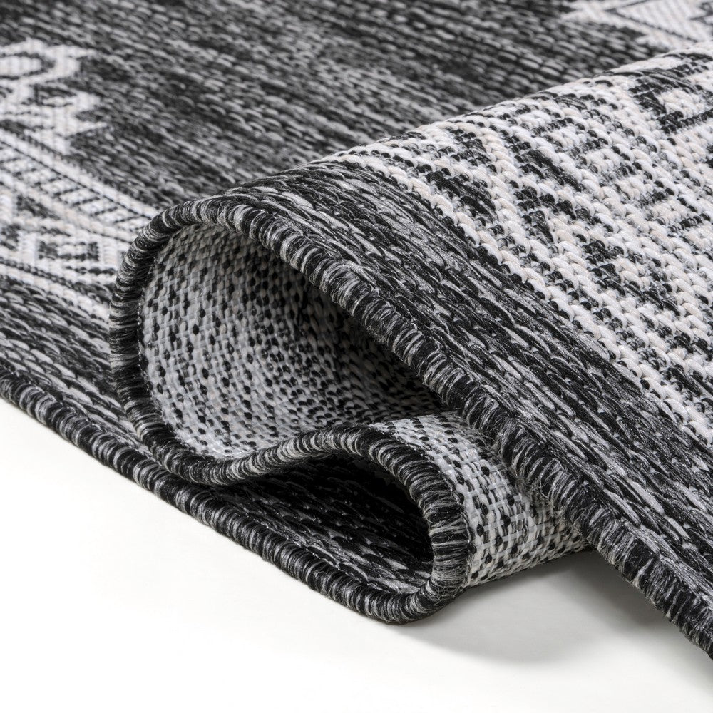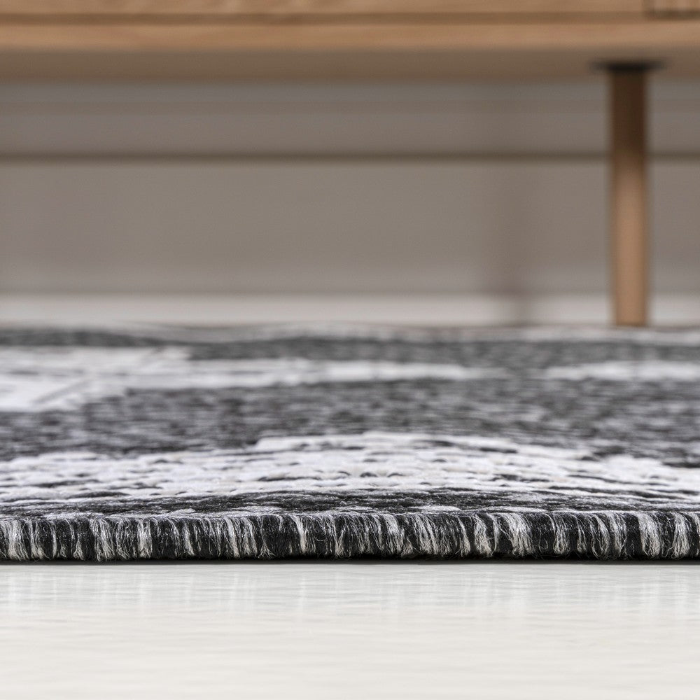- Dark gray and cream shades give this rug its modern Bohemian style
