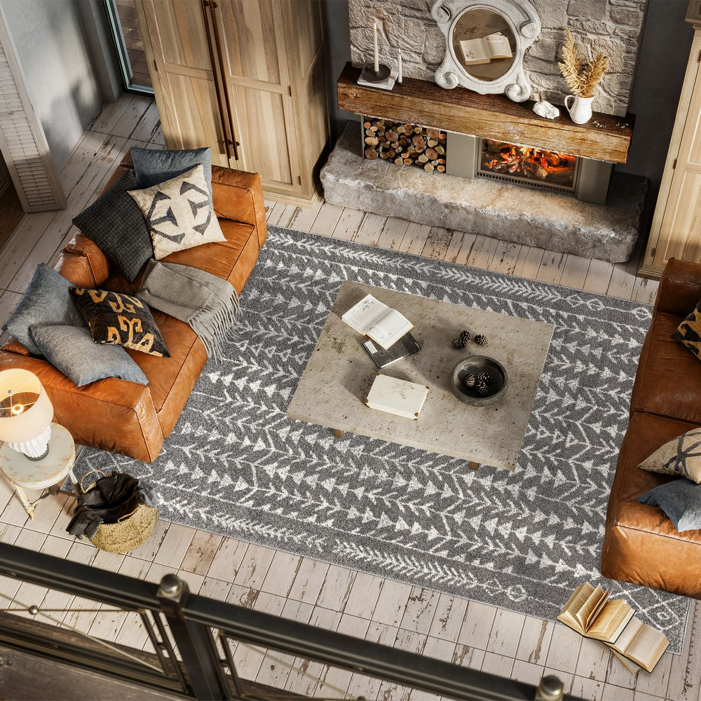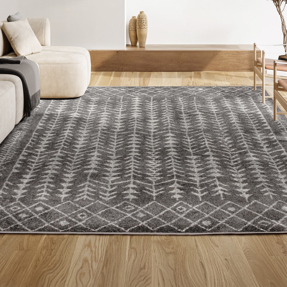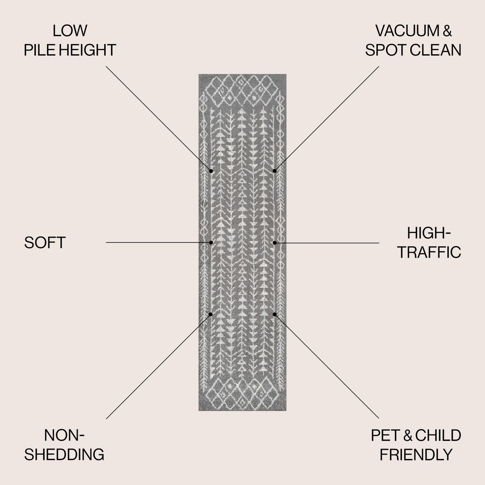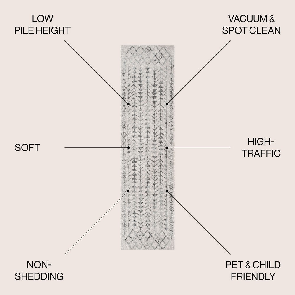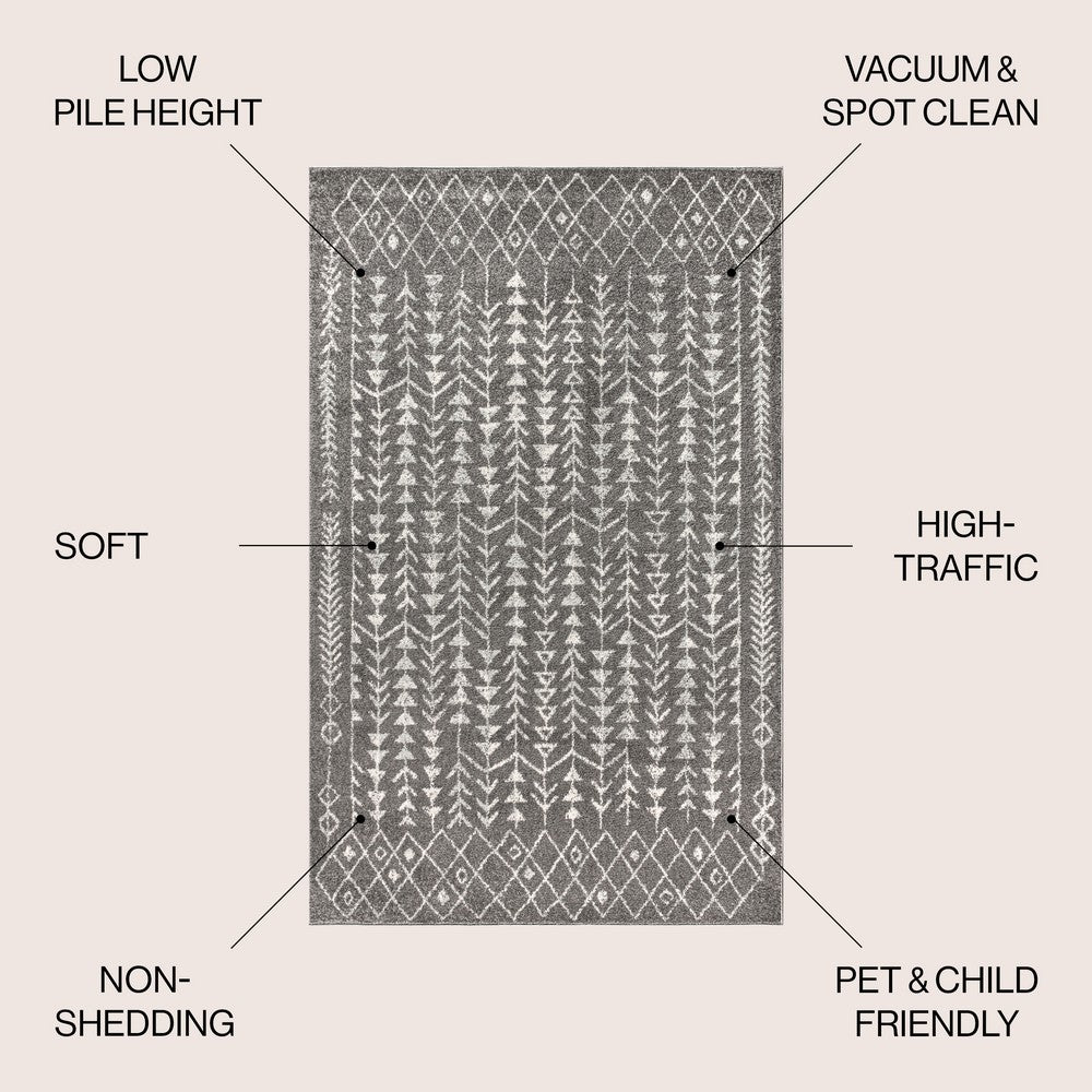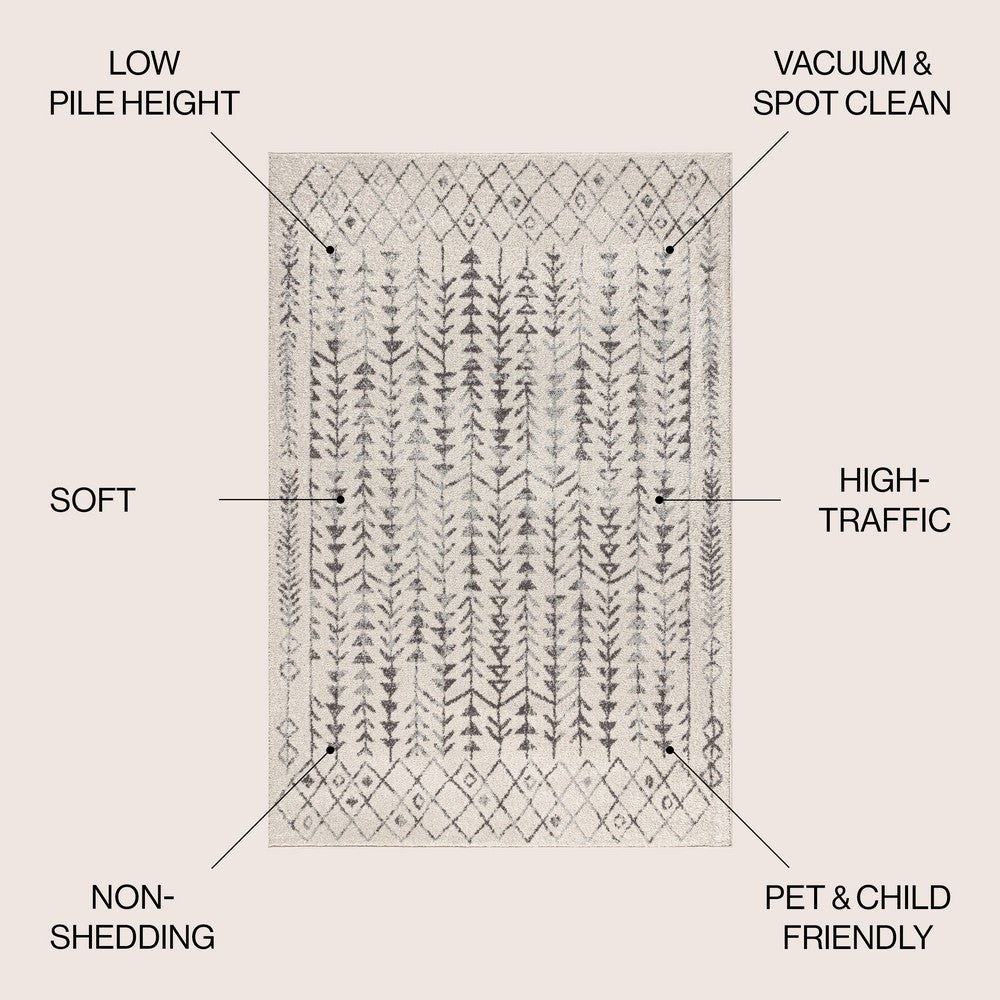 Inspired by vintage Moroccan tribal rugs, our modern version is power-loomed with a short pile. Classic Berber motifs are woven in gray on a field of ivory; the mingled threads recall traditional handwoven rugs. Add some Bohemian style to your home with this easy-care rug.