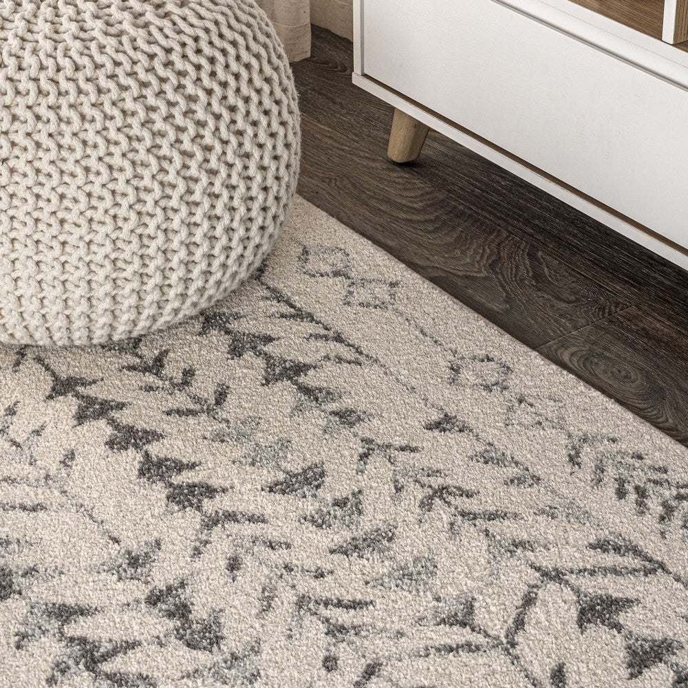 - The gray and ivory color scheme is a modern take on neutral, vintage tribal rugs