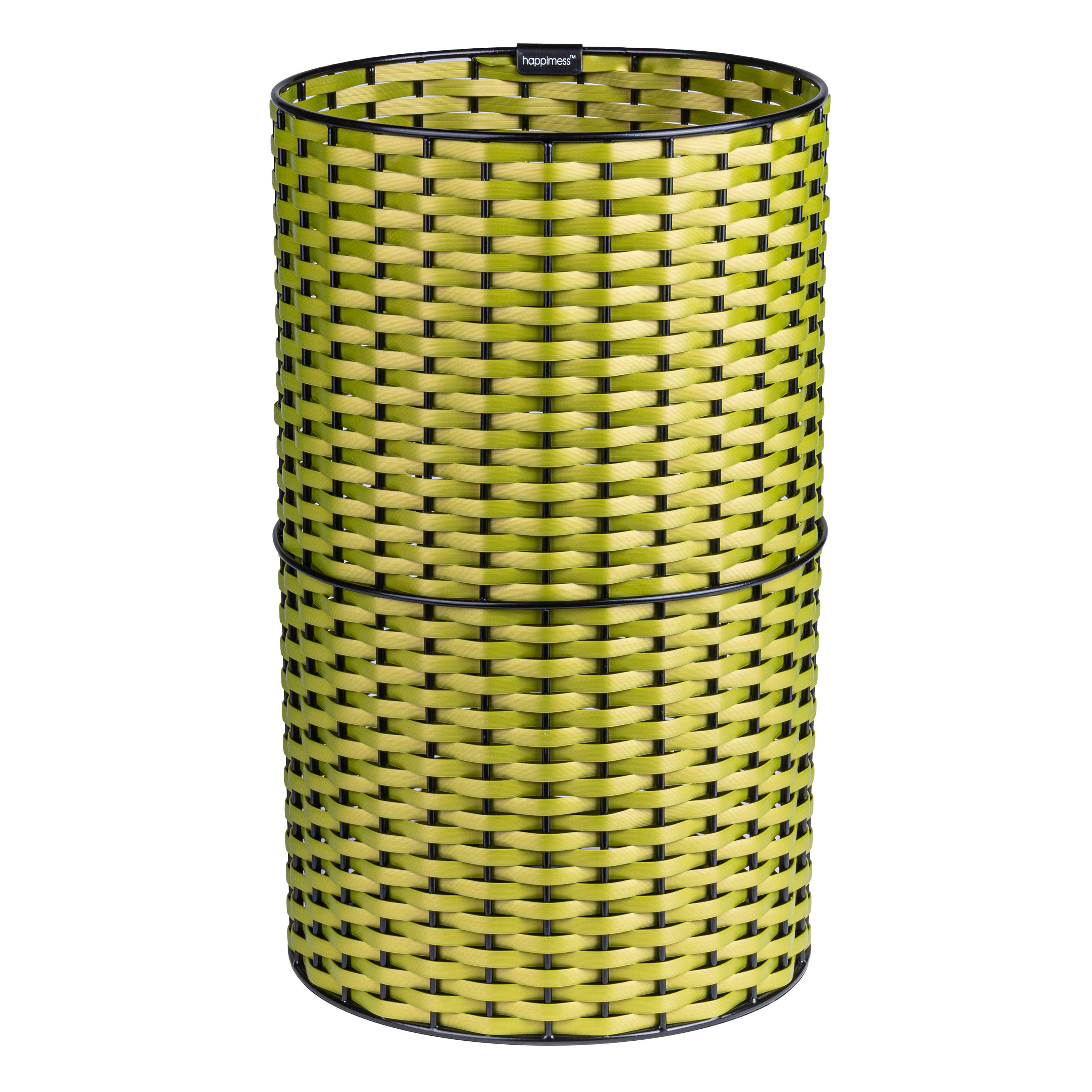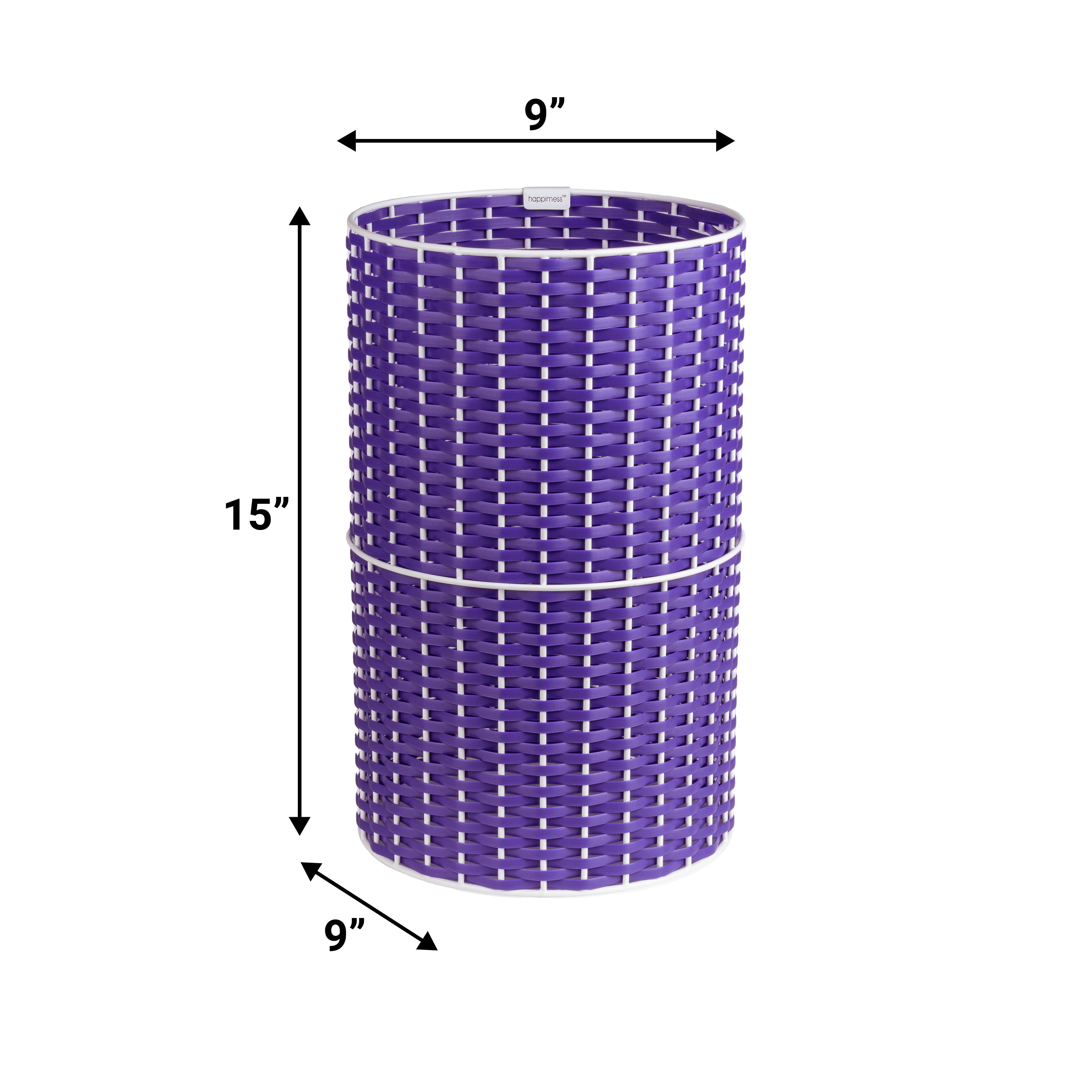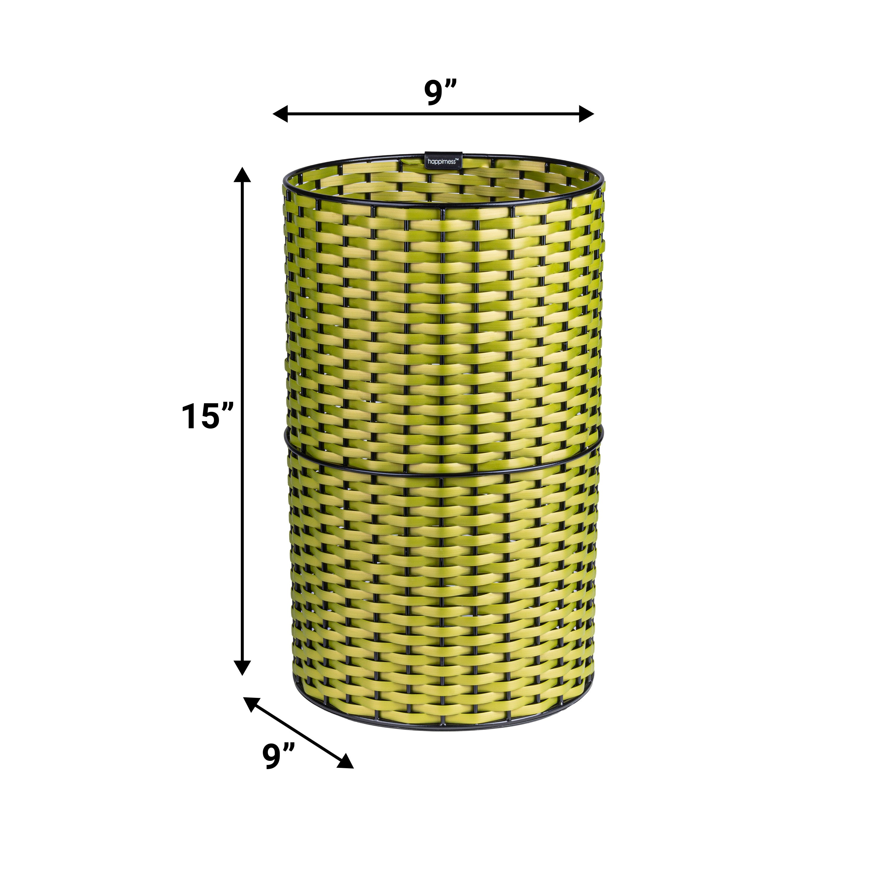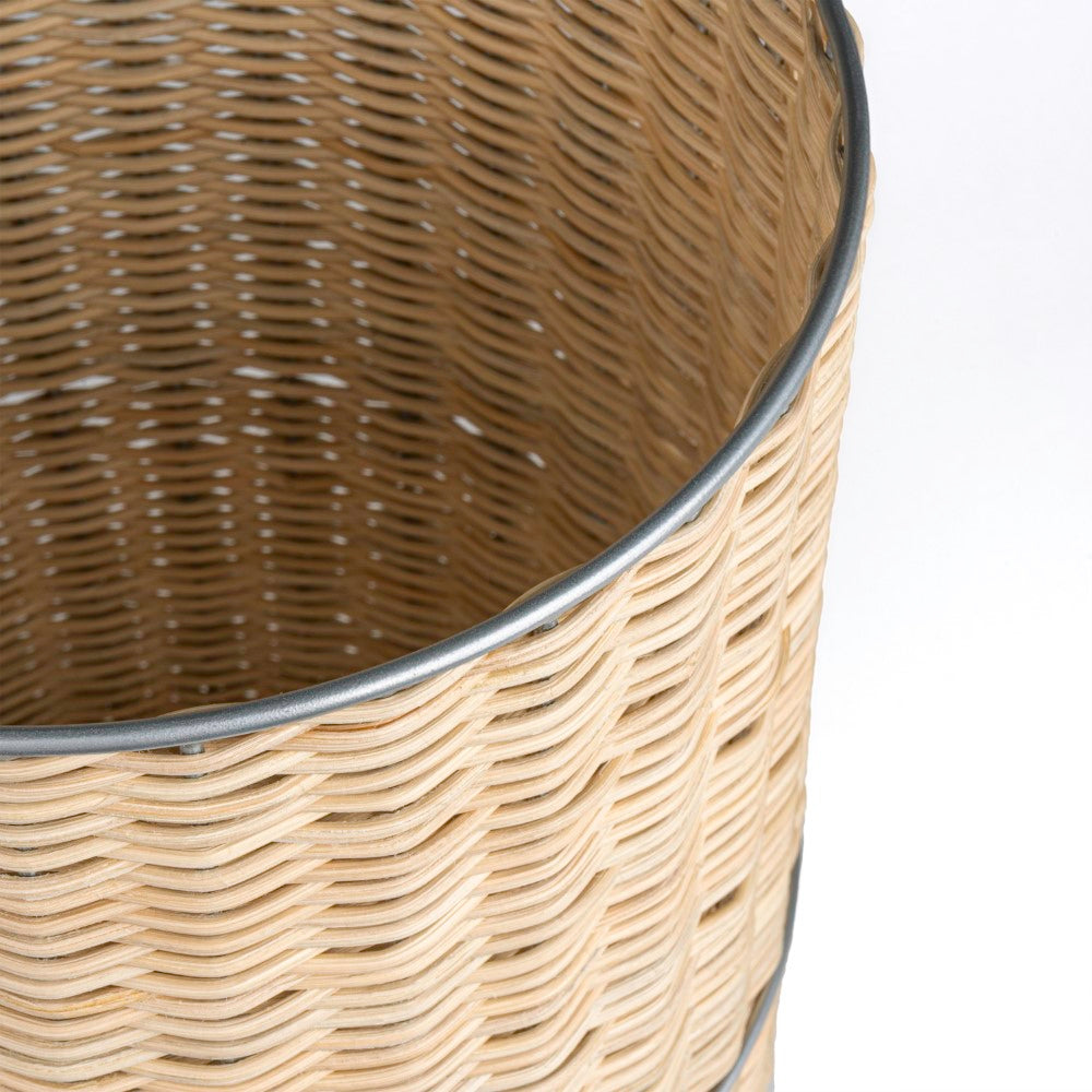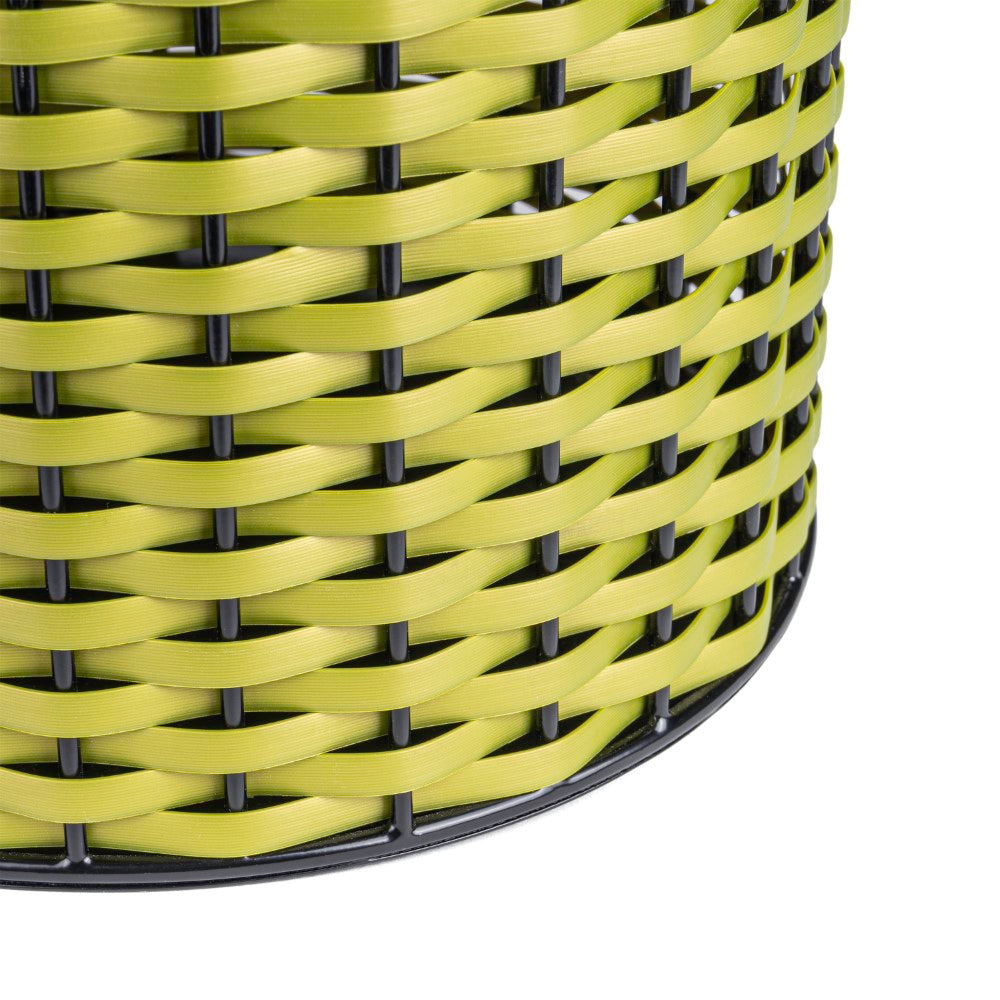 This slim wastebasket is the perfect shape to tuck into a small bathroom, bedroom or office. Durable enough for outdoor use, it's made from synthetic wicker woven onto a steel frame. Add color and texture to your space with the modern look of this versatile trash can.