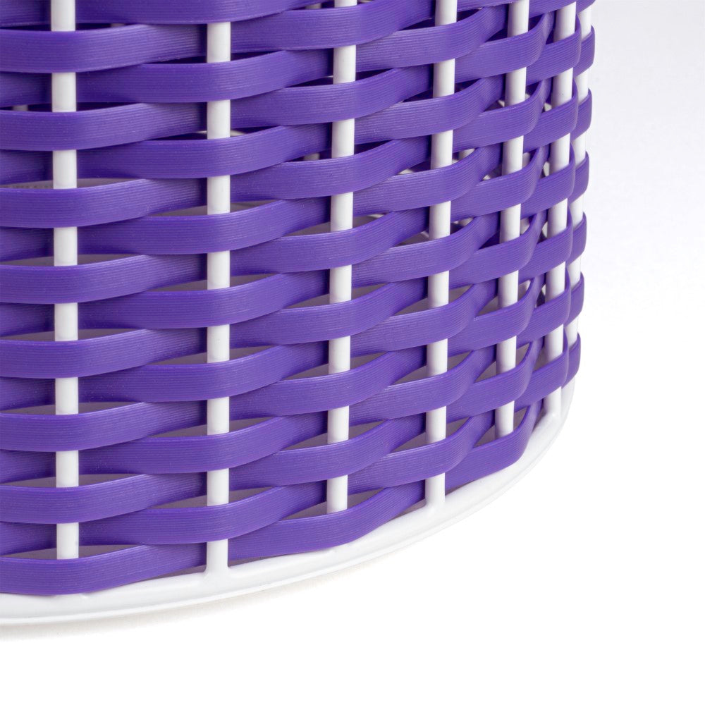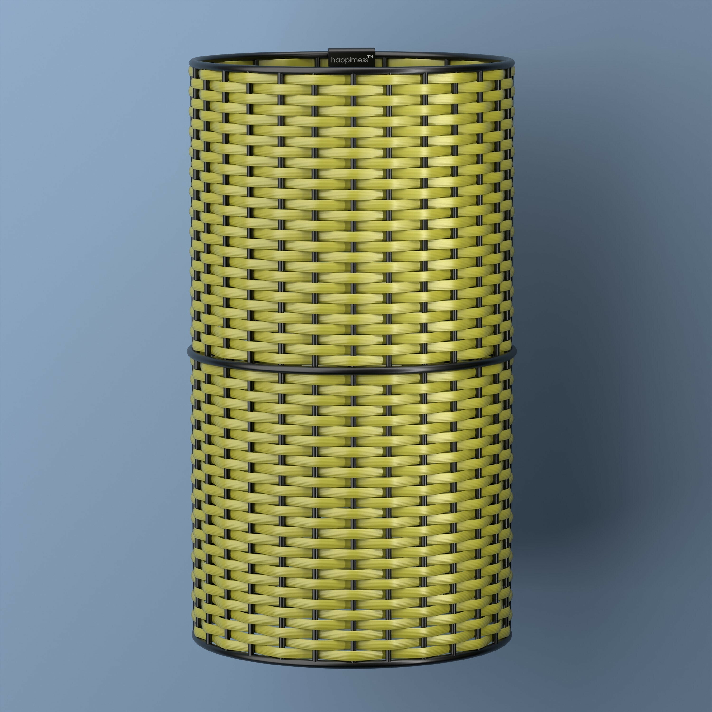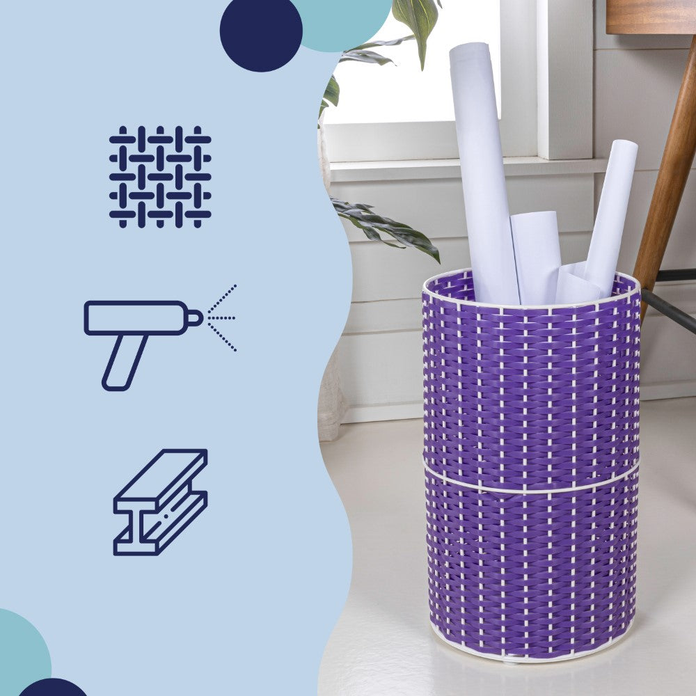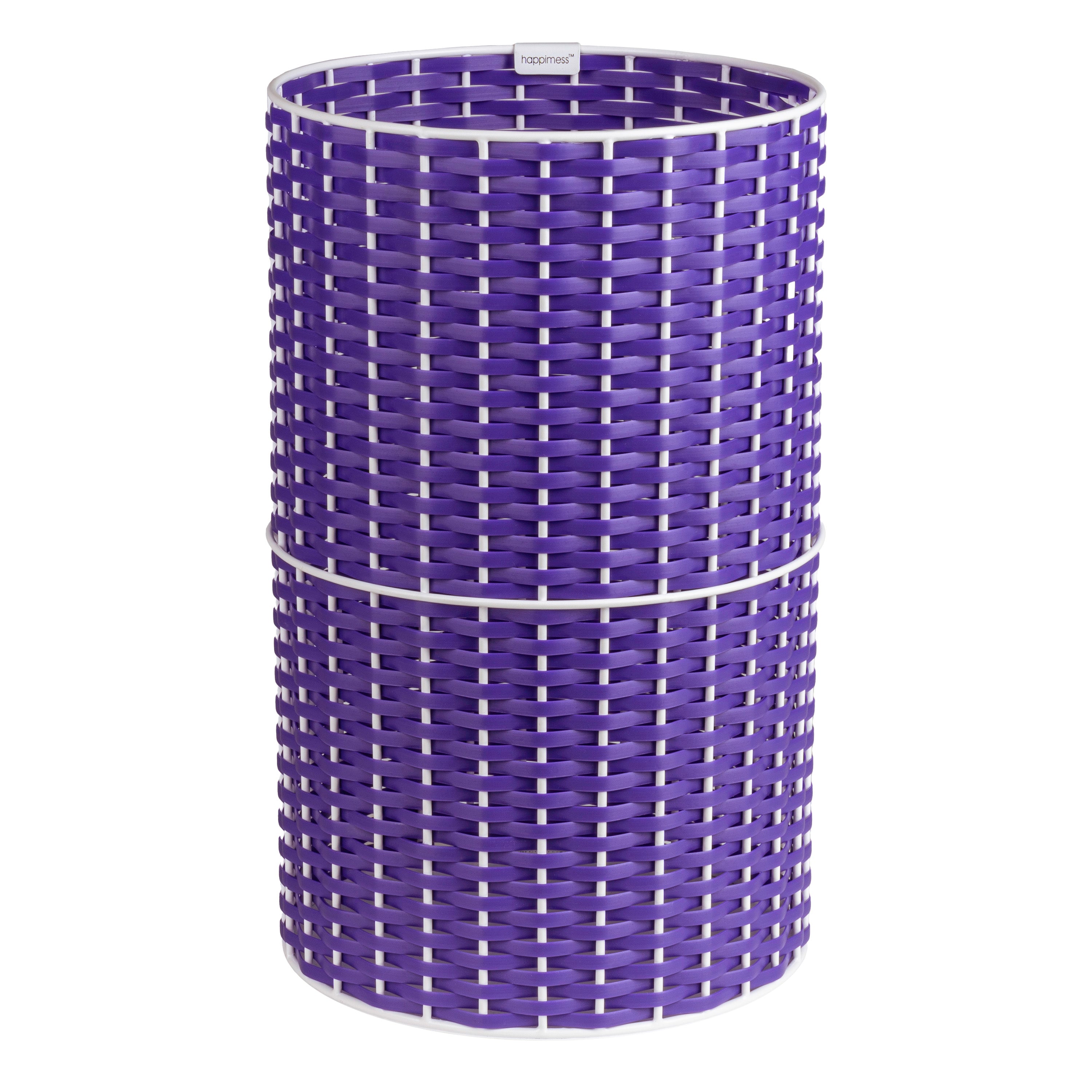 This slim wastebasket is the perfect shape to tuck into a small bathroom, bedroom or office. Durable enough for outdoor use, it's made from synthetic wicker woven onto a steel frame. Add color and texture to your space with the modern look of this versatile trash can.