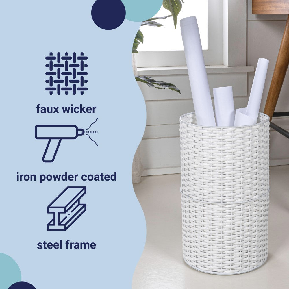 Cecil Modern 4.13-Gallon Faux Wicker Cylinder Waste Basket