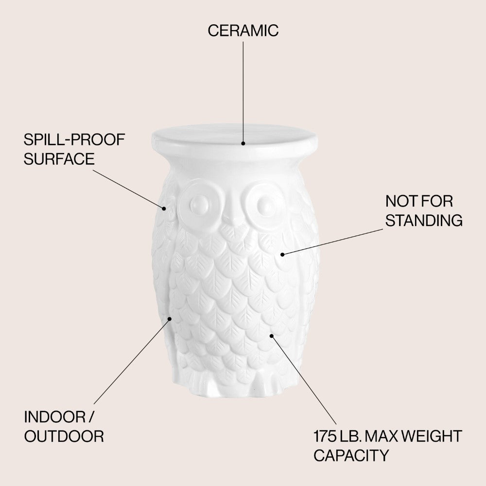Your favorite mid-century ceramic owl stool is back - in a larger size, with a modern, bright white glaze. Use it indoors or out as a cocktail table, garden seat, or plant stand. At almost 18" tall, he's a groovy little table for the living room, bedroom, bathroom, or on the porch.