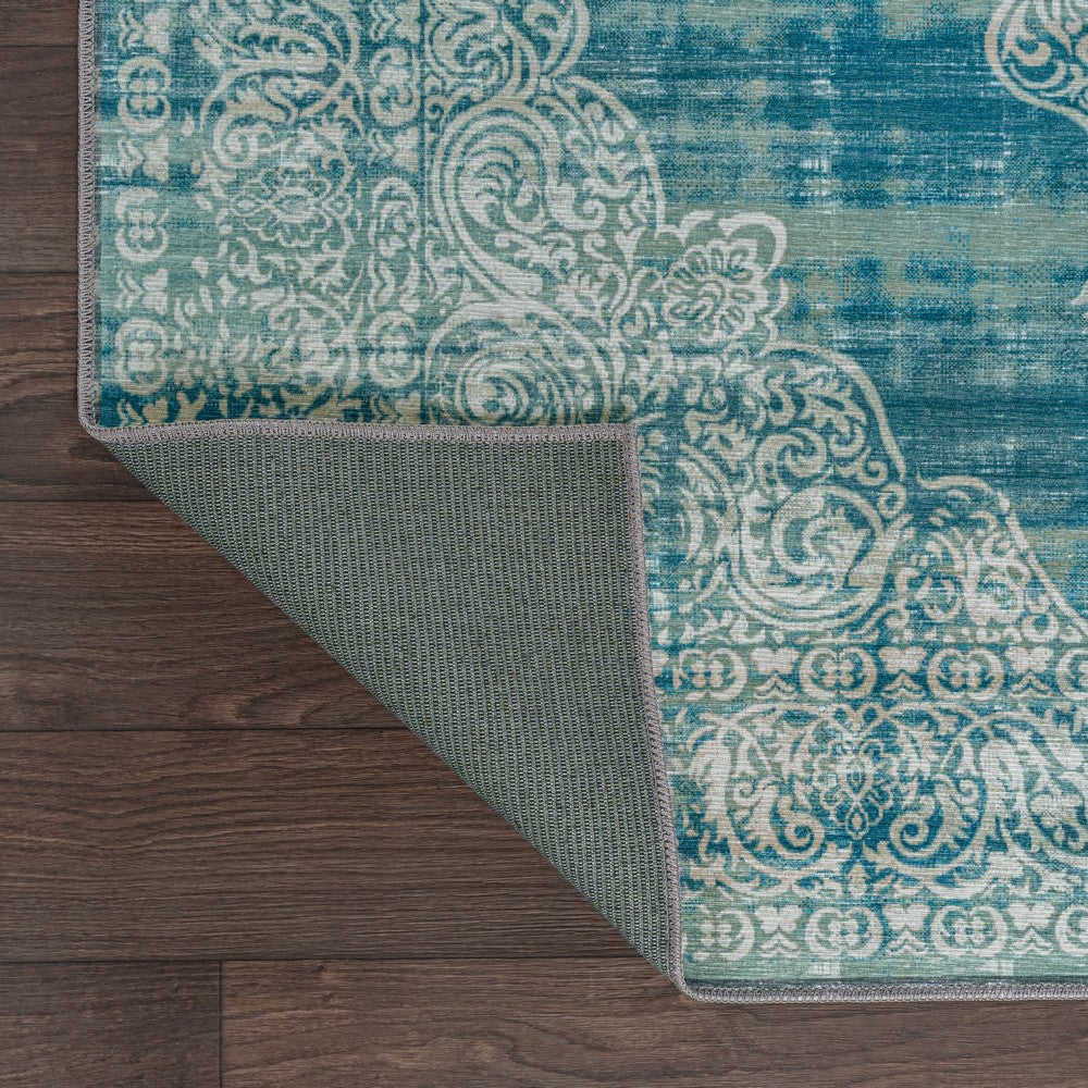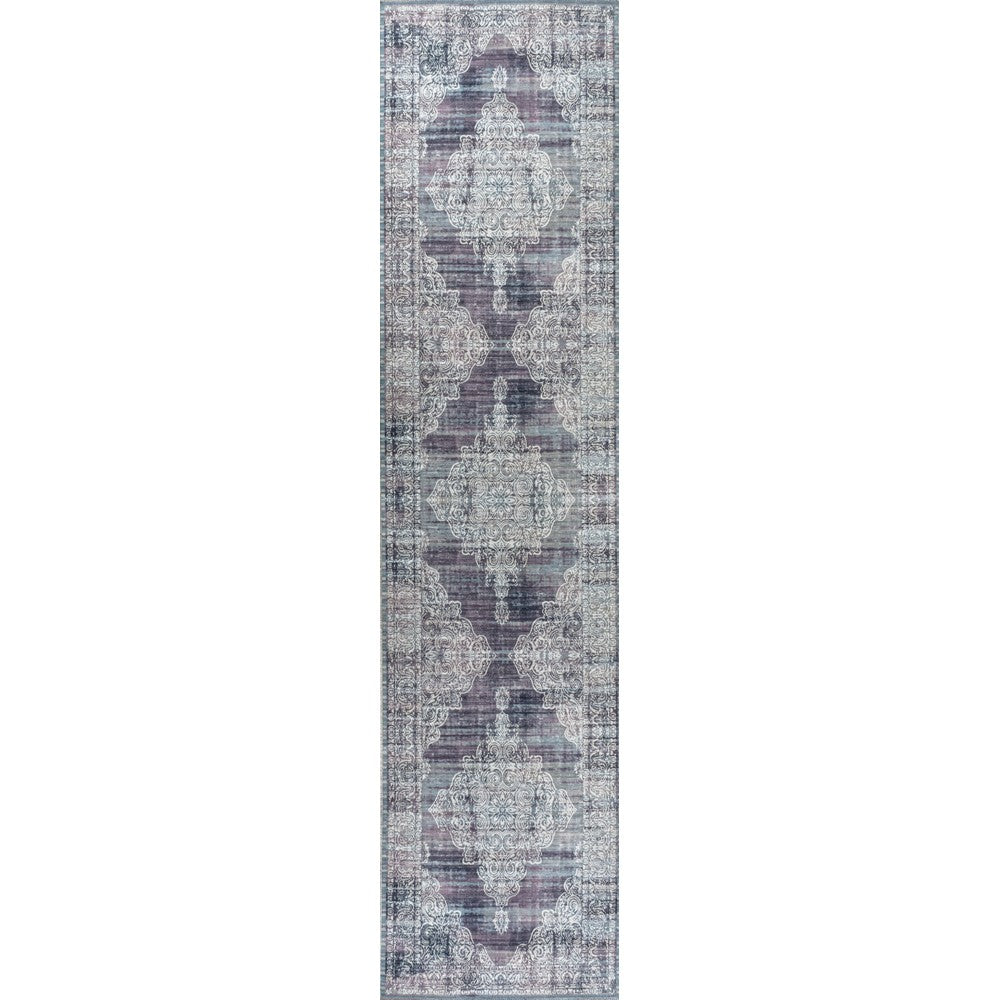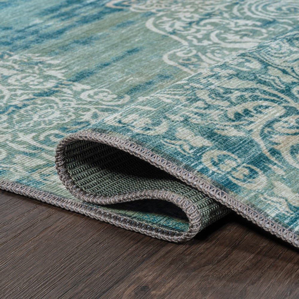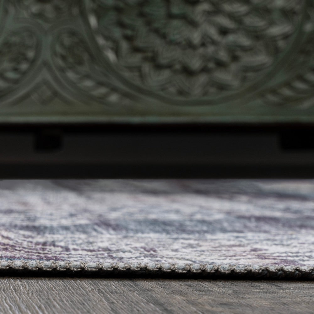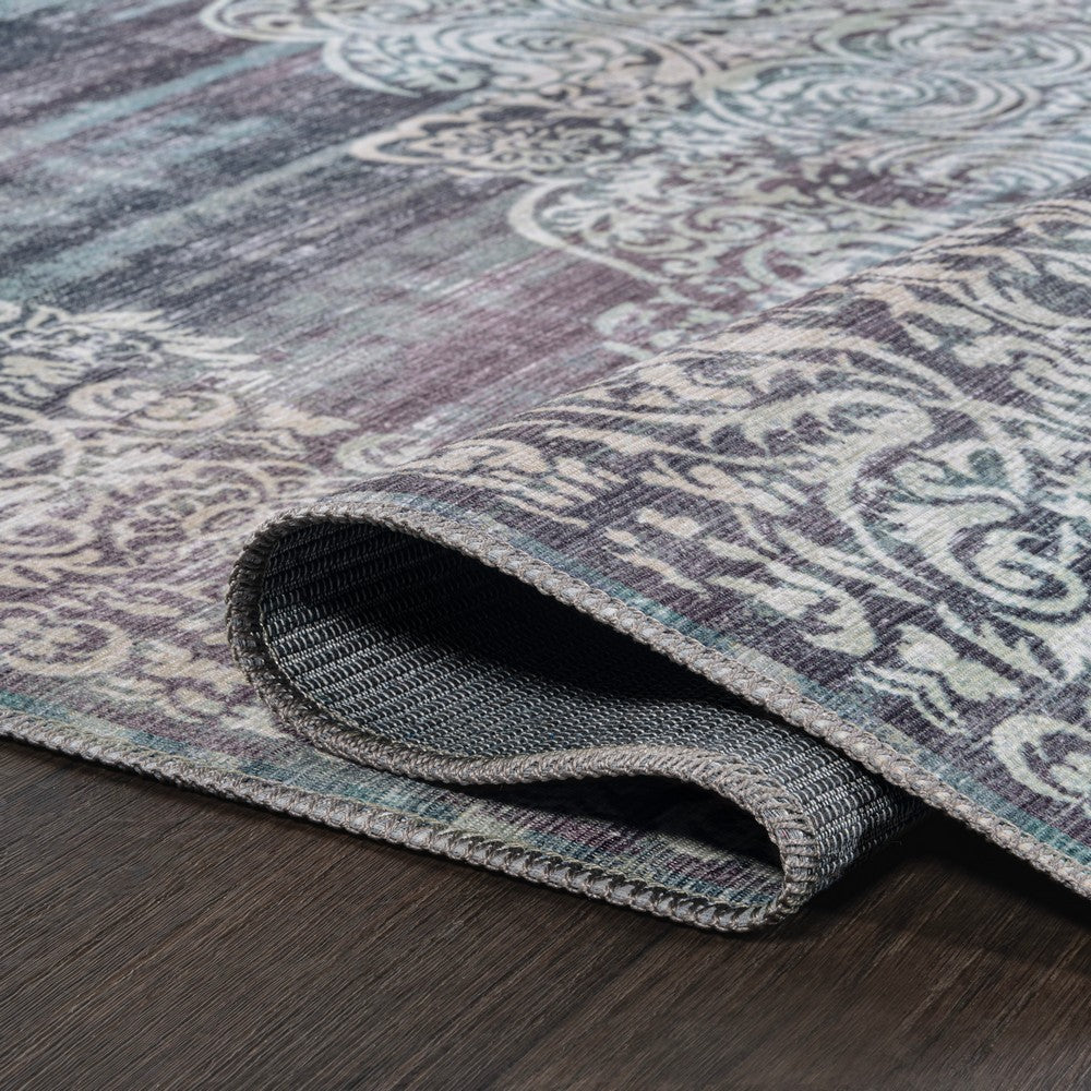 An ornate border and medallion design give this rug a French Country cottage look; but the faded color palette has a Bohemian vibe. Updated colors in a mingled weave create a vintage, distressed look. Use this romantic rug in a family room, bedroom, living room, dining room, entry, or porch; the busy pattern is kid and pet friendly.