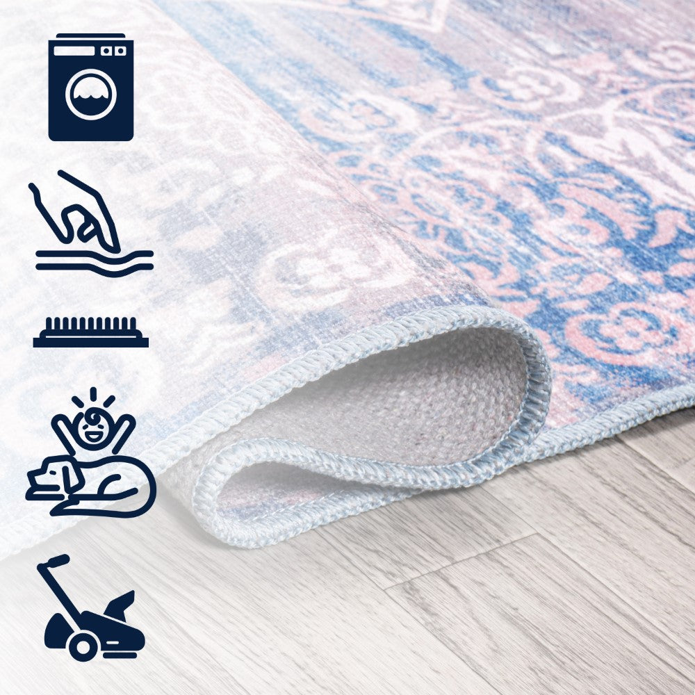 - Shades of blue and cream give this classic rug its Bohemian cottage look