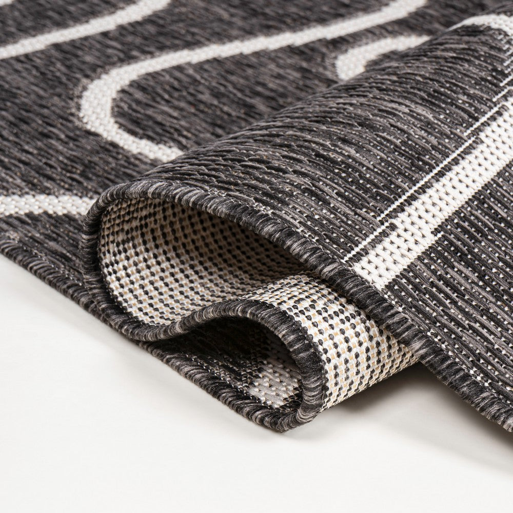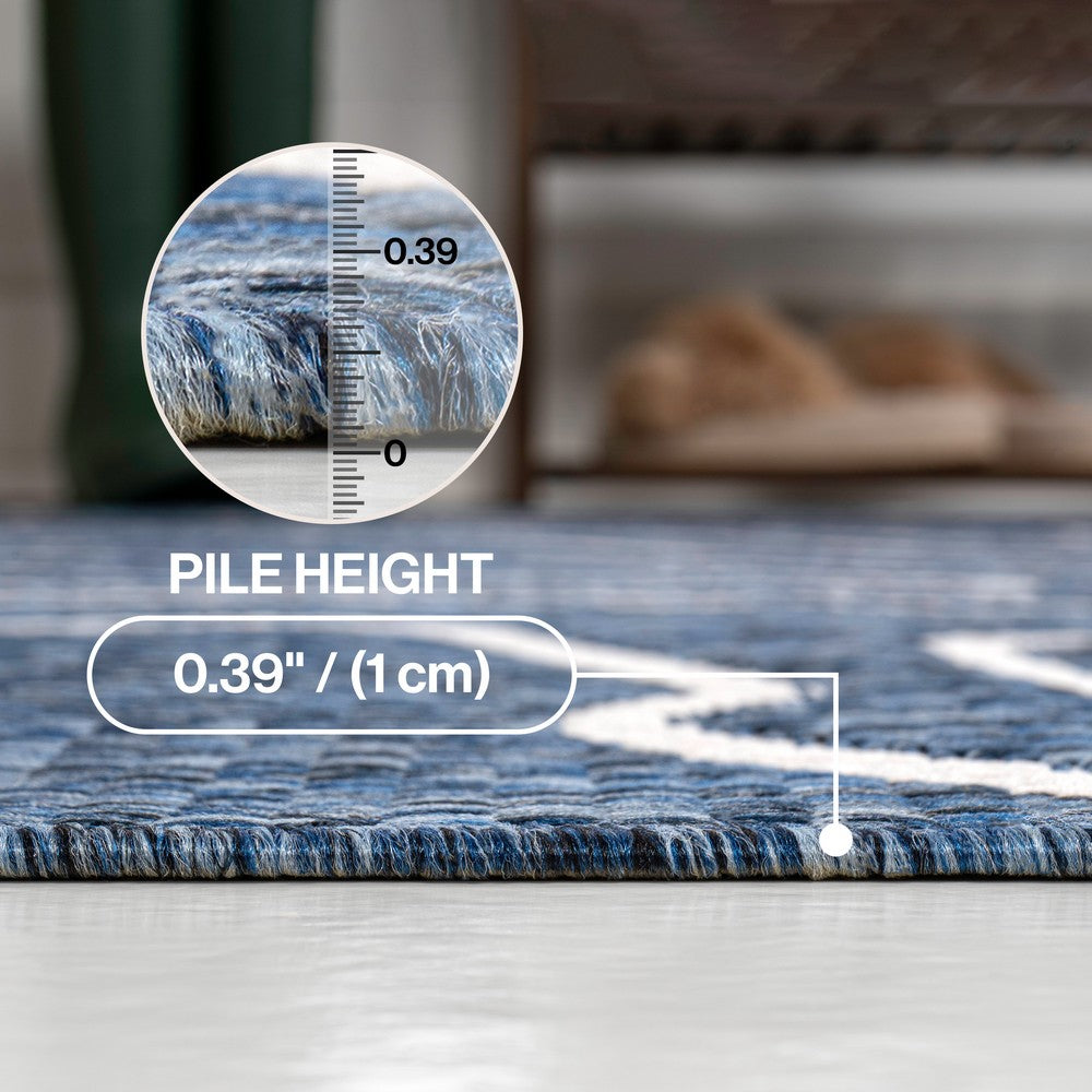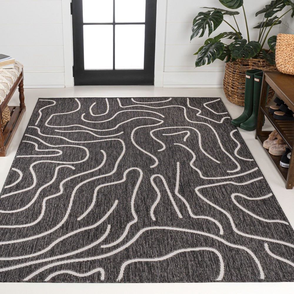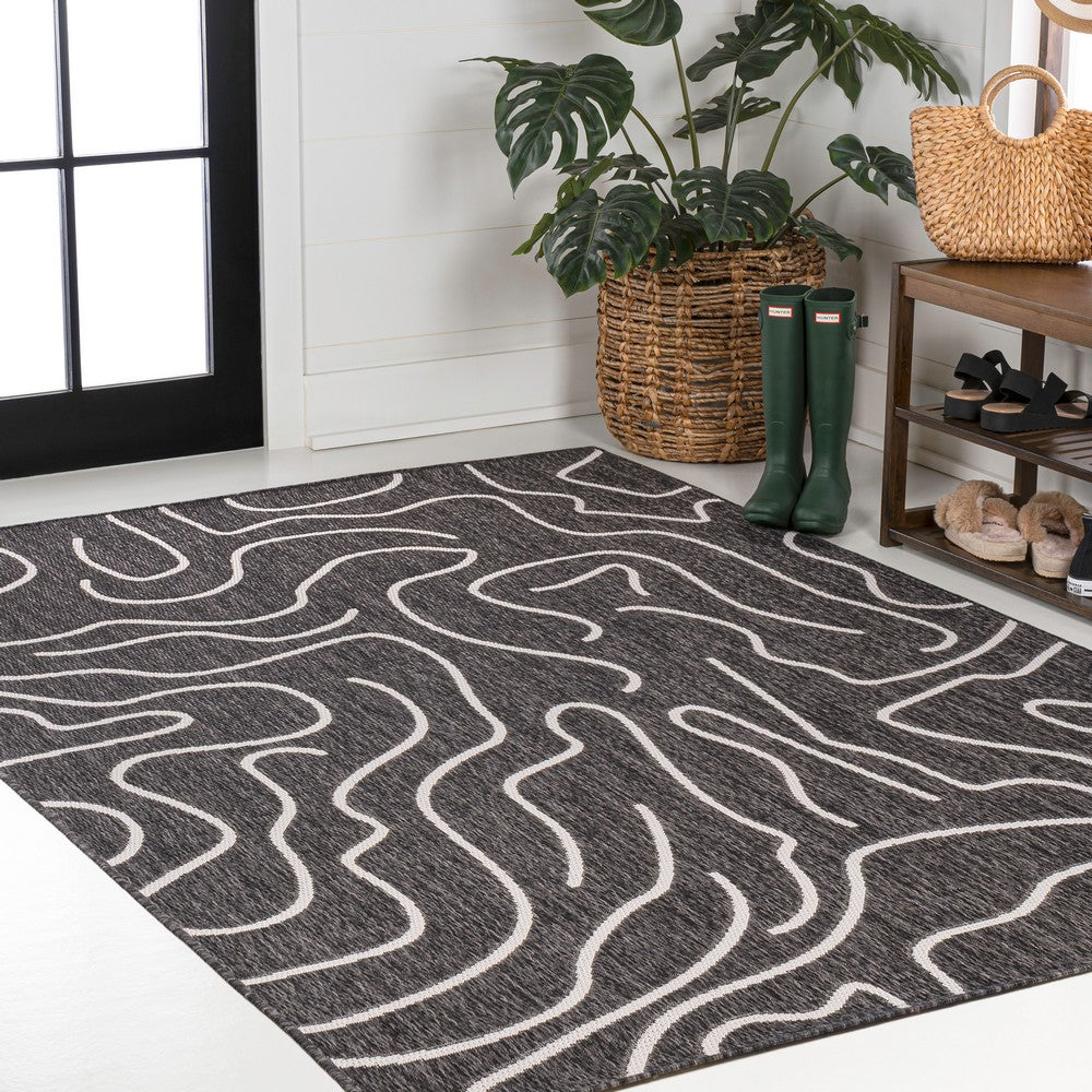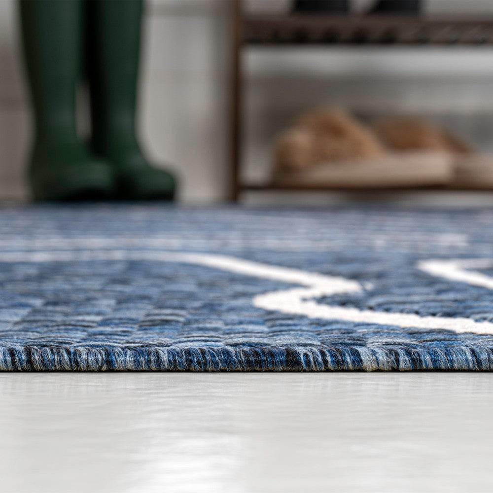 This rug's modern look is inspired by coastal style and Scandinavian design. It's made from durable synthetic fibers woven into an abstract, organic pattern. Use this stylish rug outdoors, in the bedroom, living room, or dining room.