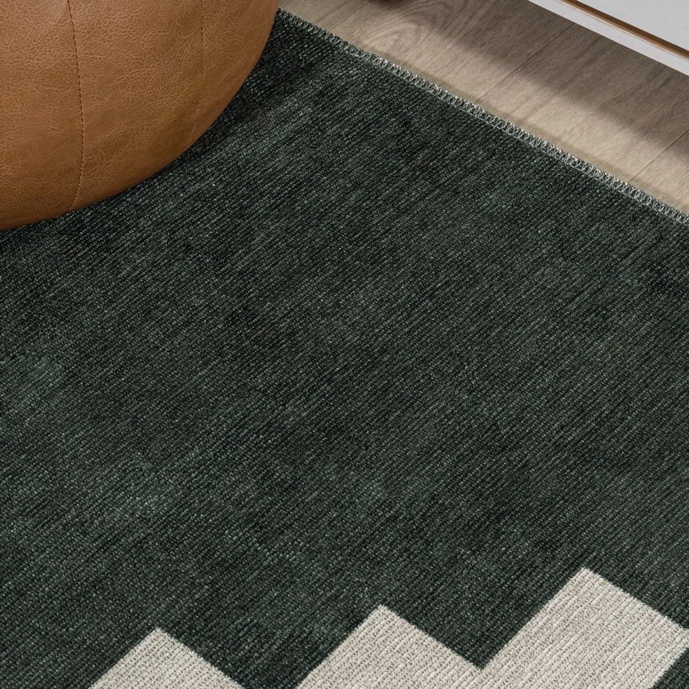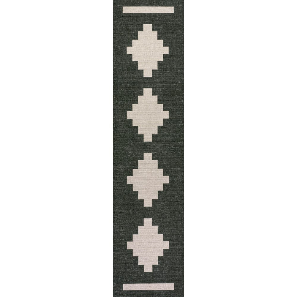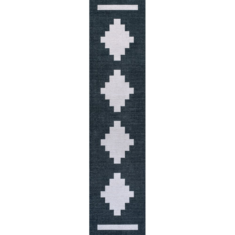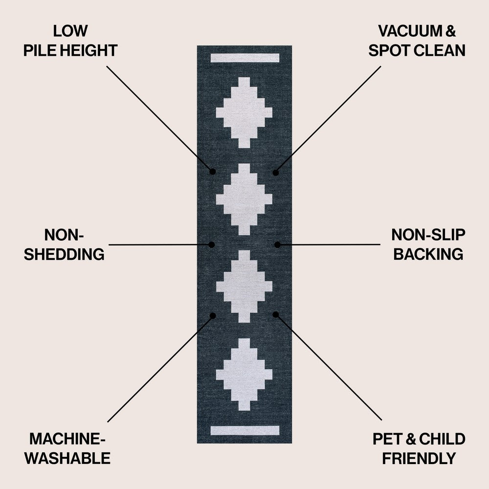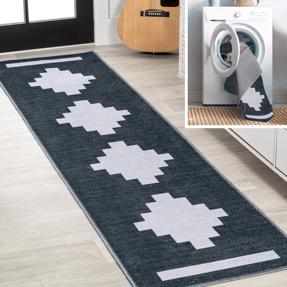 Inspired by moroccan designs, our machine washable geometric rug has minimalist simplicity. The double medallion pattern is woven in a modern, two-tone color palette. Add graphic punch to your living room, dining room, entry, or bedroom with this easy-care rug.