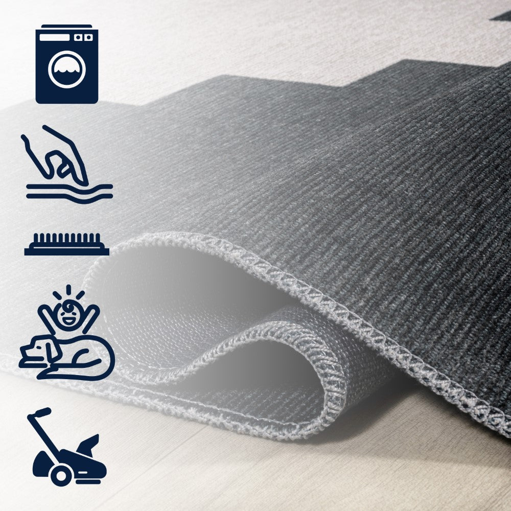 - Machine washable rug in easy-care polypropylene - just use mild, non-bleach detergent; hang to dry