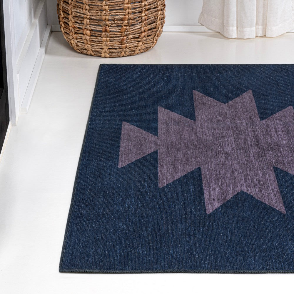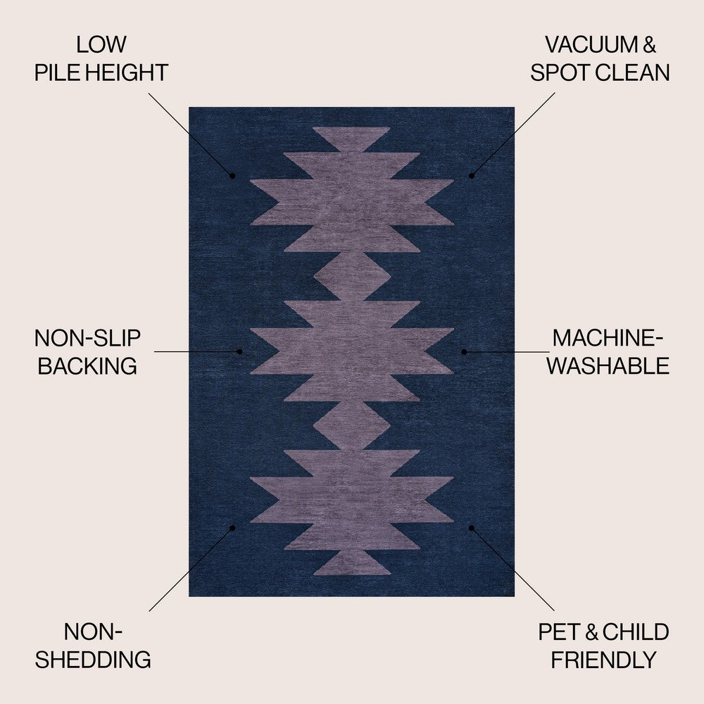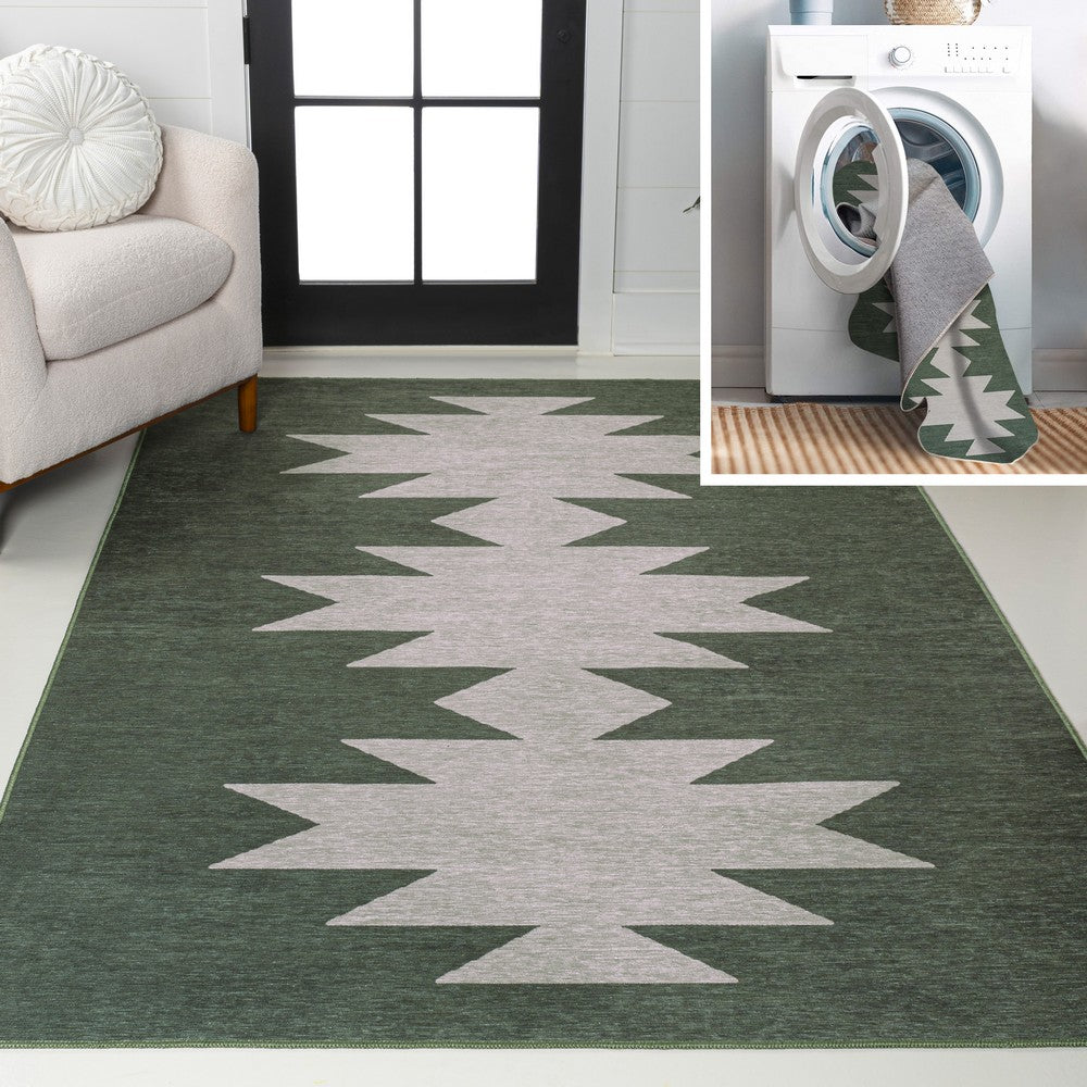Our machine washable geometric rug has minimalist simplicity. The triple medallion pattern is woven in a modern, two-tone color palette. Add graphic punch to your living room, dining room, entry, or bedroom with this easy-care rug.