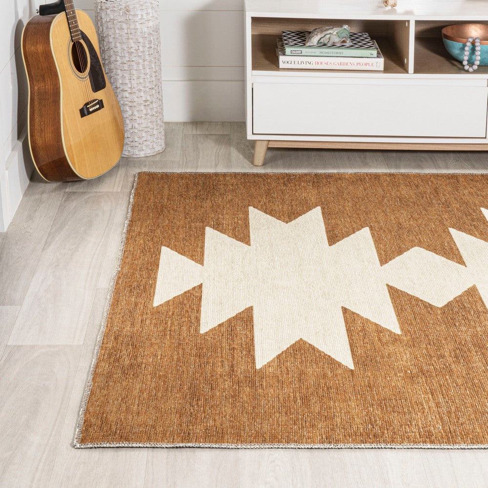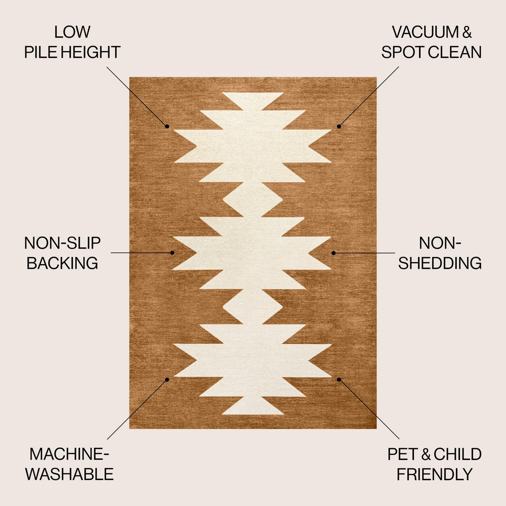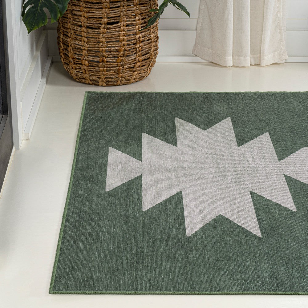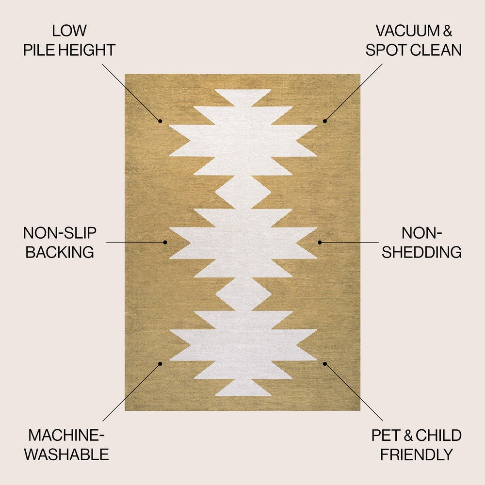 Our machine washable geometric rug has minimalist simplicity. The triple medallion pattern is woven in a modern, two-tone color palette. Add graphic punch to your living room, dining room, entry, or bedroom with this easy-care rug.