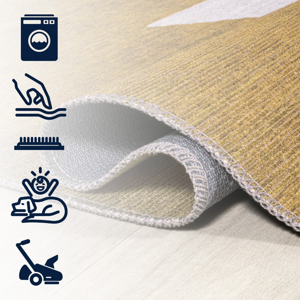 - Machine washable rug in easy-care polypropylene - just use mild, non-bleach detergent; hang to dry