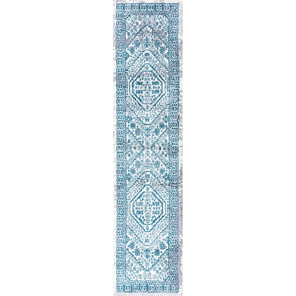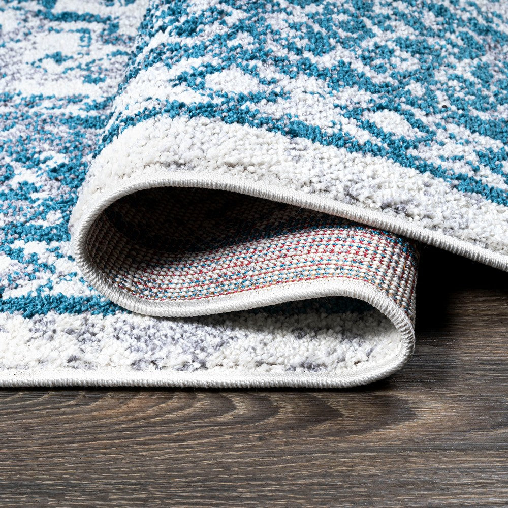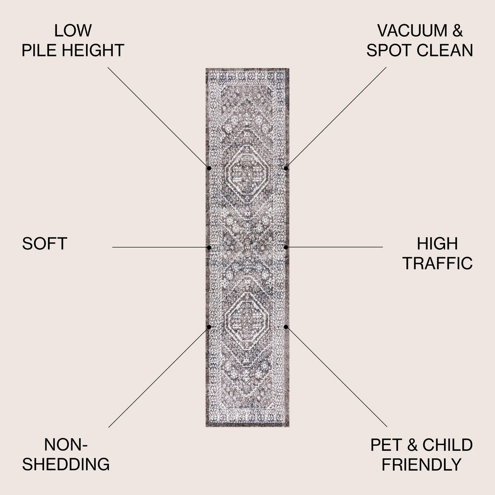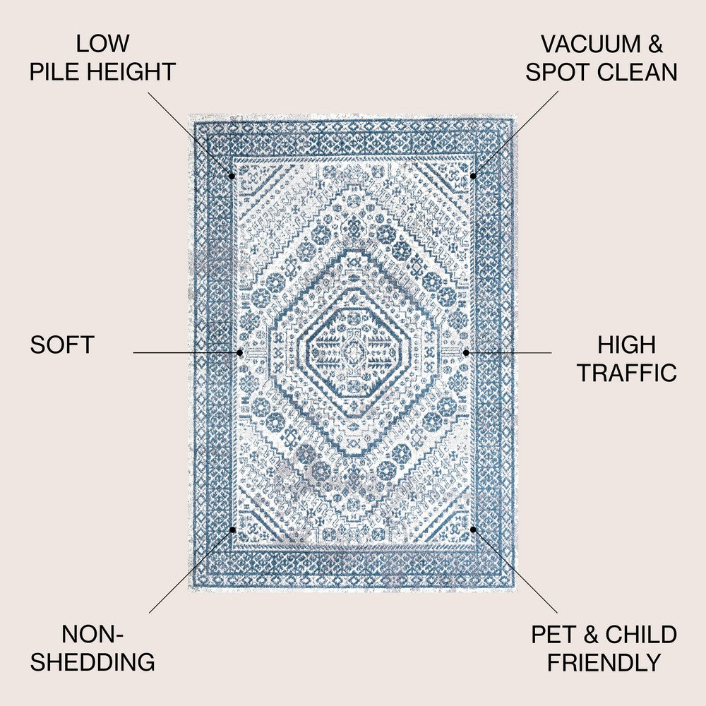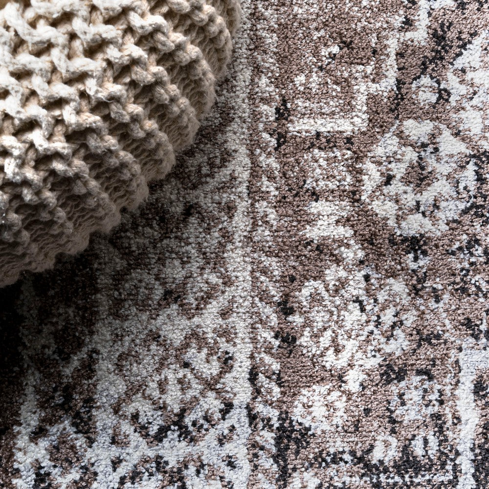 This ornate medallion rug has a geometric pattern that adds modern Bohemian style to a living room, bedroom, entry or kitchen. Varied tones of red mingled with a gray and ivory background give this rug a hand-woven, vintage vibe. The busy allover pattern is pet-friendly and great for kids too.