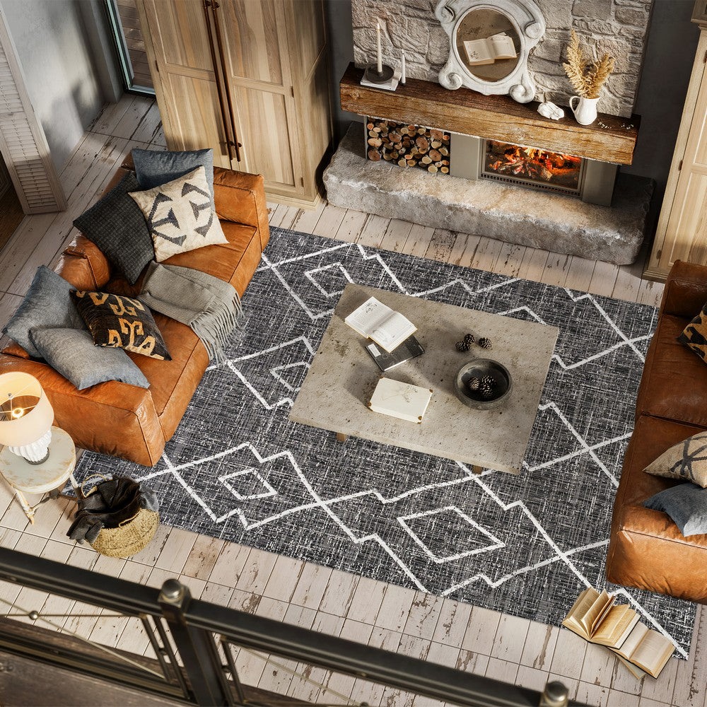 Moroccan influences abound in the geometric design of our tribal-inspired rug. The traditional diamond trellis pattern has the handwoven look popular in mid-century modern interiors. Add graphic impact to a modern living room, dining room, bedroom, kitchen or entry, and create your Boho-chic story with this easy-care rug.