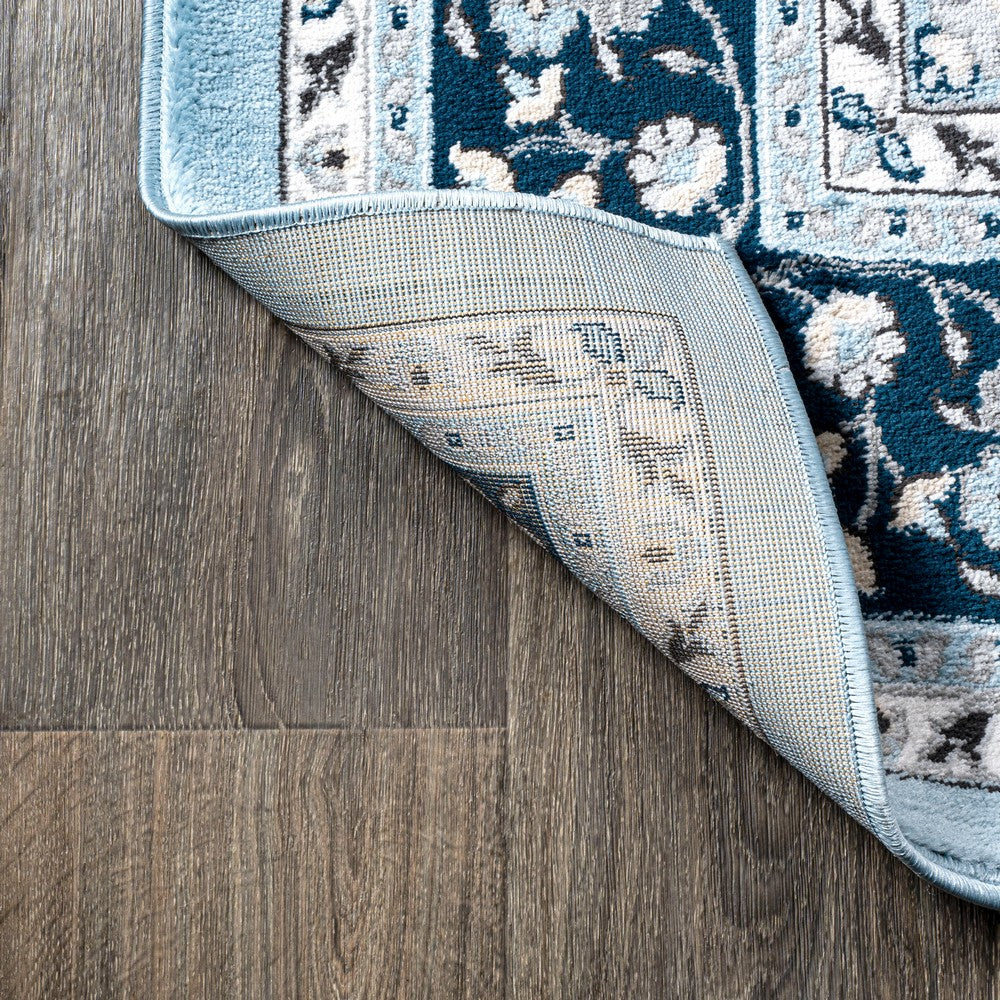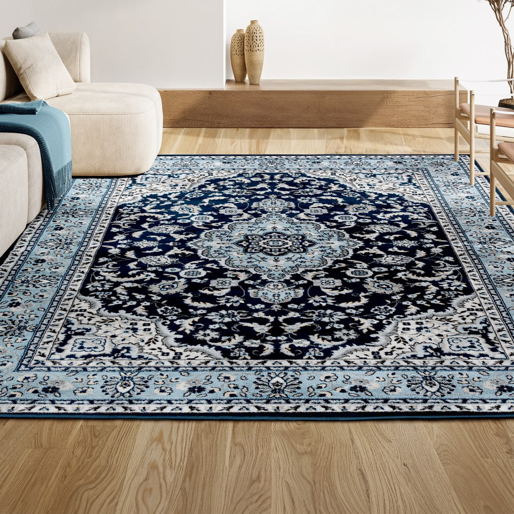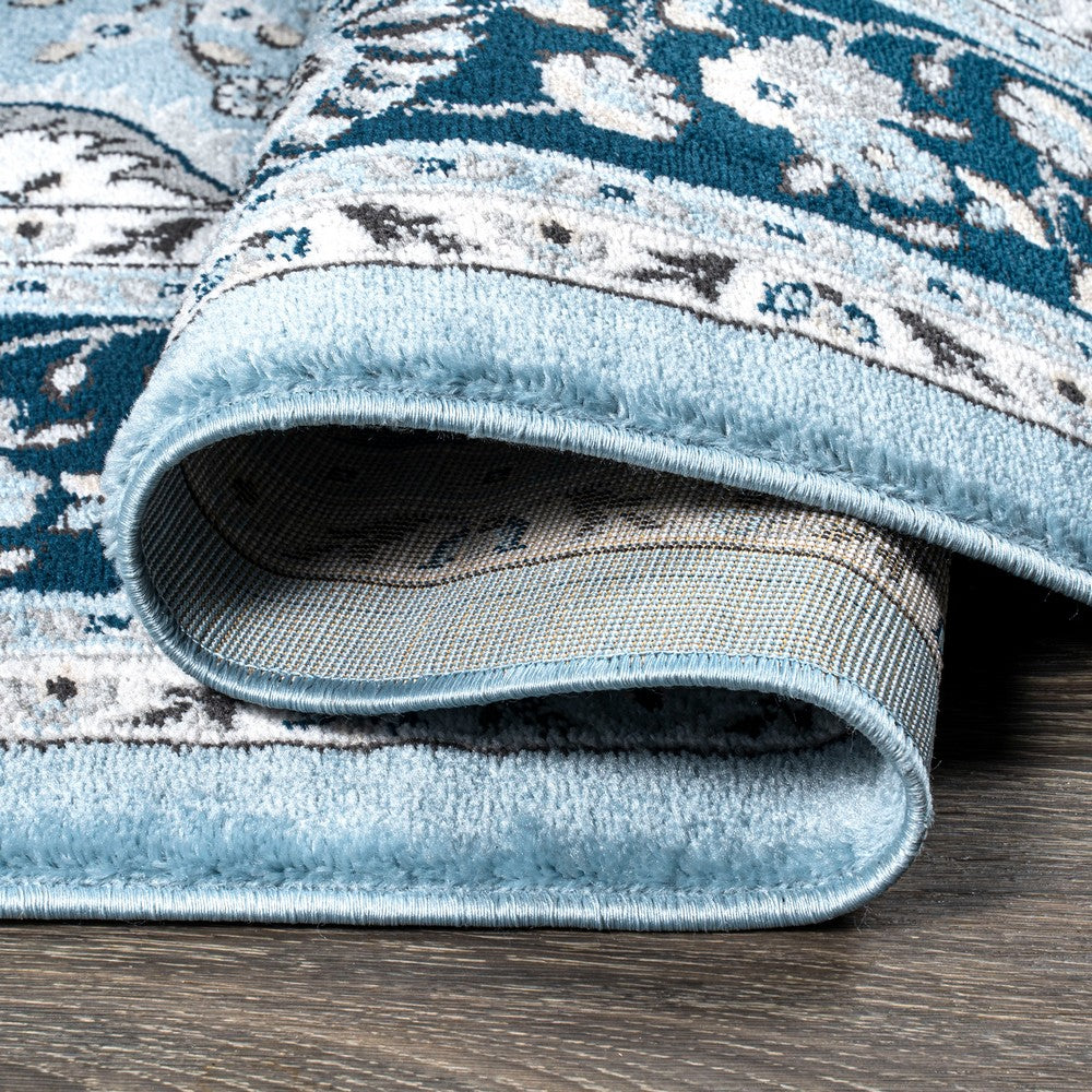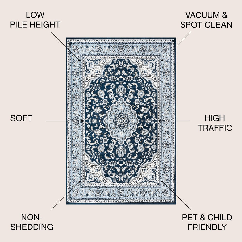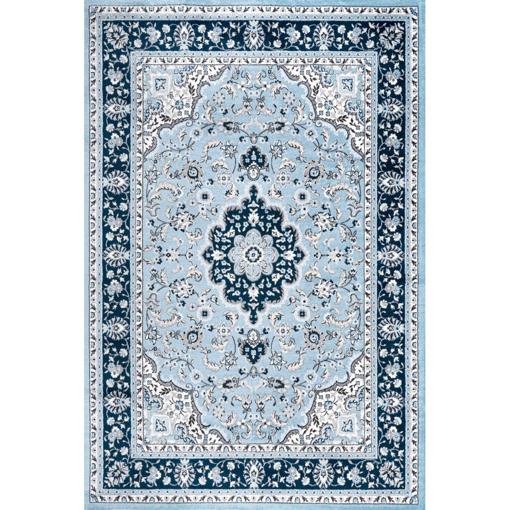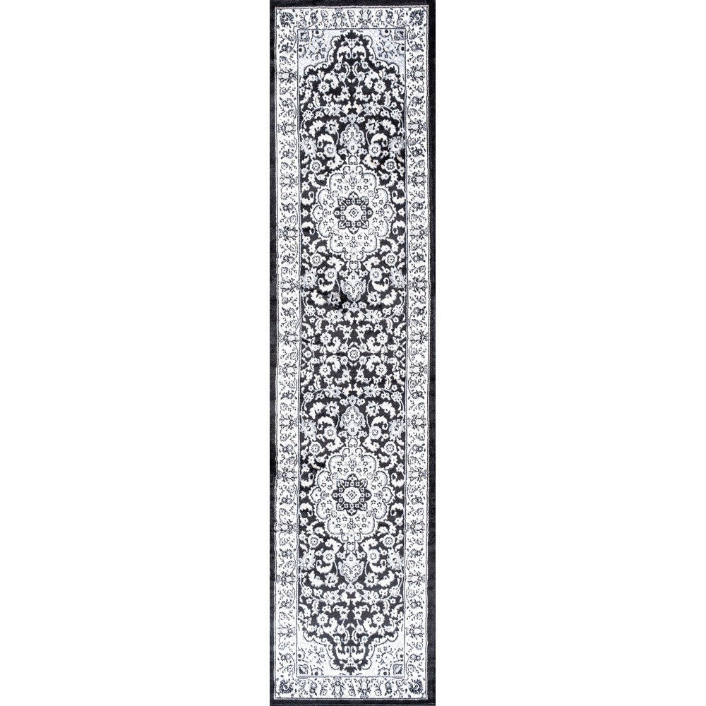 A classic medallion design gets a modern makeover in our Persian-style gray rug. The ornate pattern features a central field with traditional leaves and flowers, and an ivory palmette border. Add a neutral touch to your living room, family room, bedroom, dining room, or home office with this durable, family-friendly rug.