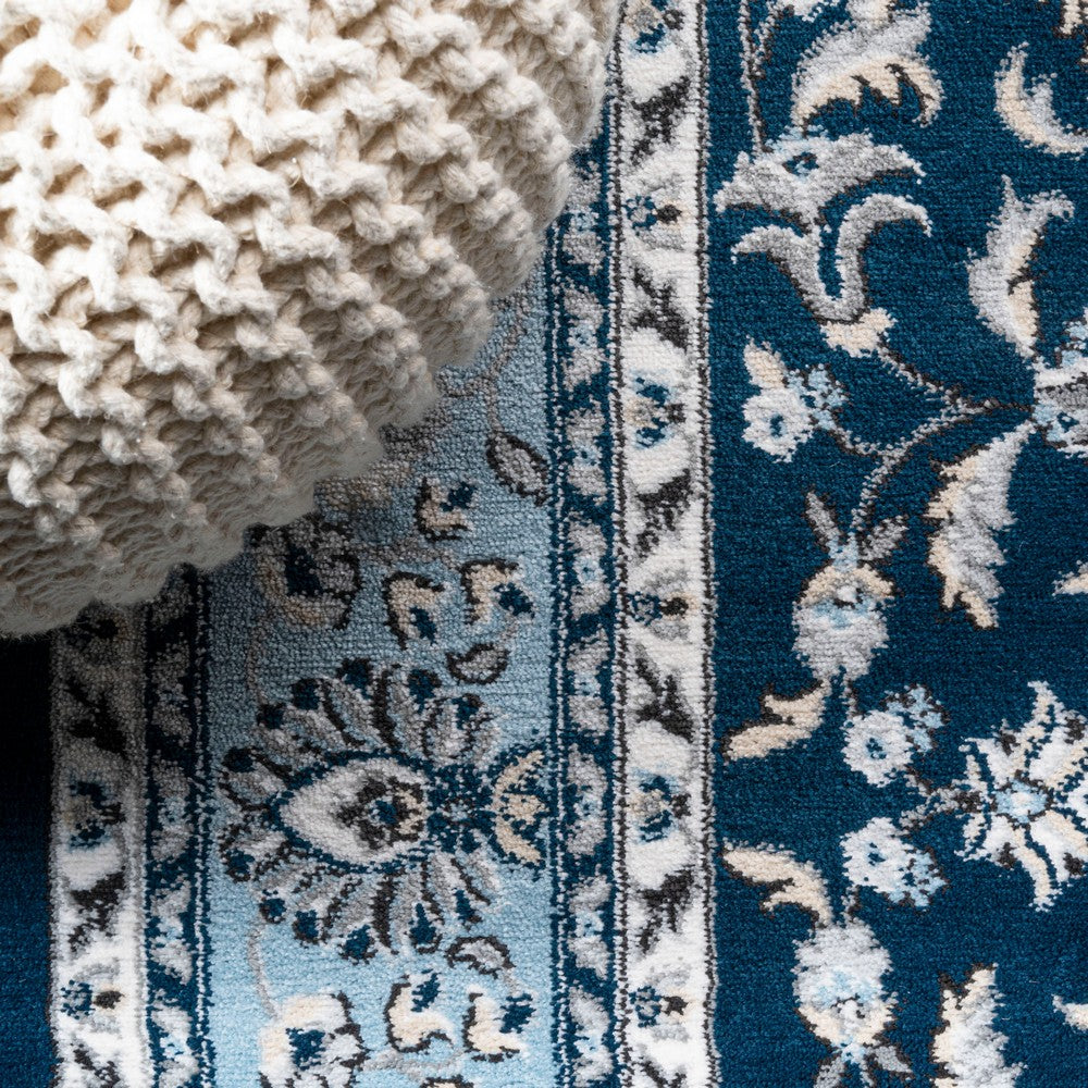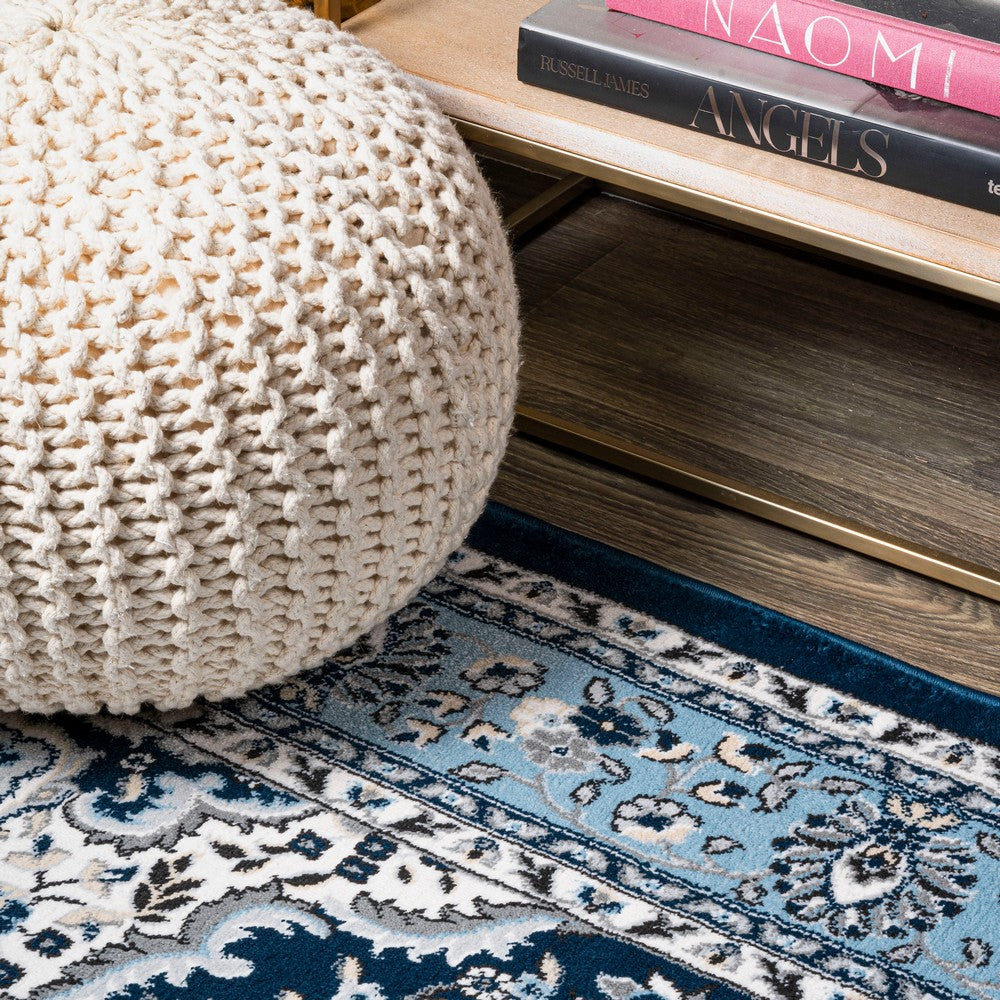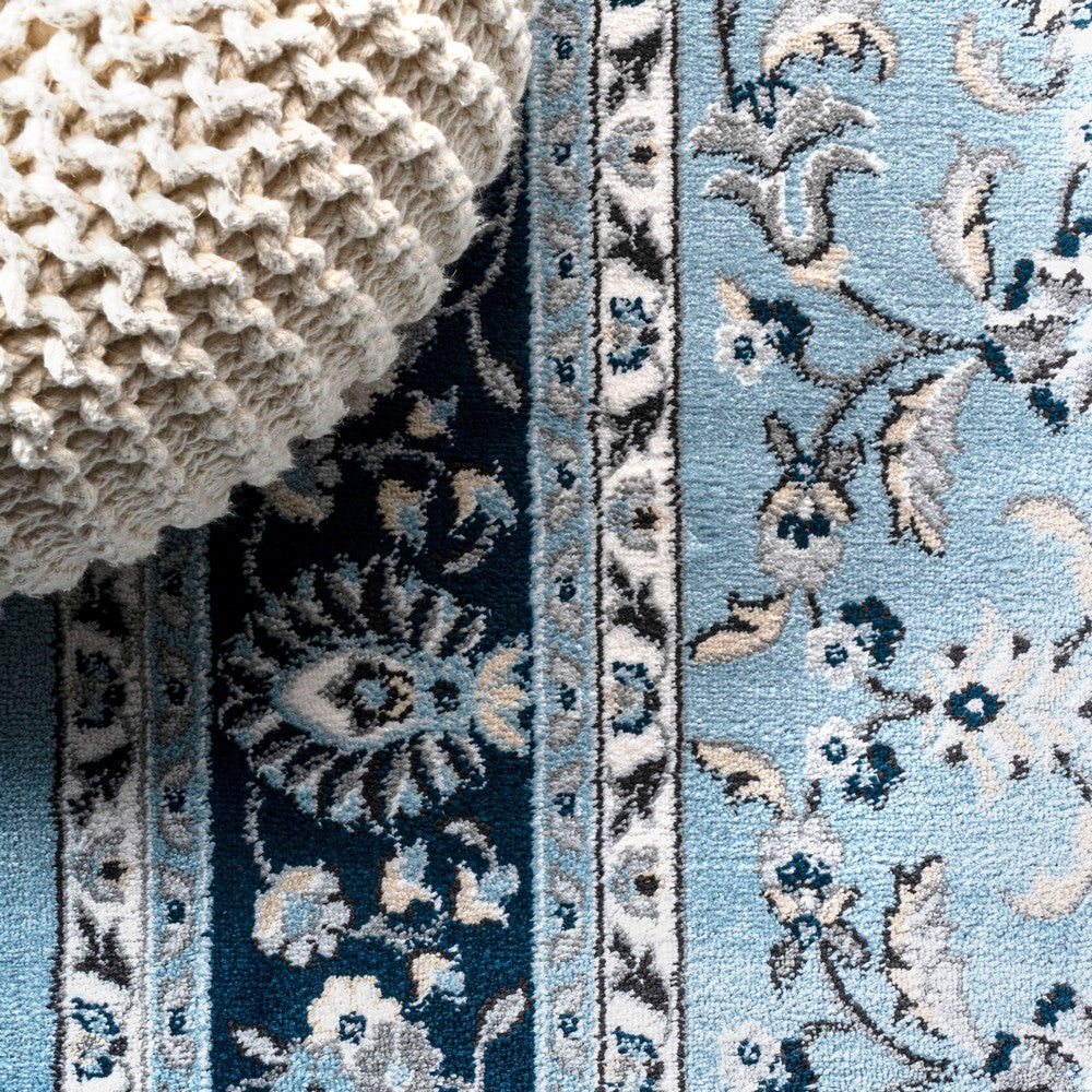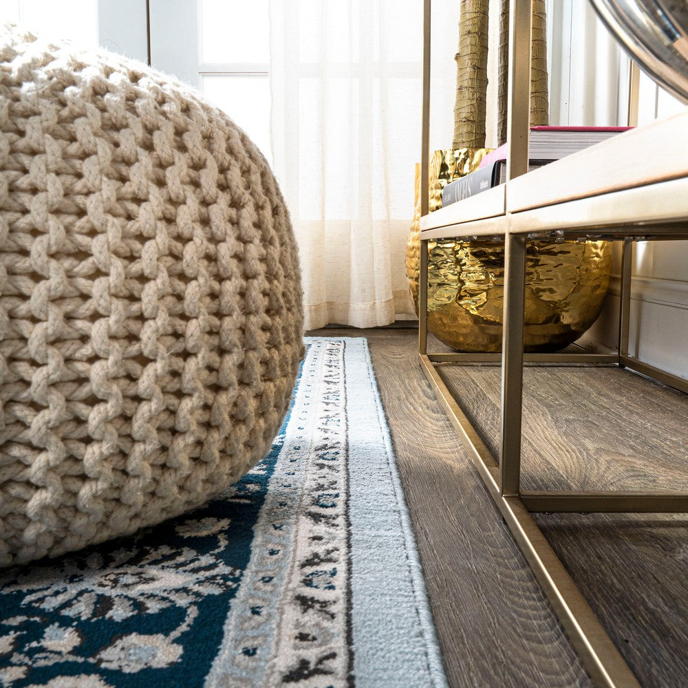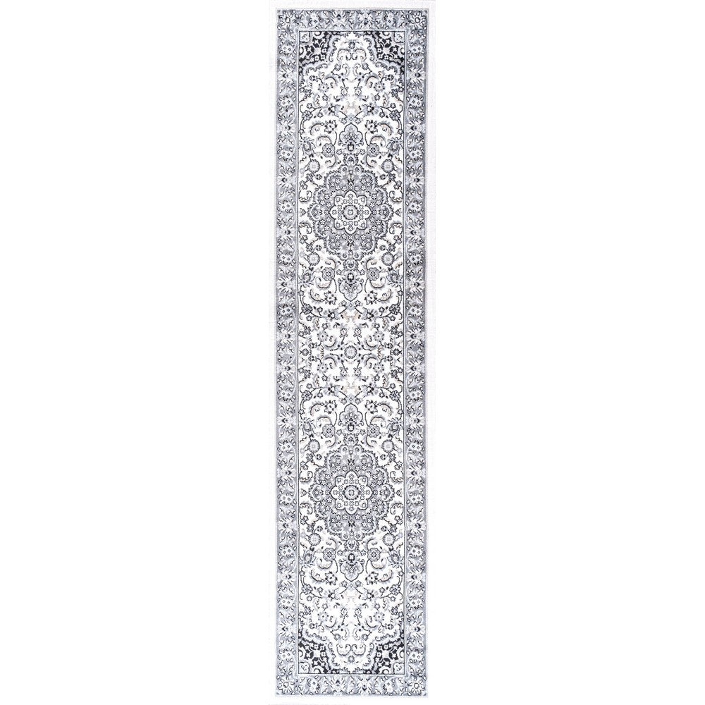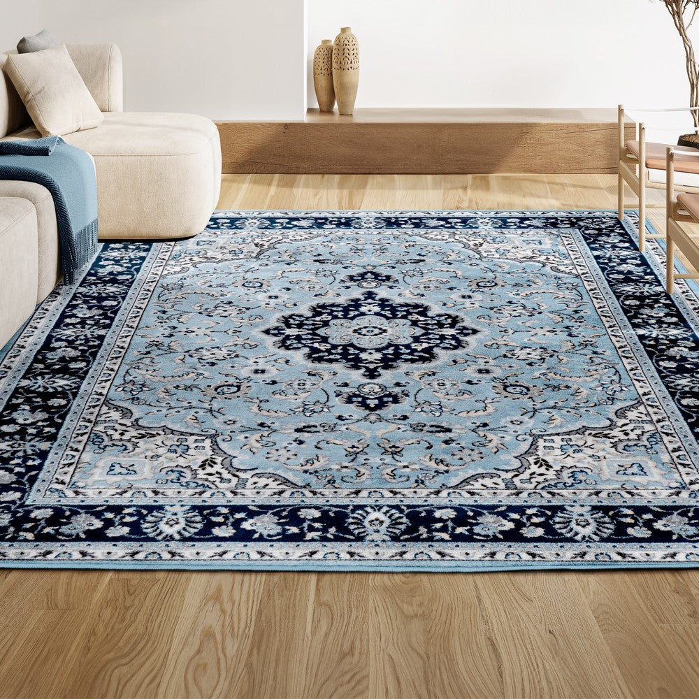A classic medallion design gets a modern makeover in our Persian-style gray rug. The ornate pattern features a central field with traditional leaves and flowers, and an ivory palmette border. Add a neutral touch to your living room, family room, bedroom, dining room, or home office with this durable, family-friendly rug.