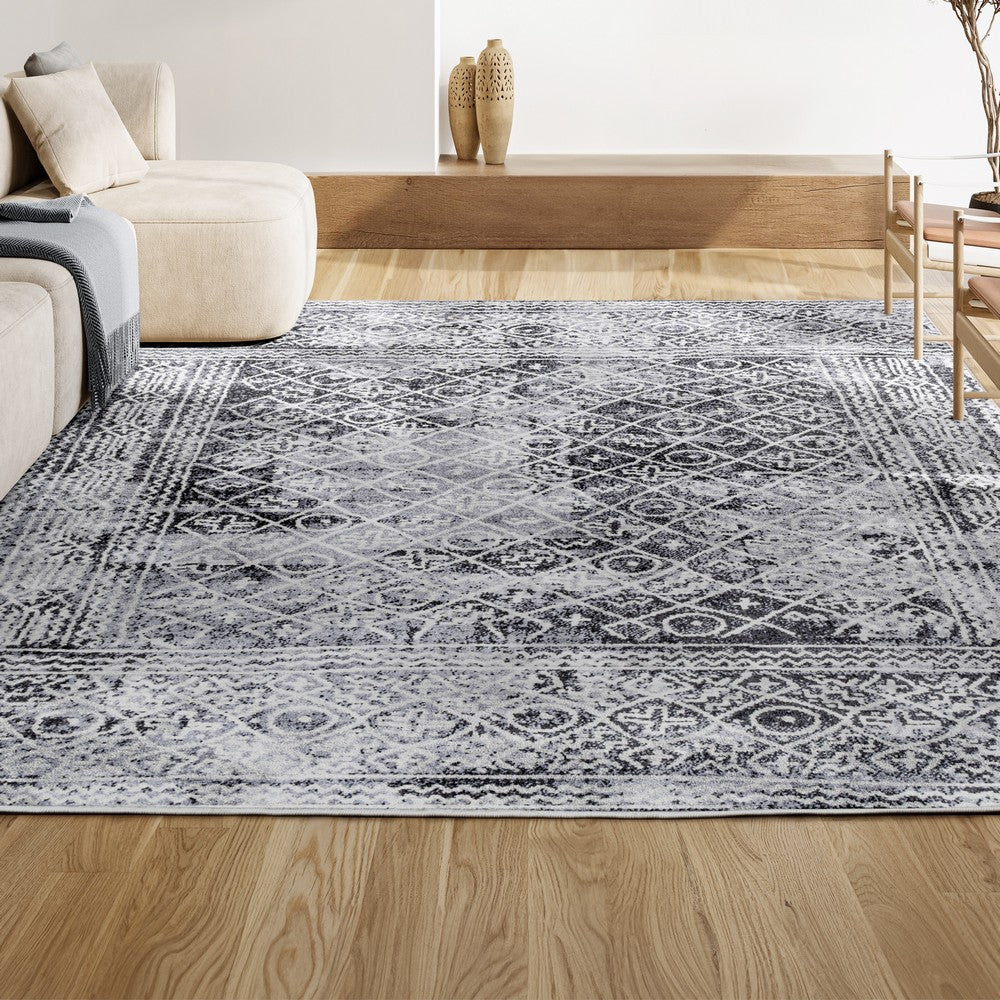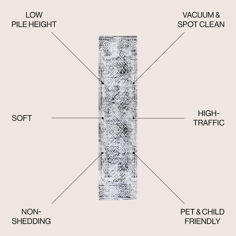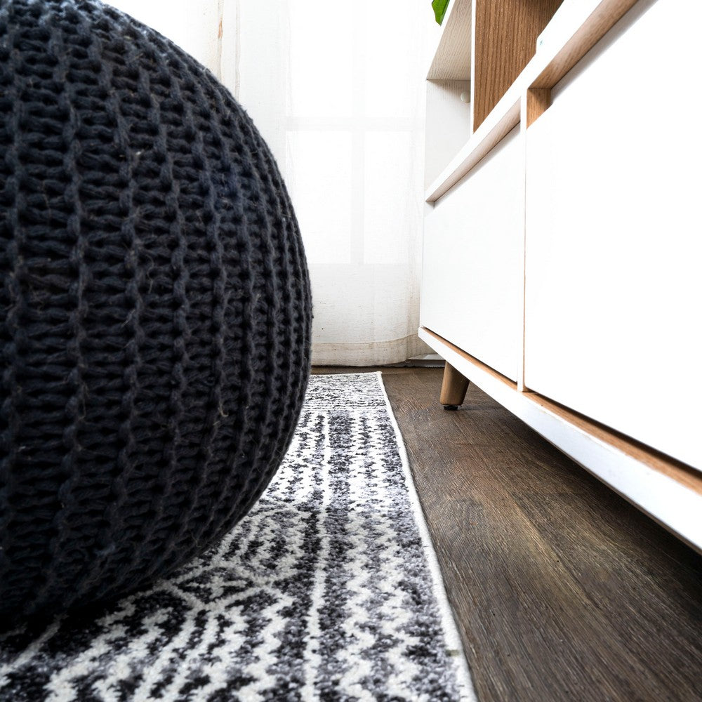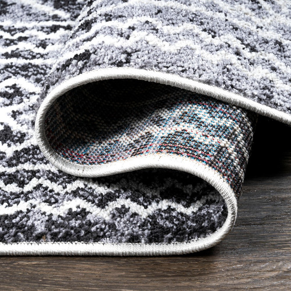 Inspired by vintage Moroccan rugs, our easy-care rug has a family-friendly short pile. The classic black and ivory pattern features geometric diamonds with a graphic border. Anchor your modern space; add minimalist flair to a bedroom, living room, dining room, kitchen or entry; this is a durable rug with timeless style.