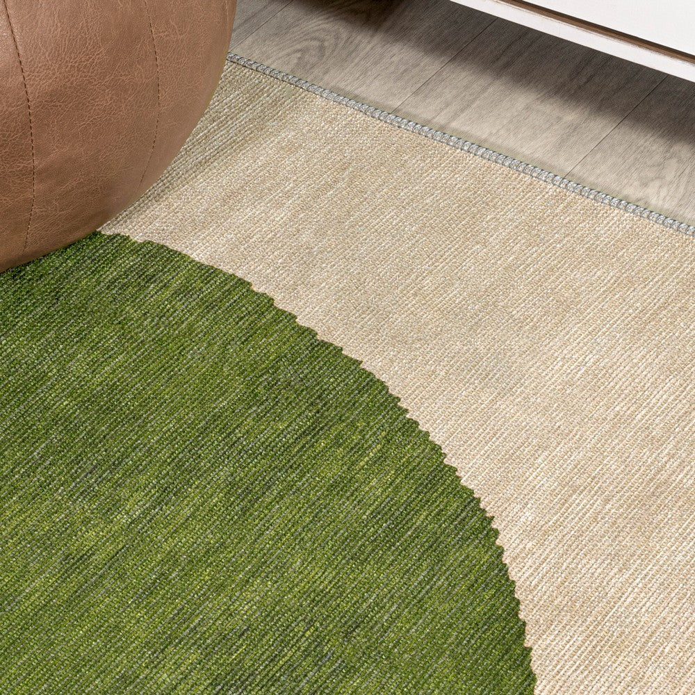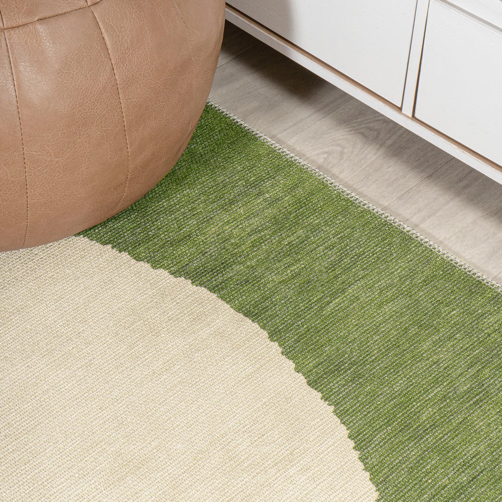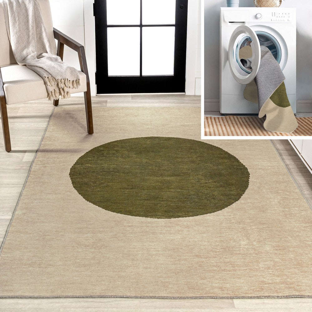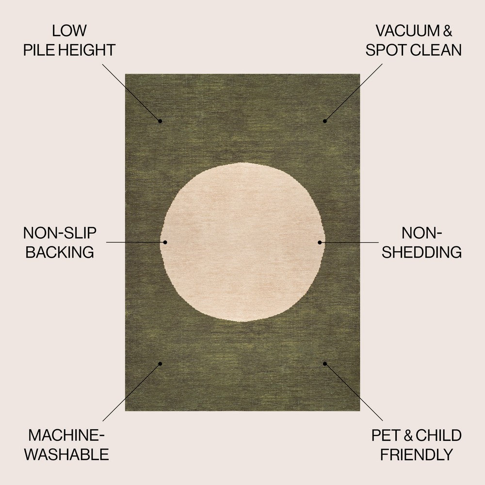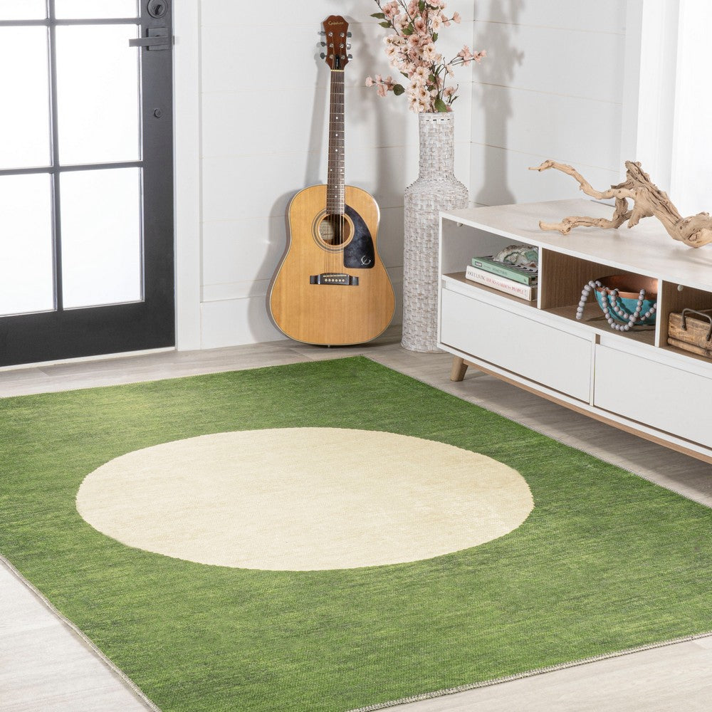 Inspired by Scandinavian design, our machine washable geometric rug has minimalist simplicity. The central circle design is woven in a modern, two-tone color palette. Add graphic punch to your living room, dining room, entry, or bedroom with this easy-care rug.