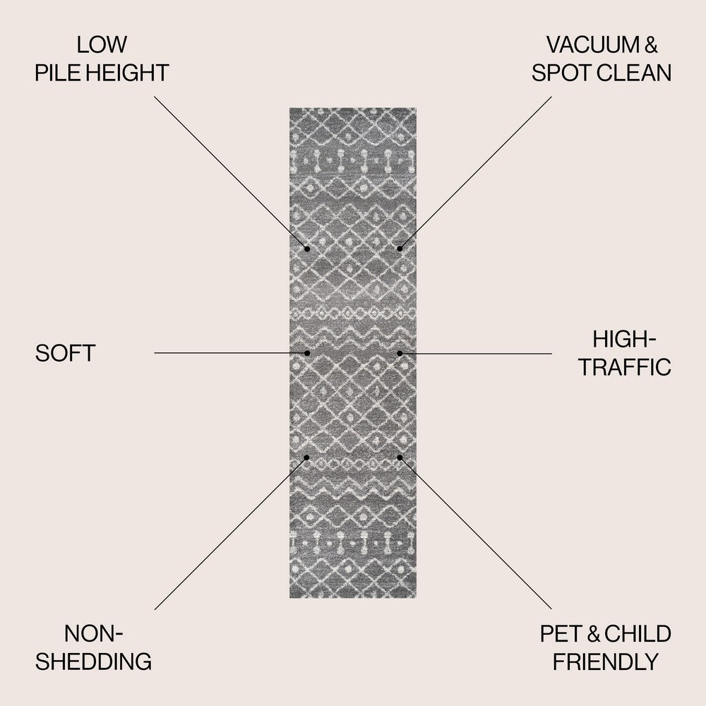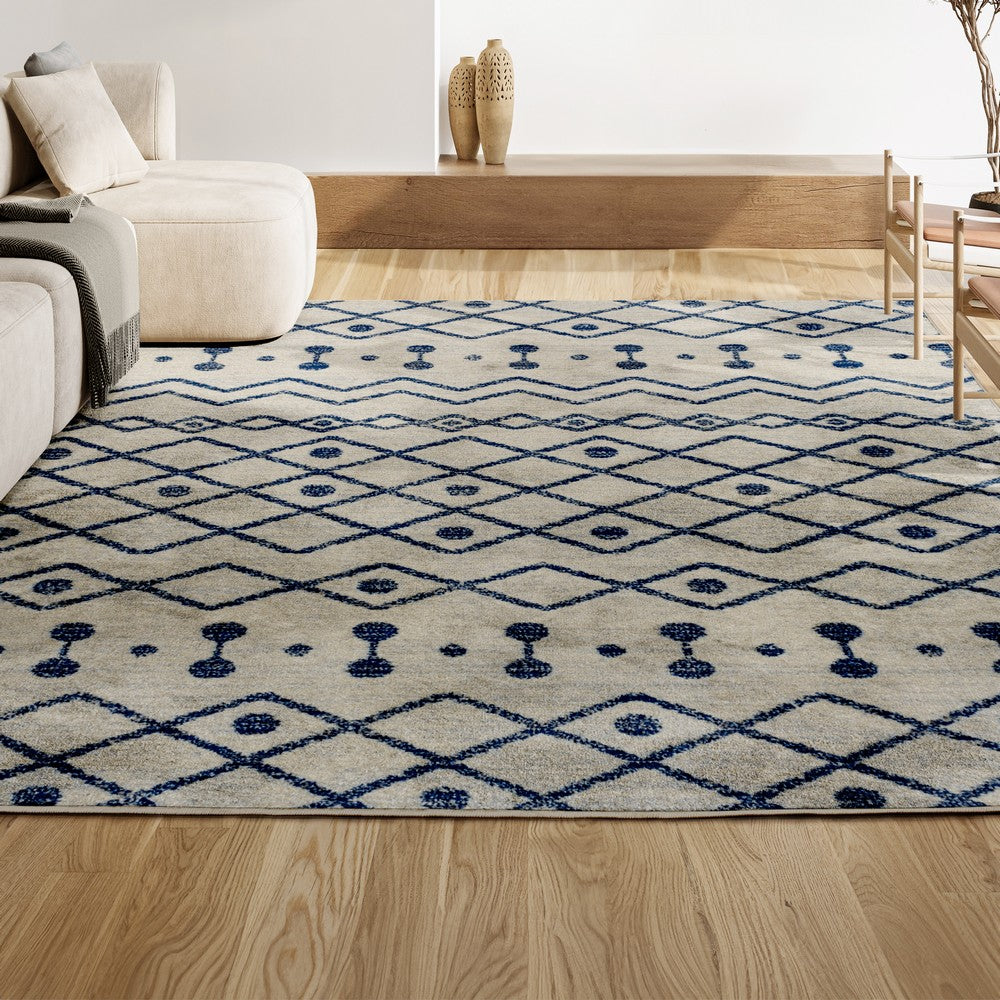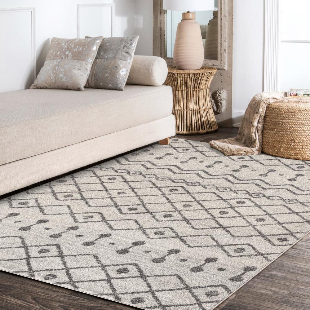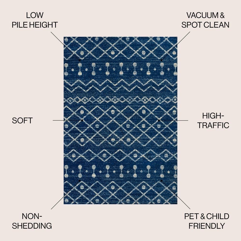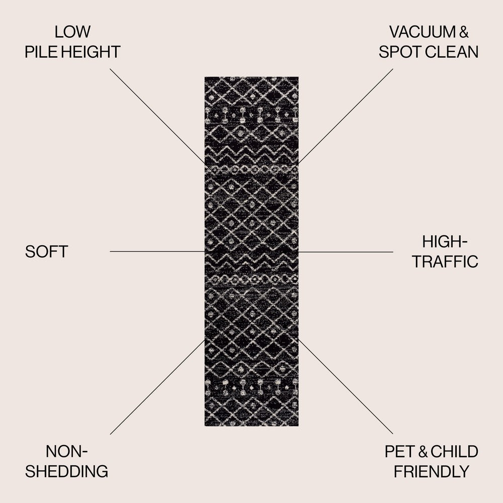 Inspired by vintage Moroccan tribal rugs, our modern version is power-loomed with a short pile. Berber diamond and circle symbols are woven in black on a field of ivory; the mingled threads recall traditional handwoven rugs. Add some Bohemian style to your home with this easy-care rug.