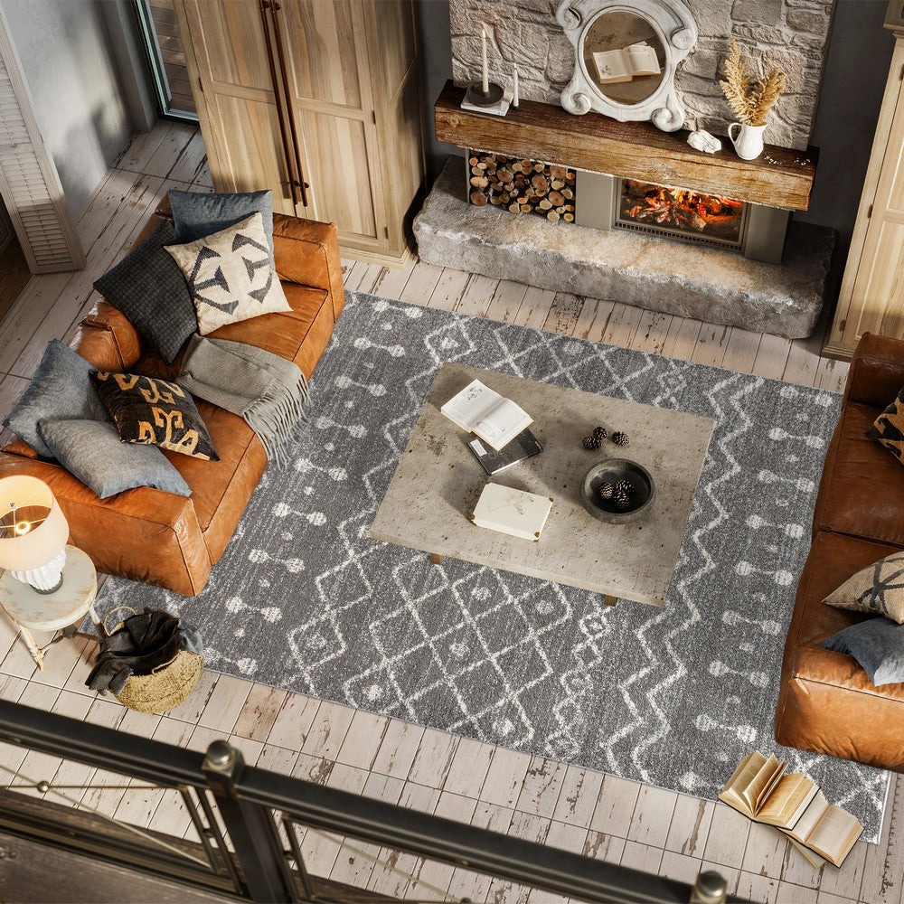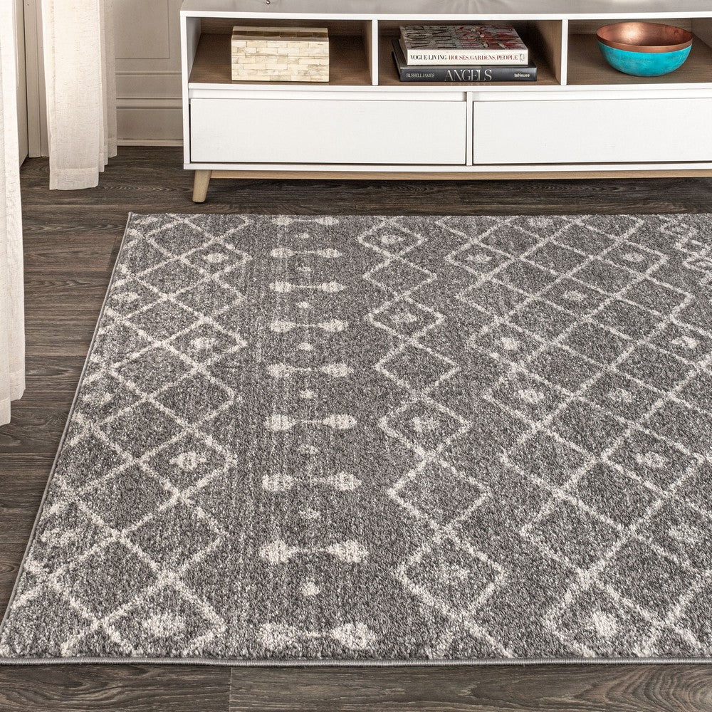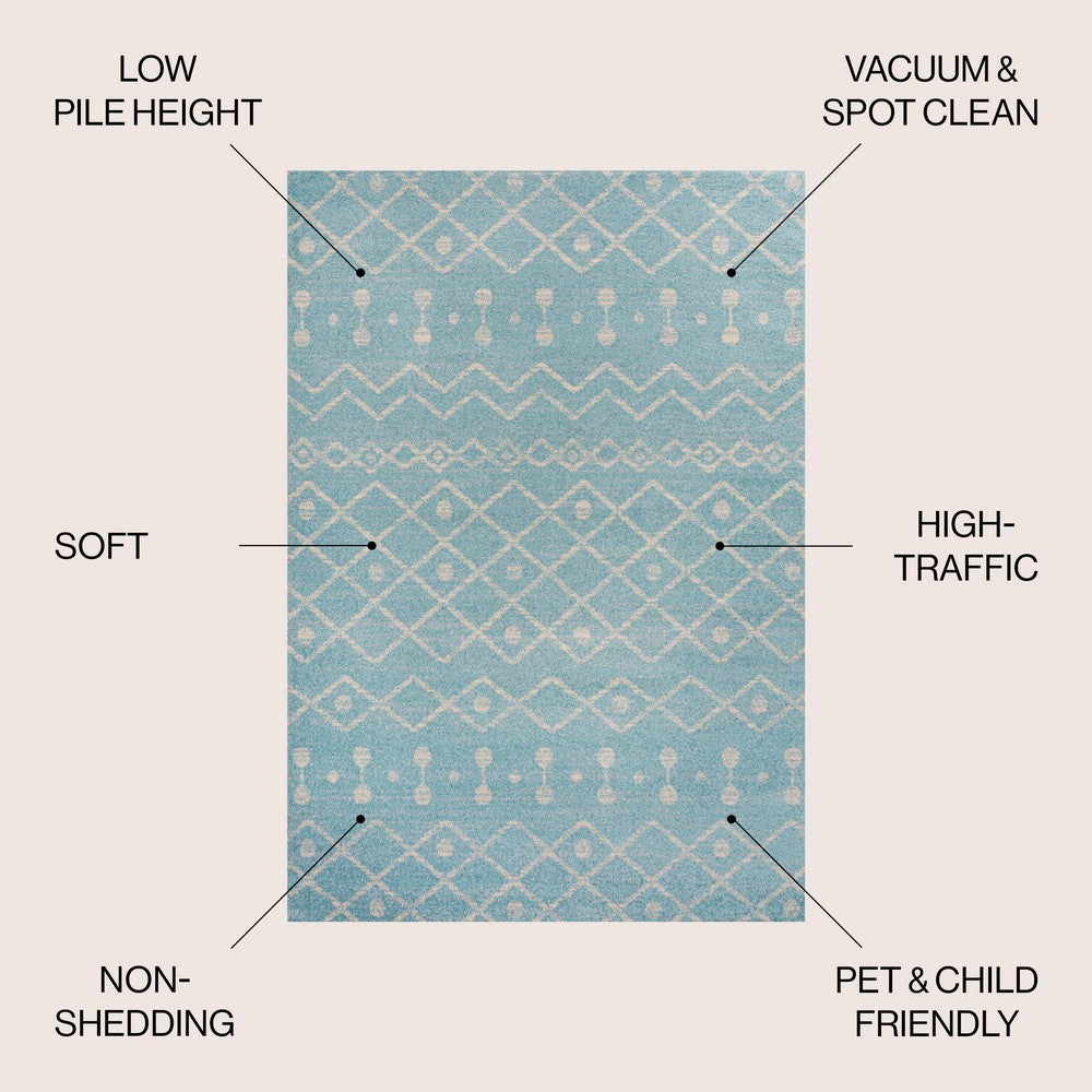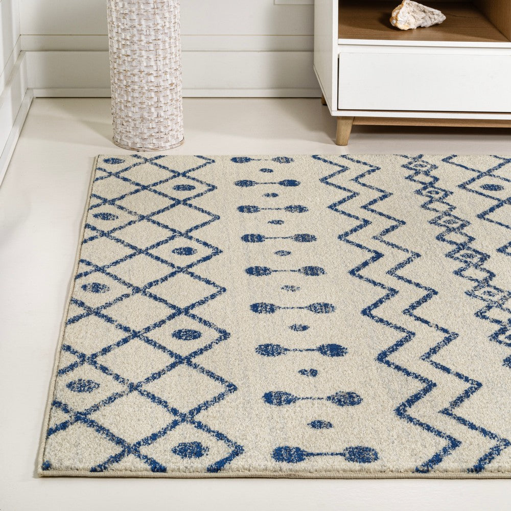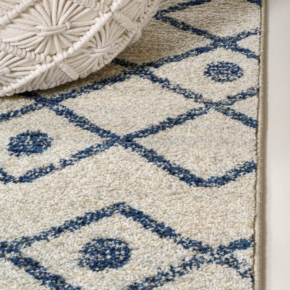 Inspired by vintage Moroccan tribal rugs, our modern version is power-loomed with a short pile. Berber diamond and circle symbols are woven in black on a field of ivory; the mingled threads recall traditional handwoven rugs. Add some Bohemian style to your home with this easy-care rug.