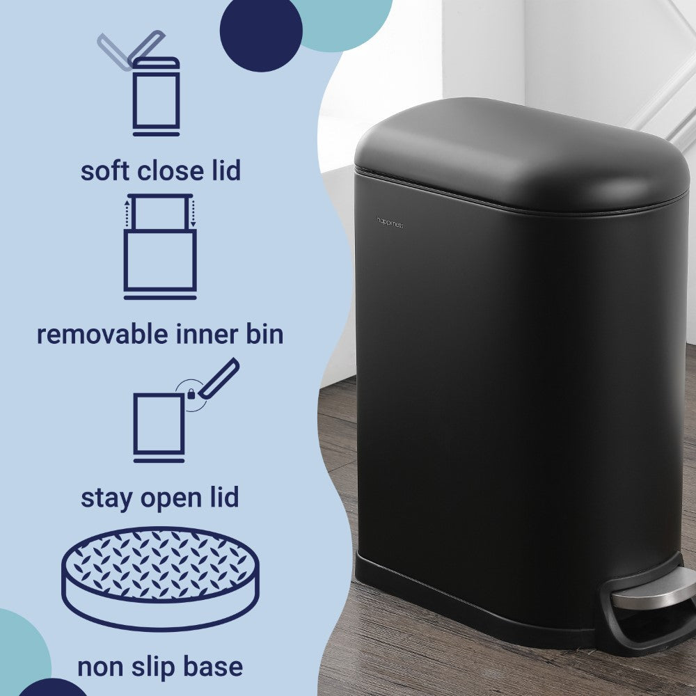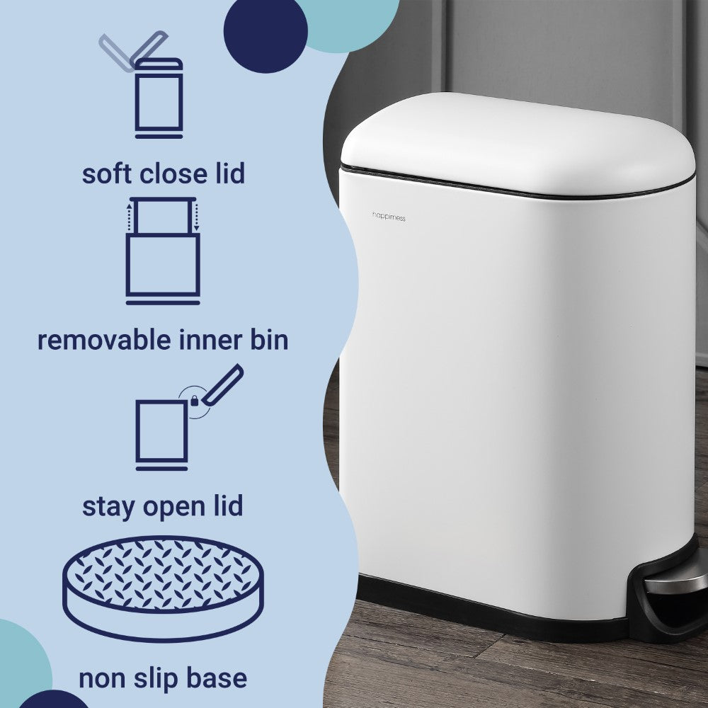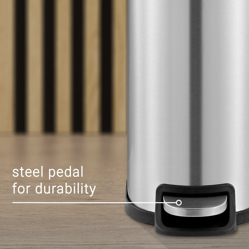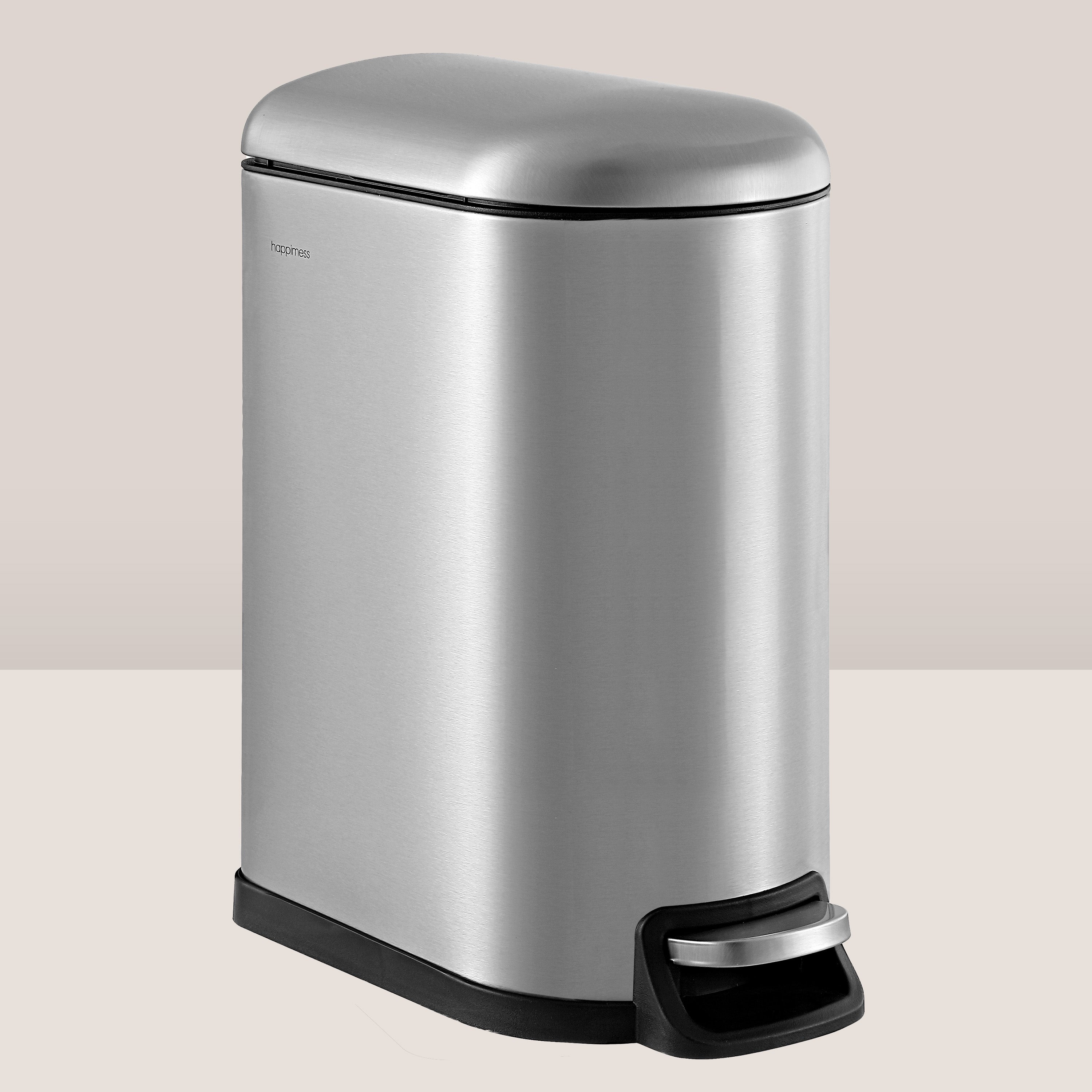 Our medium-sized rash can combines quality construction with sleek, modern styling for your kitchen, bathroom, or office. The chrome finish is a stylish update, and the narrow shape tucks easily under a desk or vanity. Dispose of trash hands-free with the convenient step pedal.