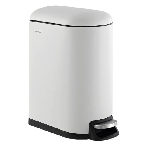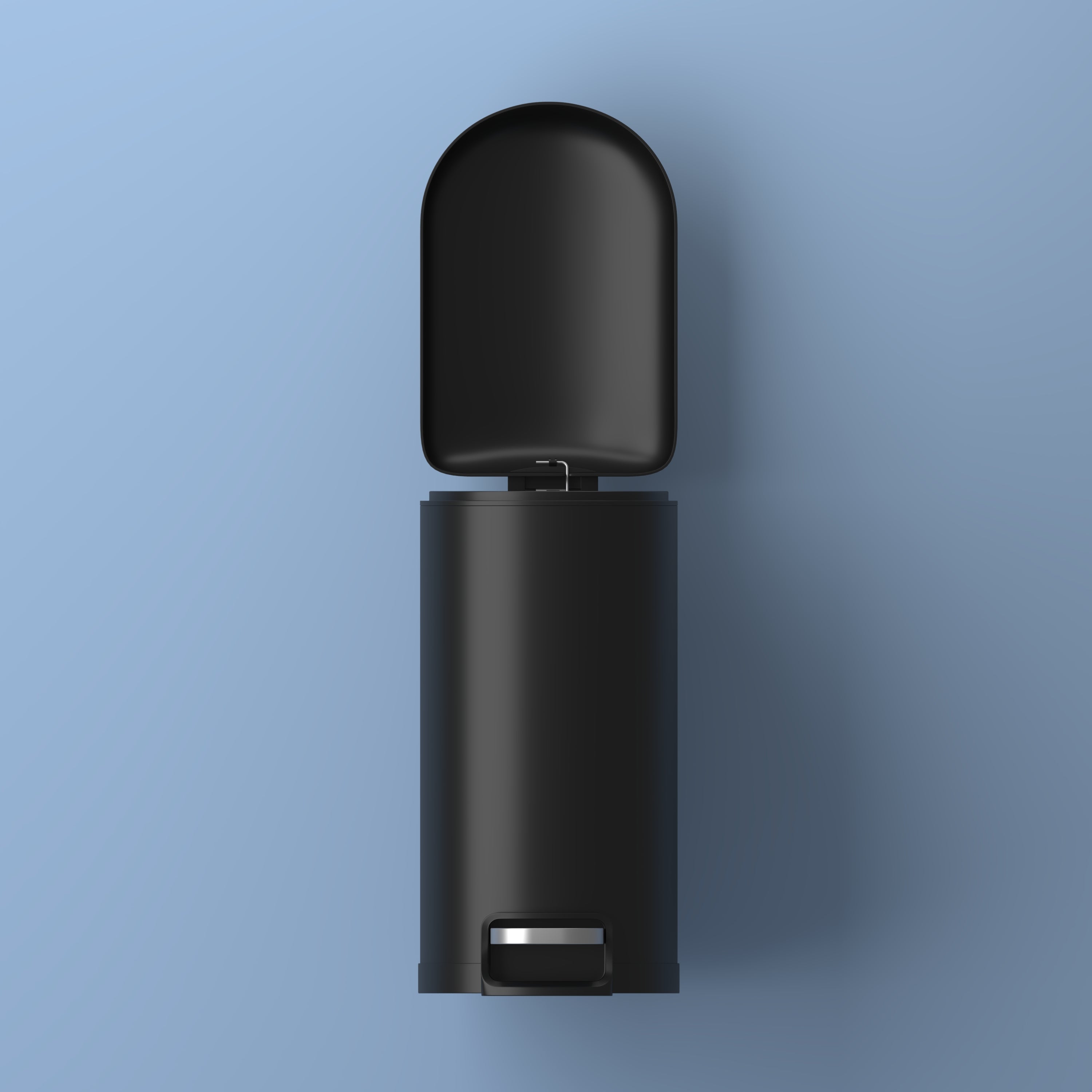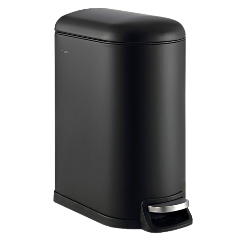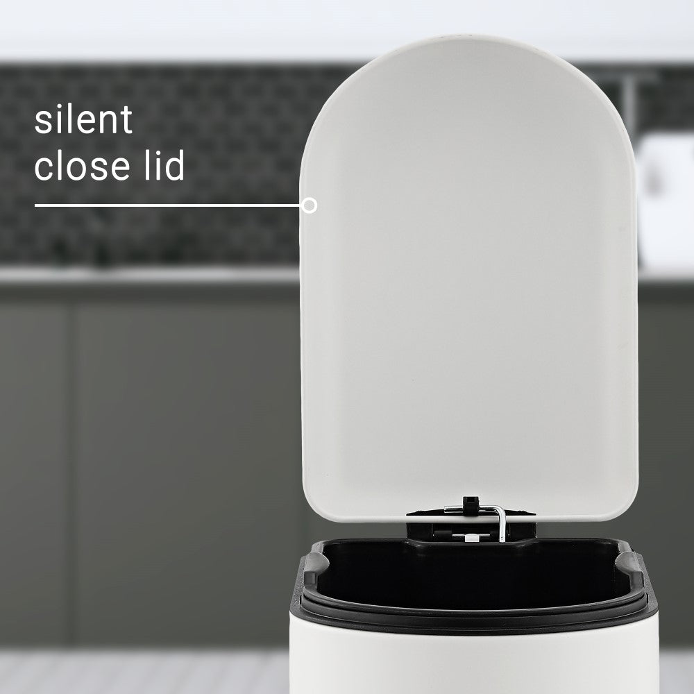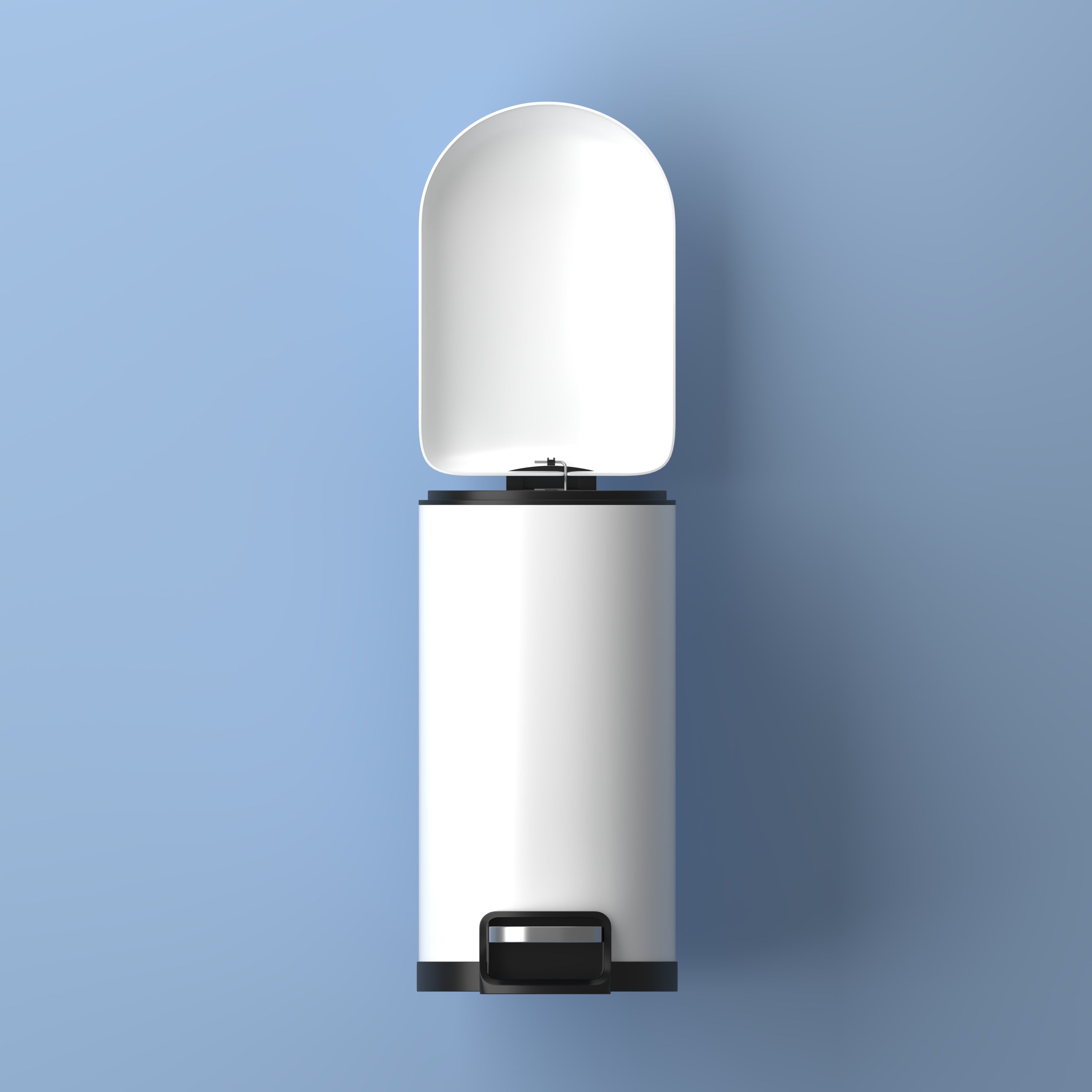• Hands-free step pedal with a built-in damper to gently lower the lid