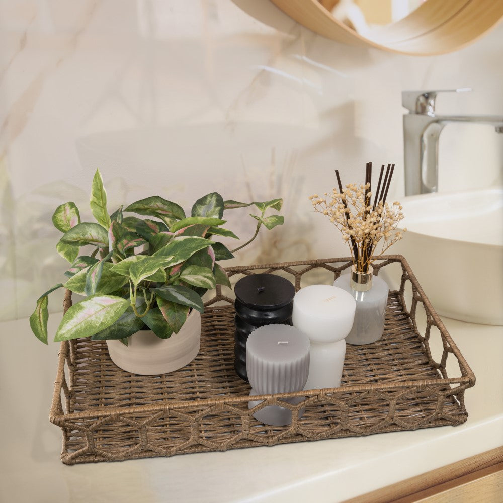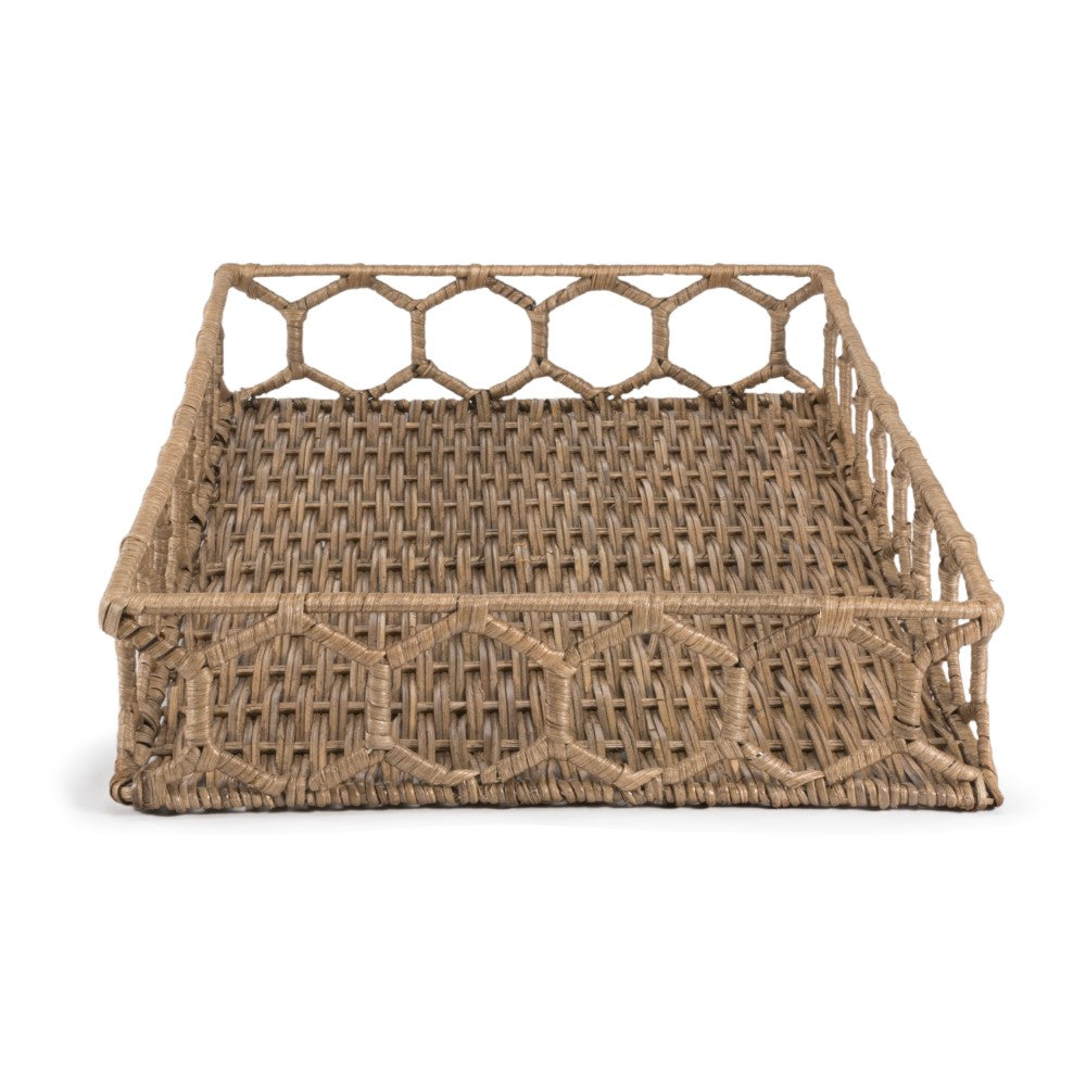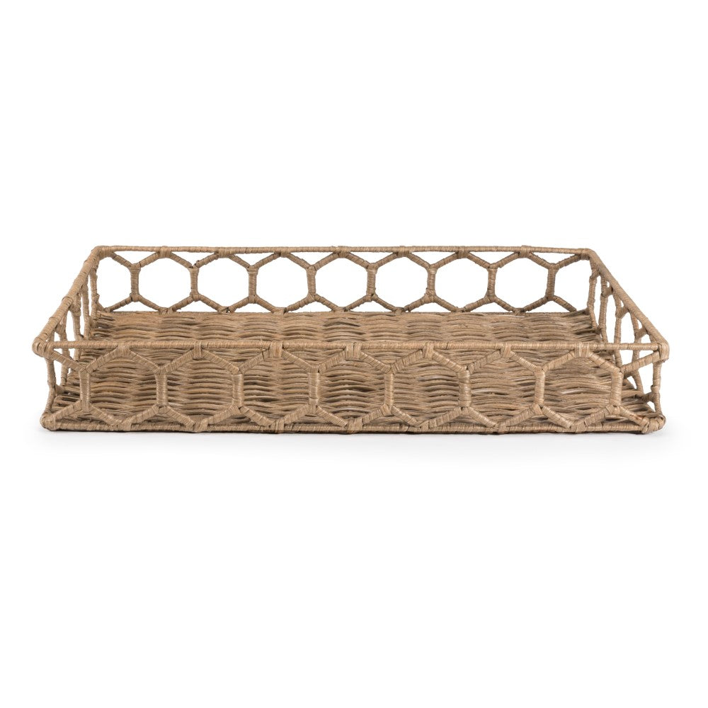 Organize loose items in your home with our honeycomb patterned handwoven tray. Whether placed on a coffee table or dresser, this tray is the perfect addition to any bohemian or coastal home. With it's robust rattan weaving, the sturdiness of the tray makes it easy to move between rooms as you please.