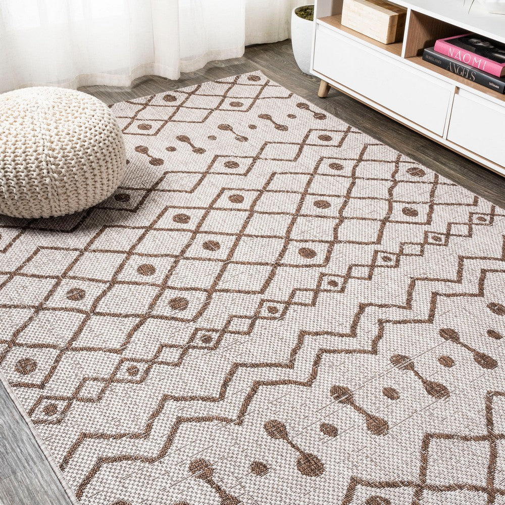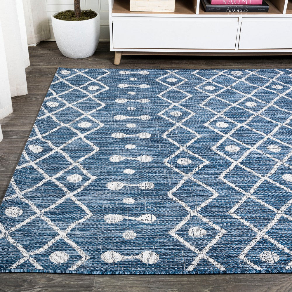 Moroccan influences abound in the geometric design of our tribal-inspired rug. The ornate diamond pattern has the handwoven look that adds a global chic touch. Add Bohemian flair to your living room, dining room, bedroom, kitchen or entry with this easy-care rug.